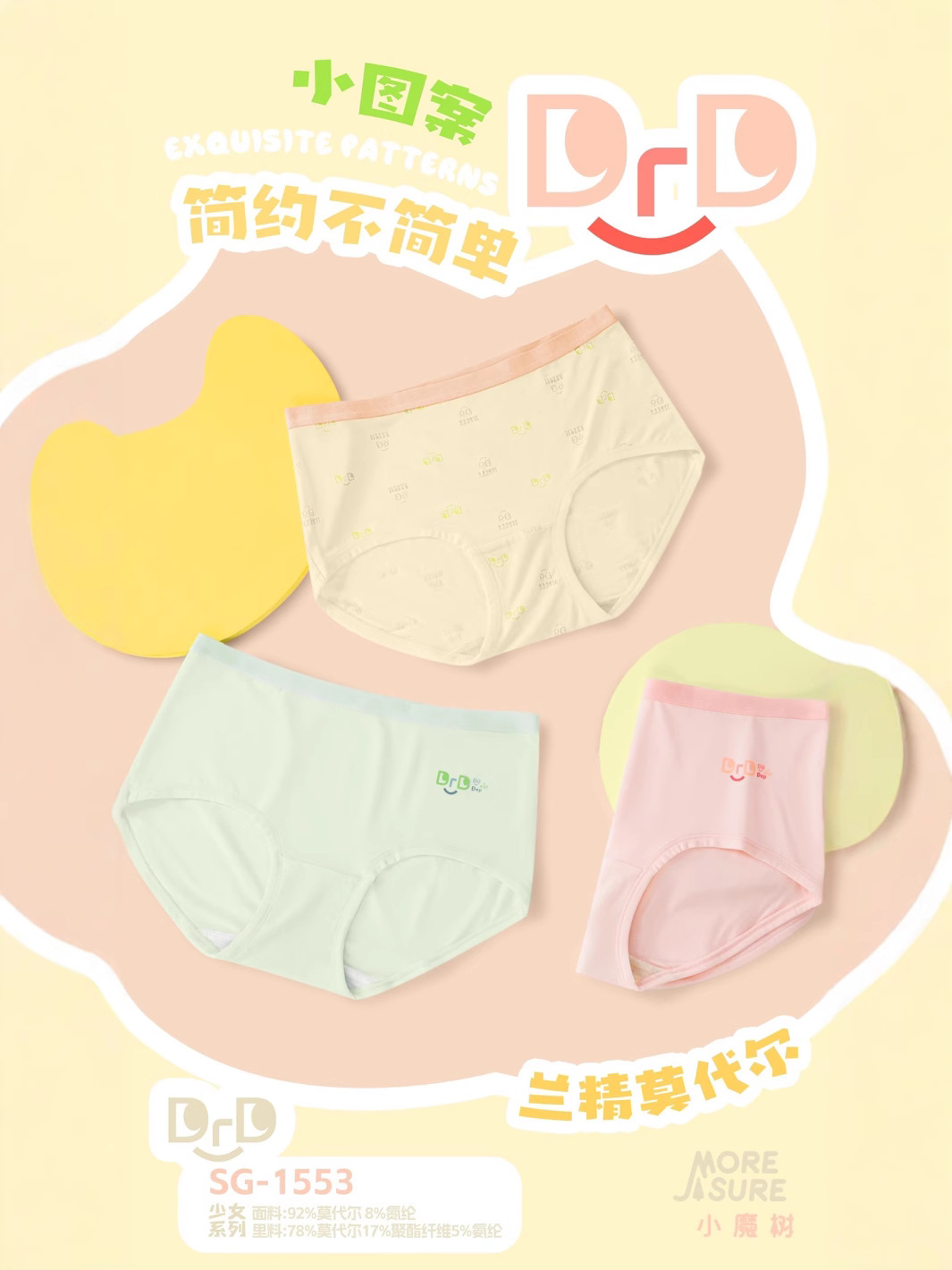 리틀 매직 트리 걸스 트라이앵글 쇼츠 봄 여름 아이스 실크 렌징 모달 쿨링 항균 엉덩이 없는 트라이앵글 팬티