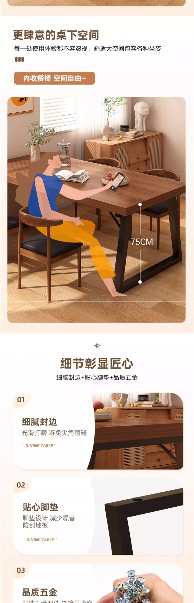 • 【독점 모델 ▲ 테이블 1개, 의자 6개] 월넛색상 160*80*75