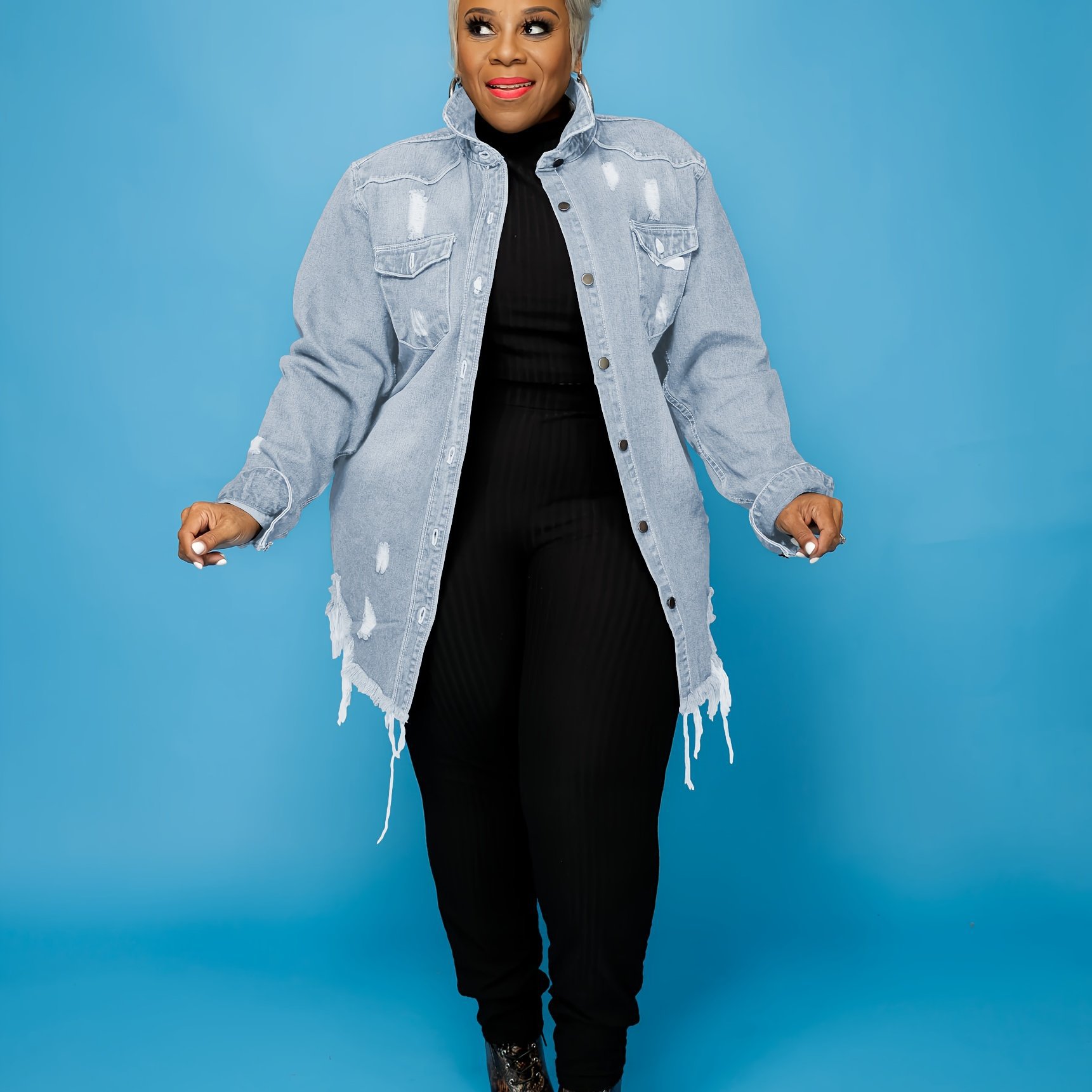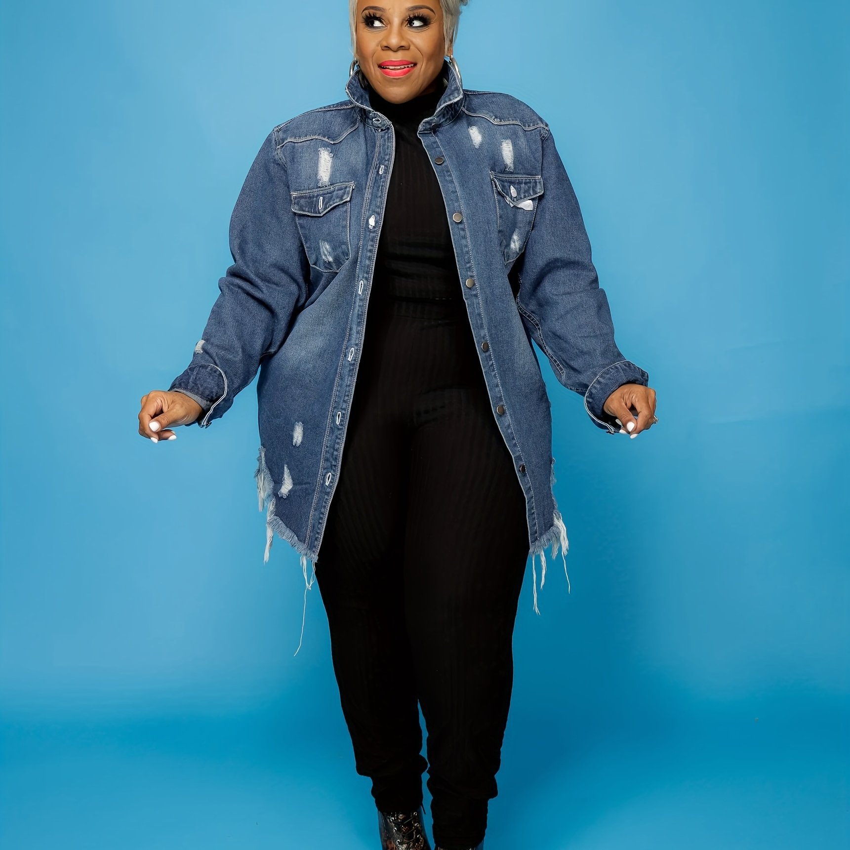 2025년 새로운 유럽 및 미국 여성용 대형 데님 재킷 플러시 바닥 데님 재킷스토어 가기