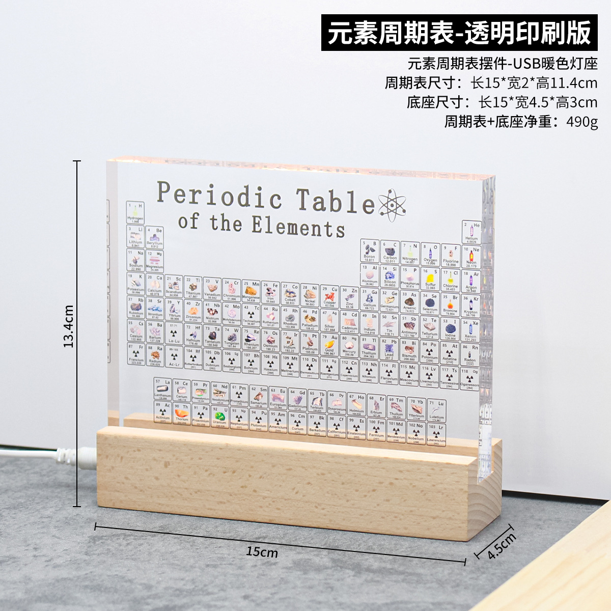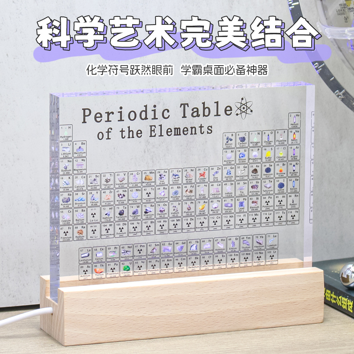 元素周期表亚克力实物标本工艺品展示牌摆台件水晶化学元素周期表元素表亚克力创意礼品摆件 亚克力元素 週期表化学元素周期表摆件