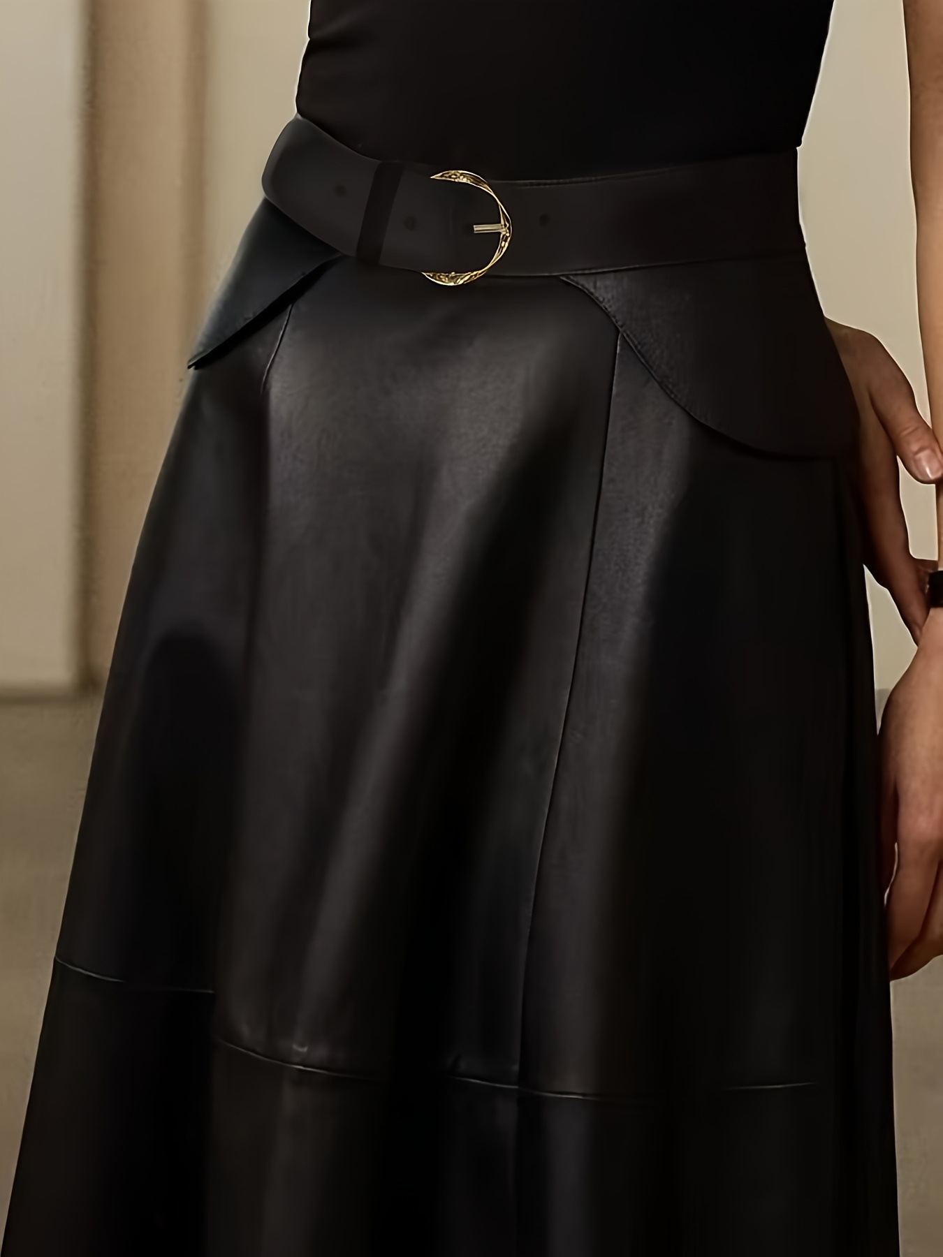 2025 새로운 크로스보더 여성 의류 2025 봄 신작 A 라인 하이 웨이스트 벨트 버튼 스커트