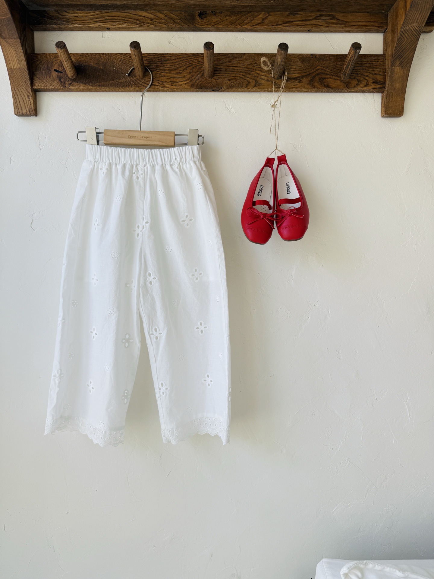 ✔️白色休闲裤,重工棉布满绣,全松紧的腰围,舒适好穿,拼接花边裤脚,更显乖巧少女感