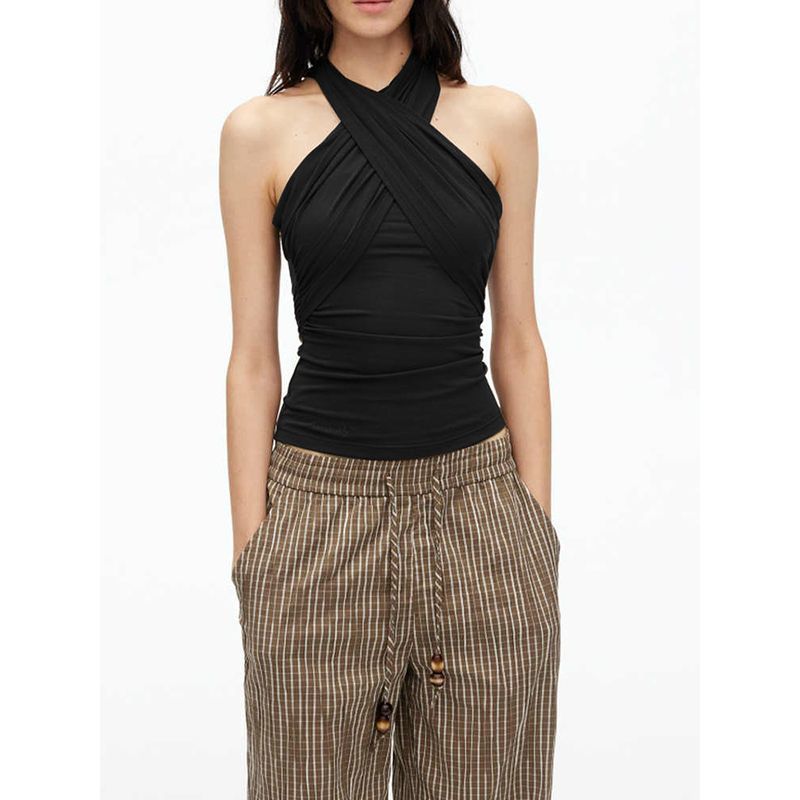 Pure Desire 섹시한 매력 홀터넥 캐미솔 여성 여름 신작 슬림핏 짧은 스타일 다용도 탑 트렌디