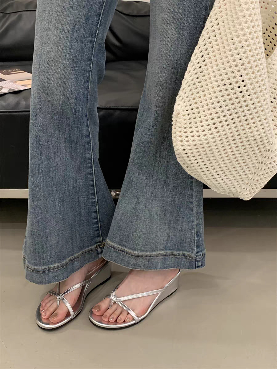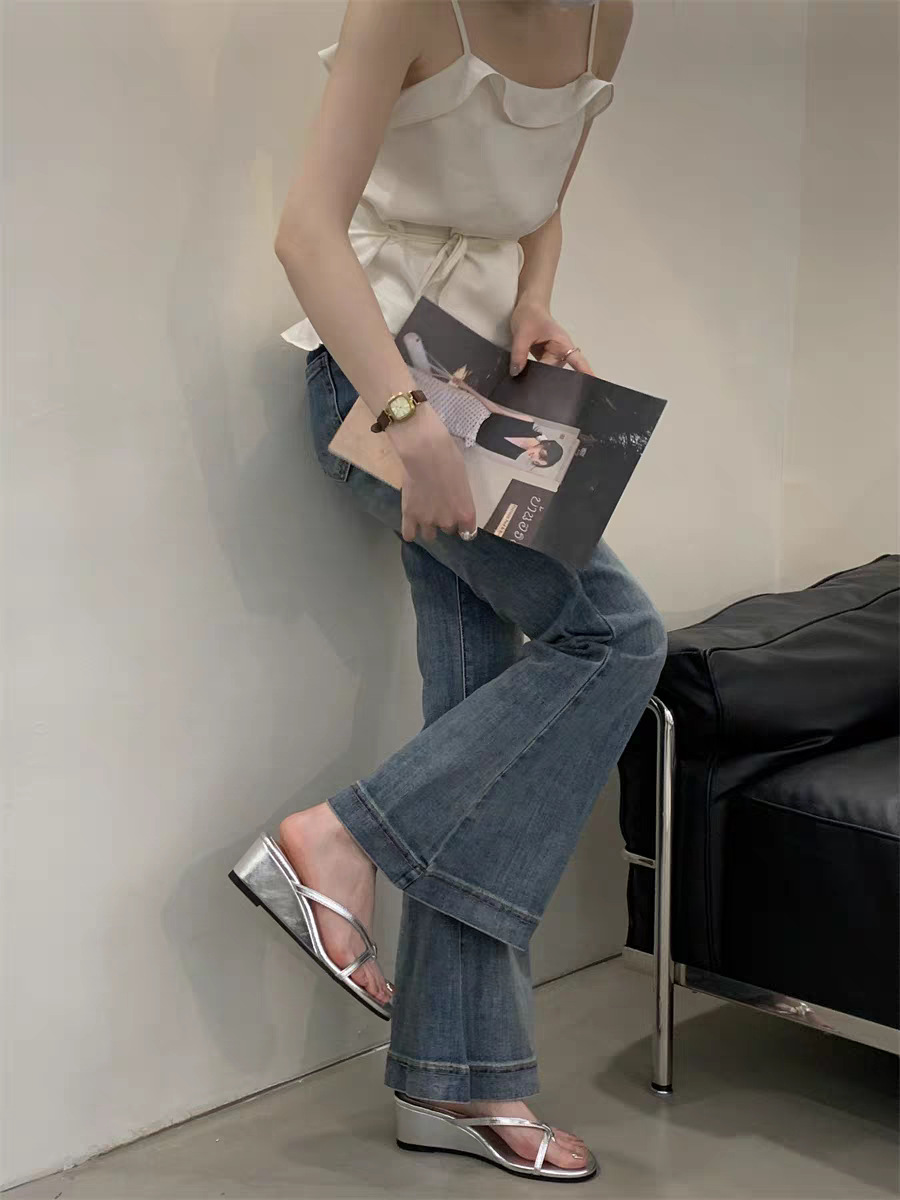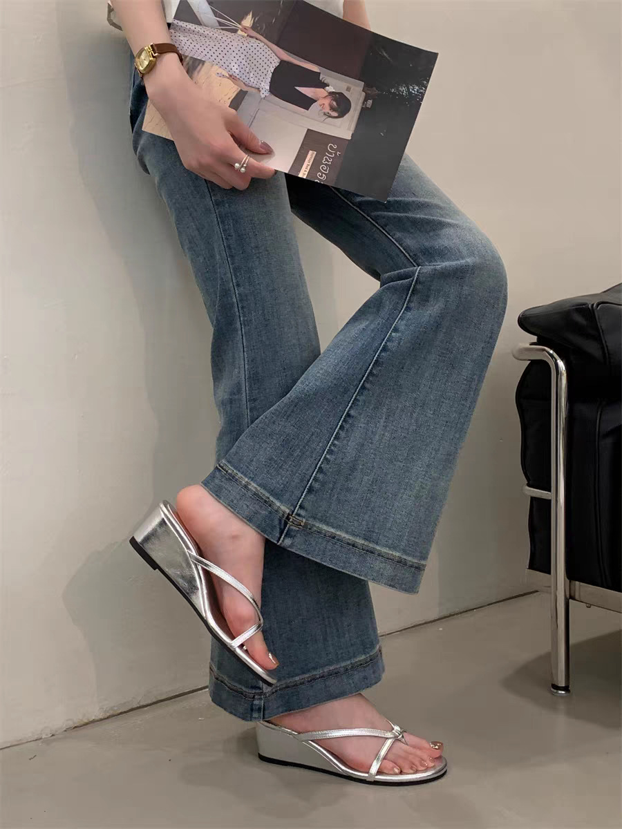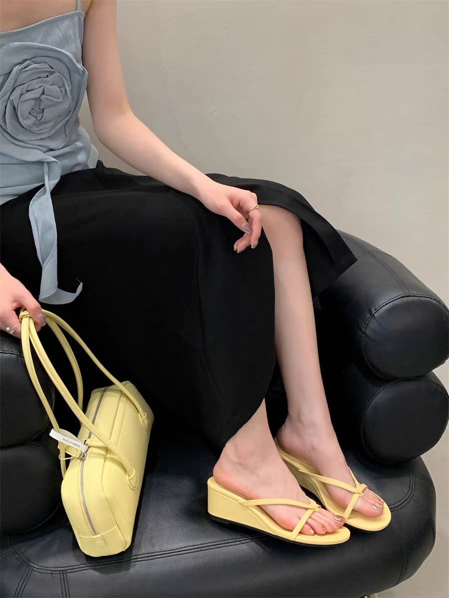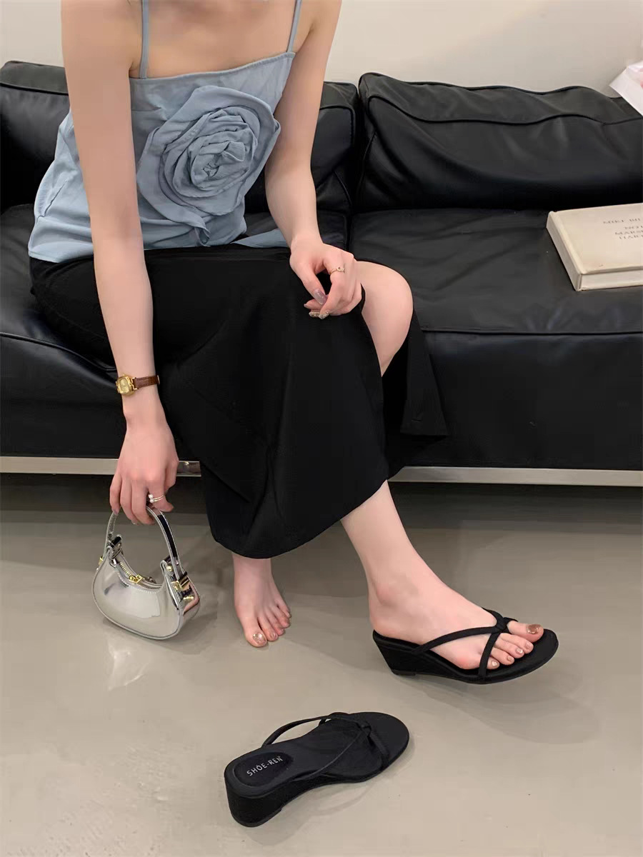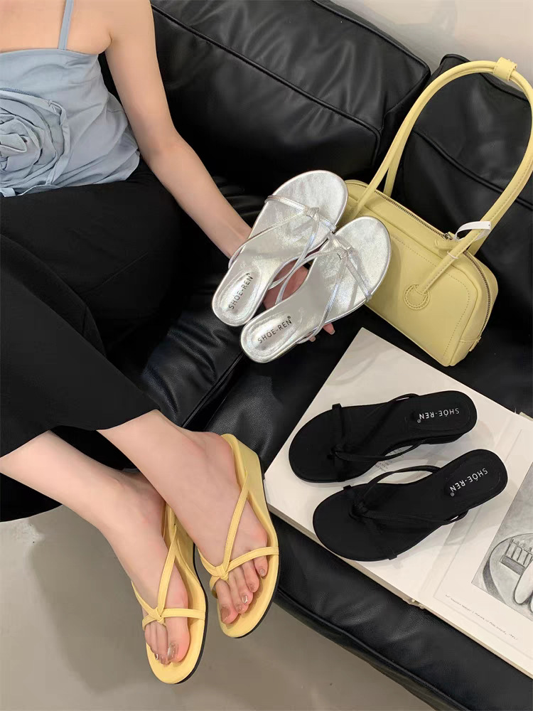 여름 아우터로 입기 좋은 여성용 프렌치 스타일의 아름다운 실버 슬리퍼, 발이 피곤하지 않은 작은 하이힐 3켤레, 웨지힐 샌들스토어 가기