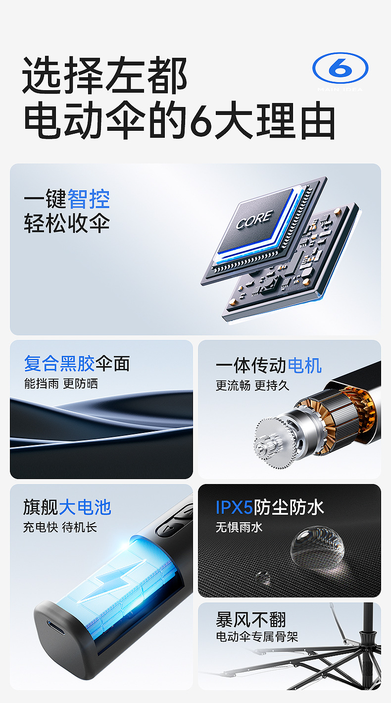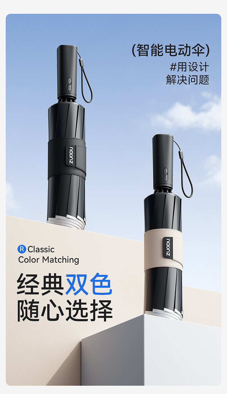 ZUODU 지능형 전기 우산, 완전 자동, 원클릭, 풀 수납, 비 또는 빛, 역방향 우산, 차양 및 보호
