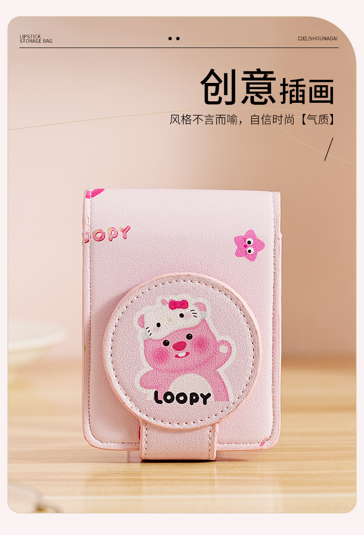 거울이 달린 고급스러운 립스틱 가방, 휴대용 여행용 메이크업 가방, 가볍고 휴대용 메이크업 보관 및 보호 커버스토어 가기