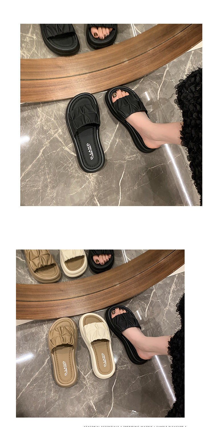 여름 아우터용 여성 슬리퍼 2025 신상 패션 두꺼운 밑창 플랫폼 샌들 인터넷 연예인 미끄럼 방지 비치 주름 슬리퍼스토어 가기