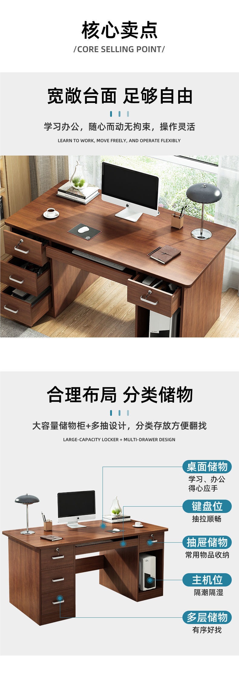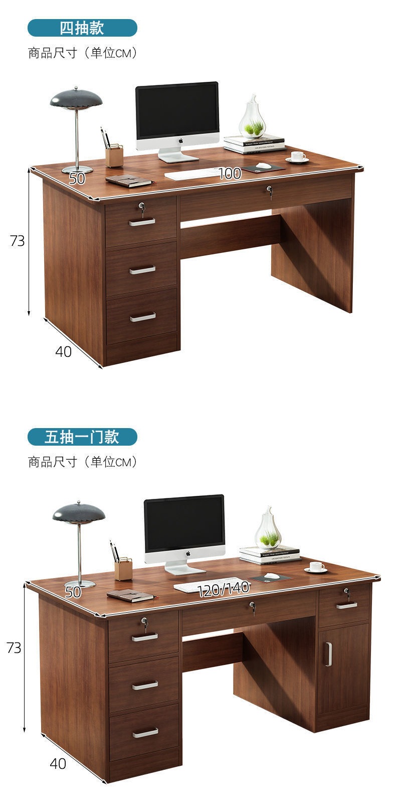 • [테이블과 의자 세트] 140 다크월넛 컬러 (서랍 5개, 문 1개)