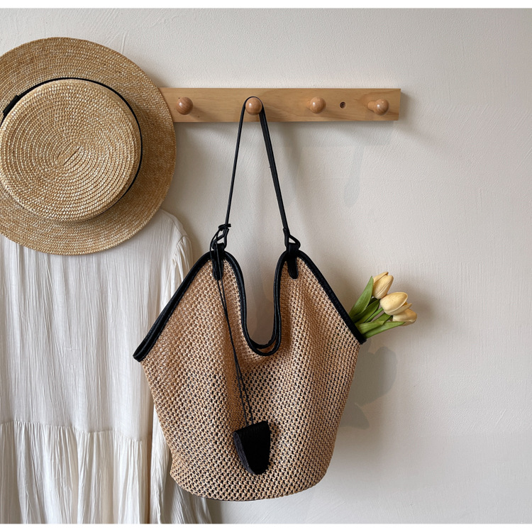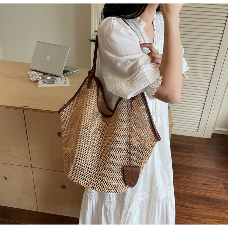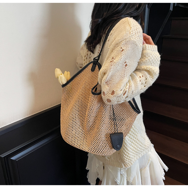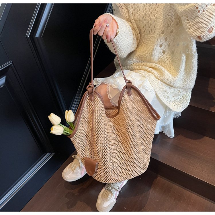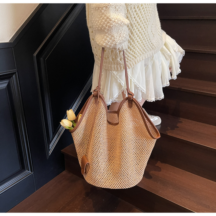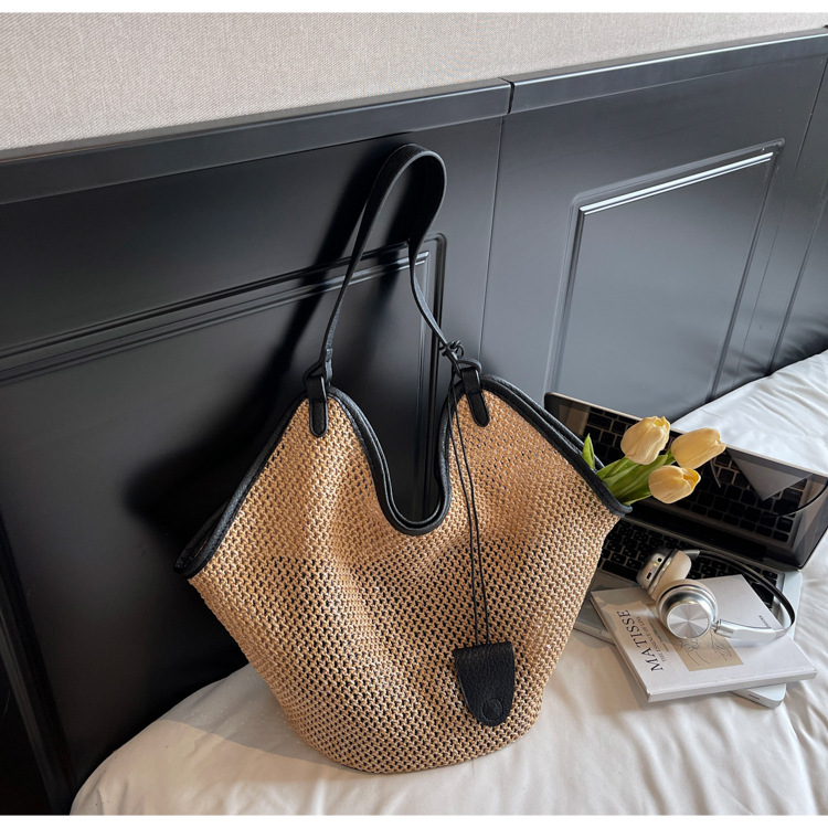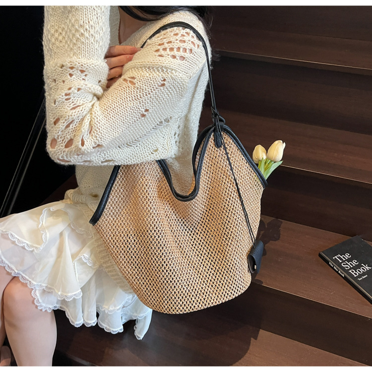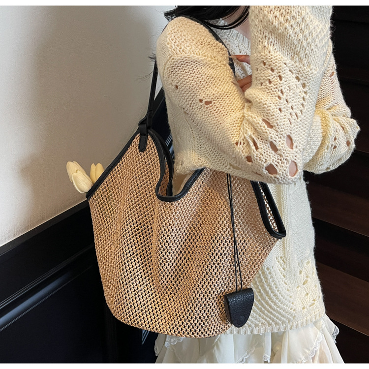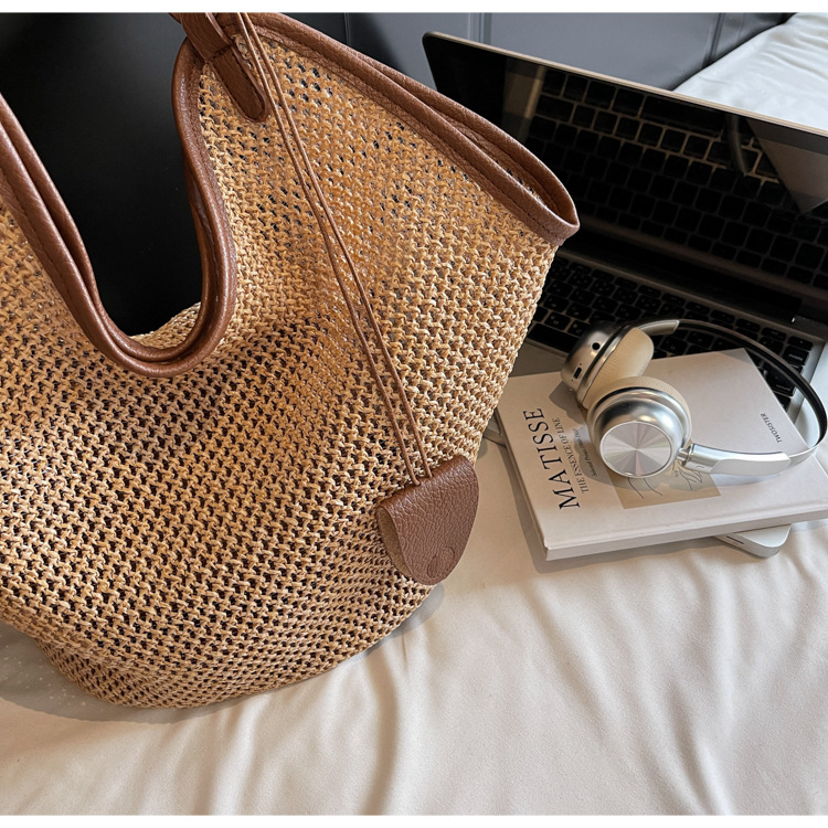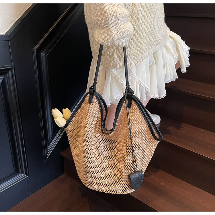 프렌치 밀짚 가방 여름 휴가 짠 가방 대용량 새 짠 핸드백 캐주얼 숄더 토트 백