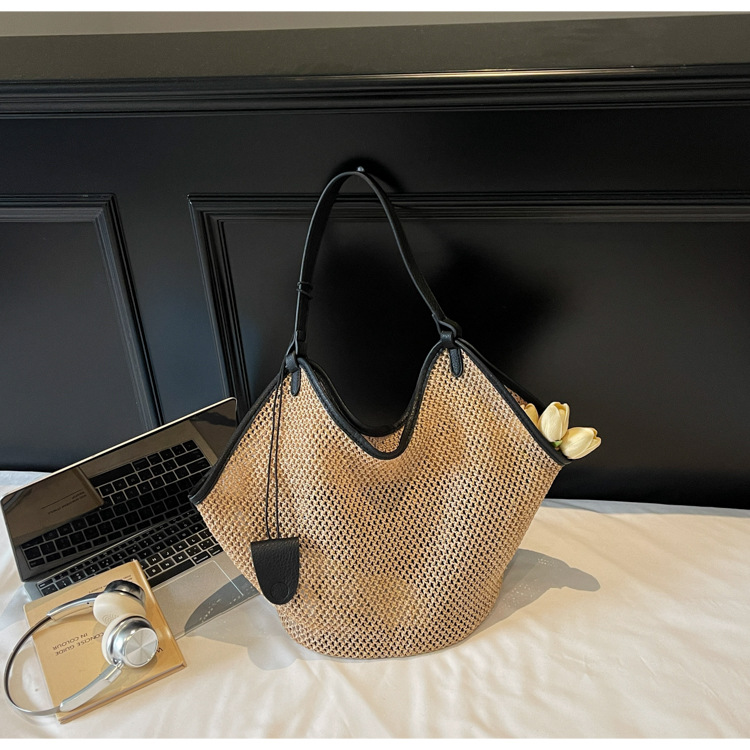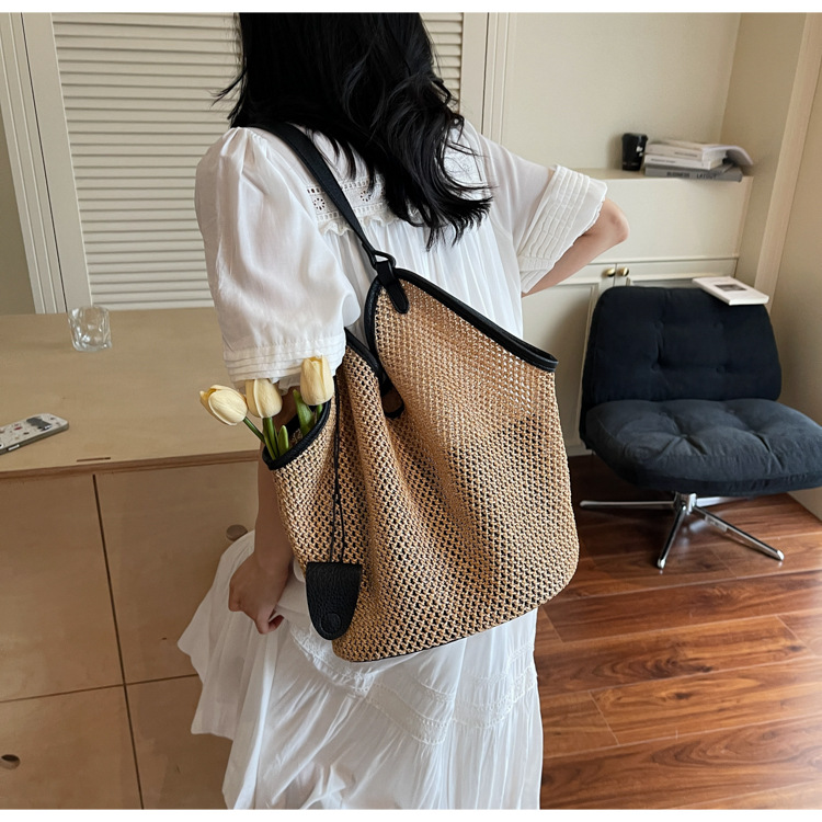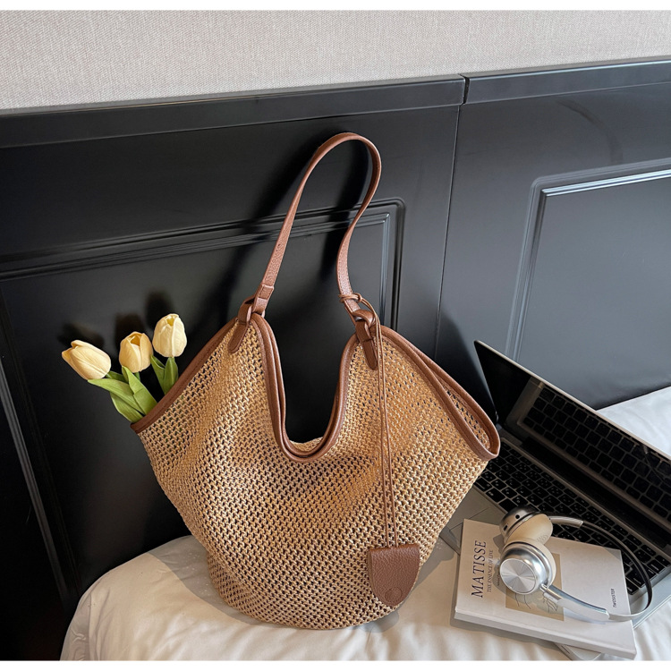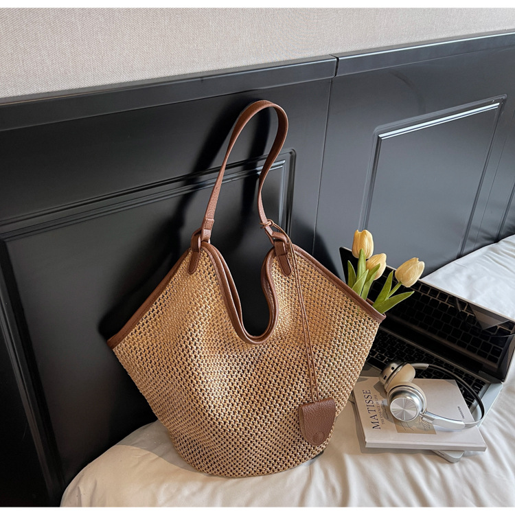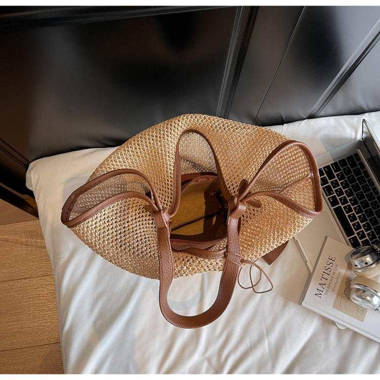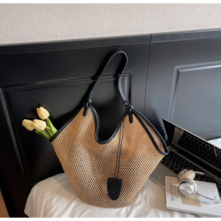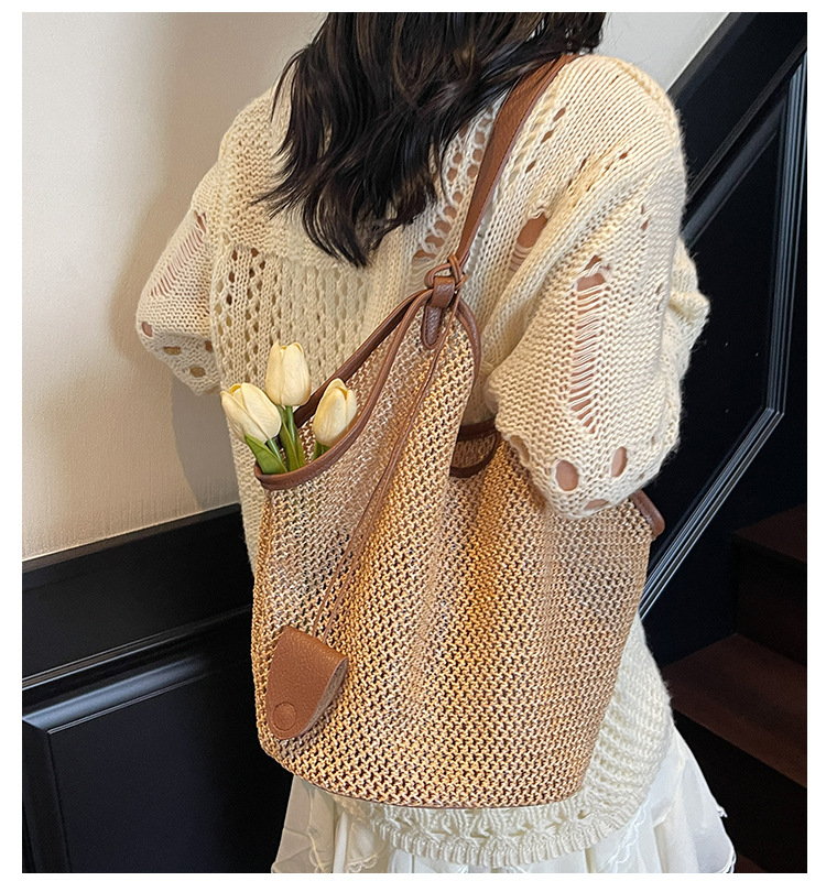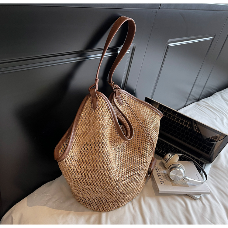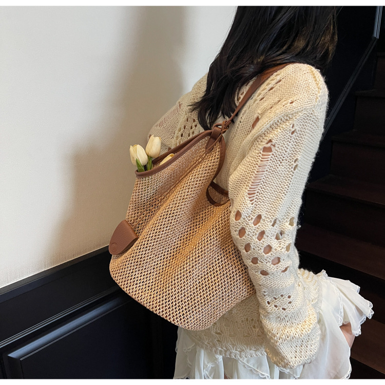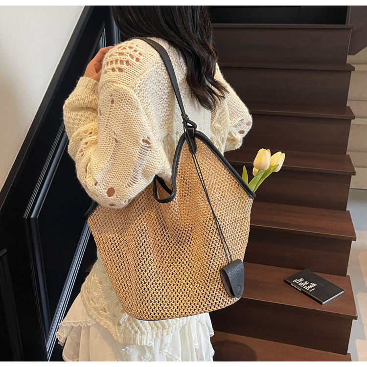프렌치 밀짚 가방 여름 휴가 짠 가방 대용량 새 짠 핸드백 캐주얼 숄더 토트 백
