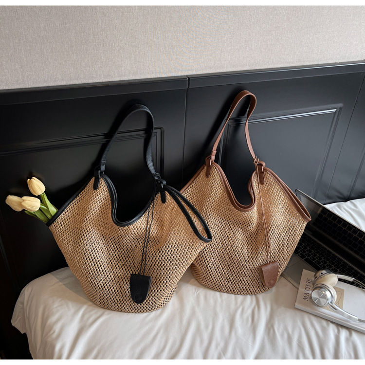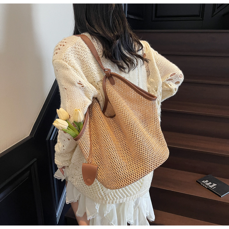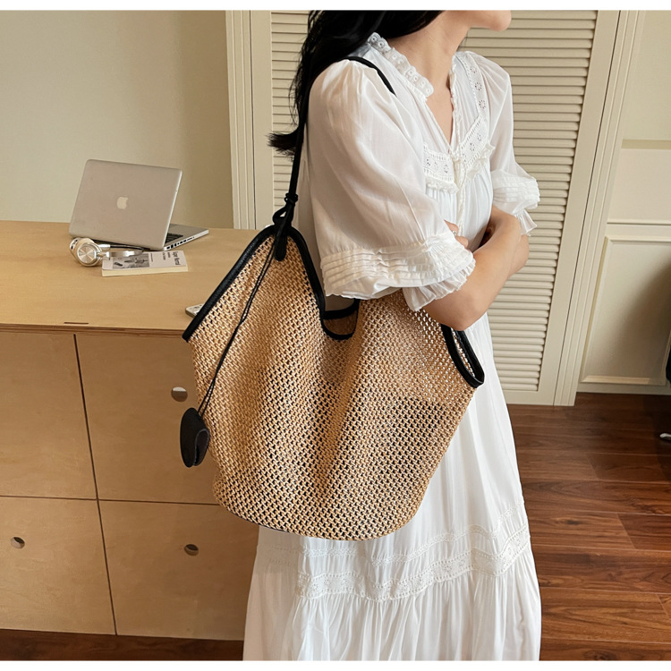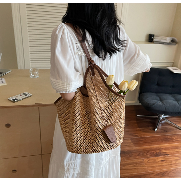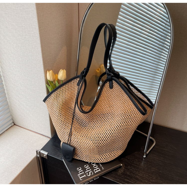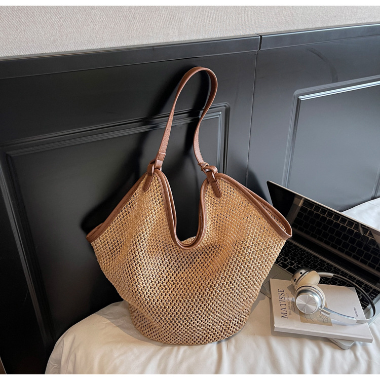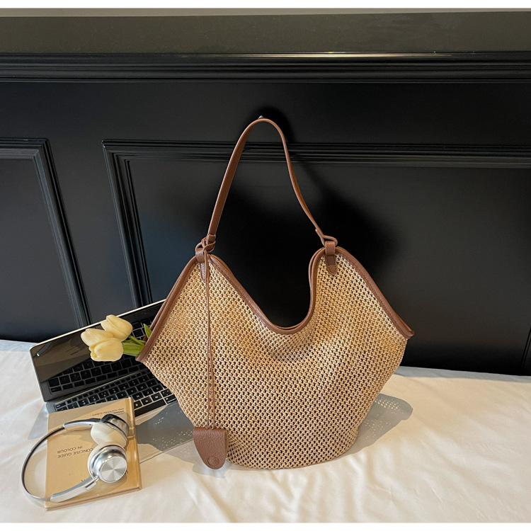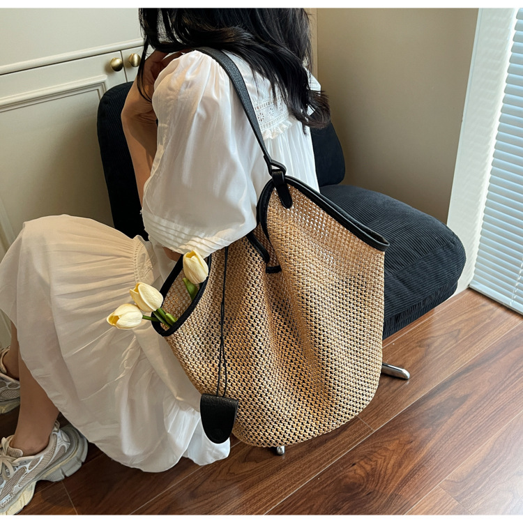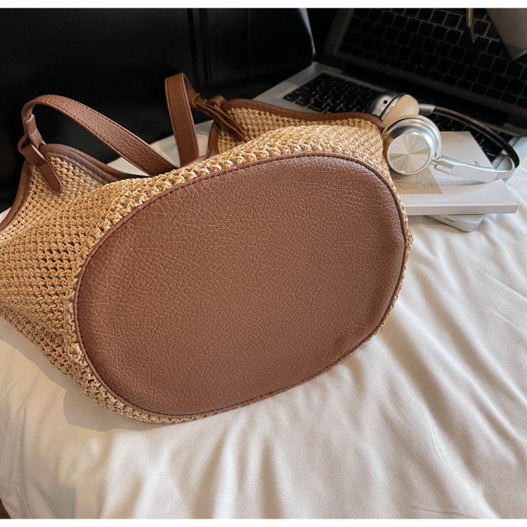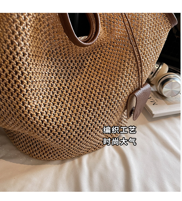 프렌치 밀짚 가방 여름 휴가 짠 가방 대용량 새 짠 핸드백 캐주얼 숄더 토트 백