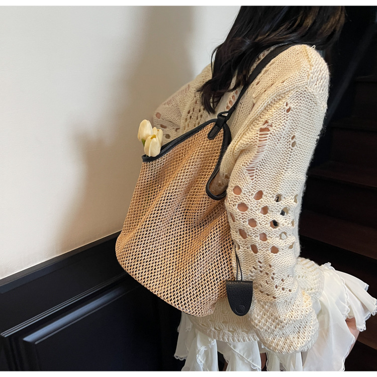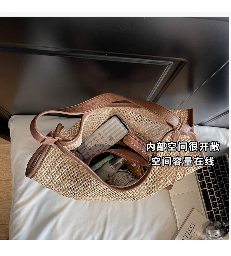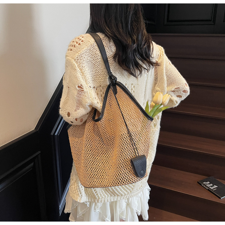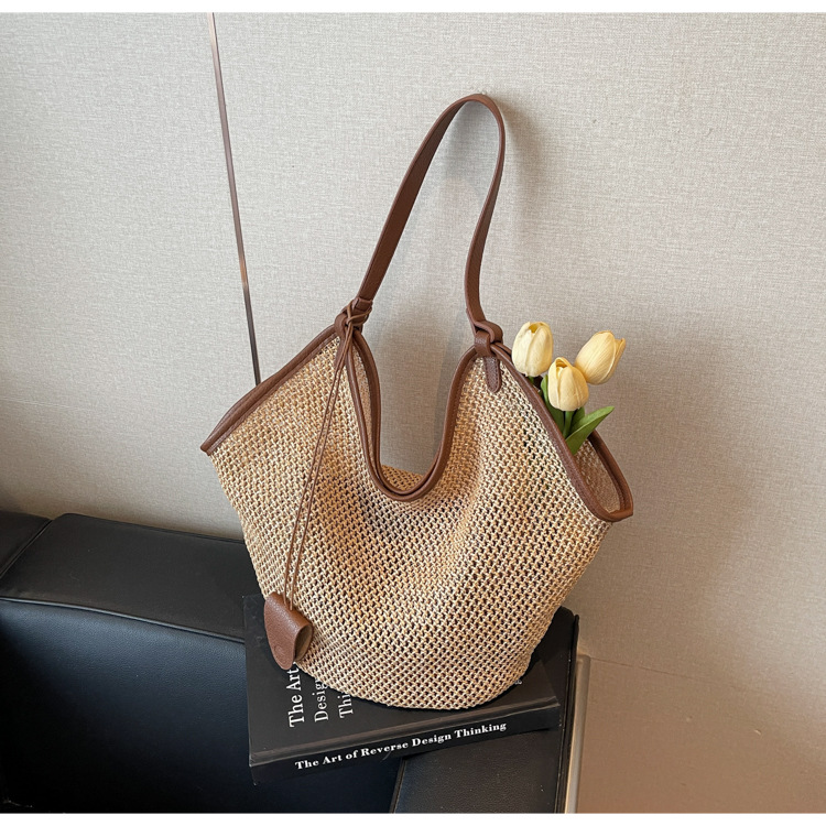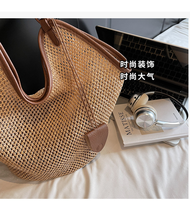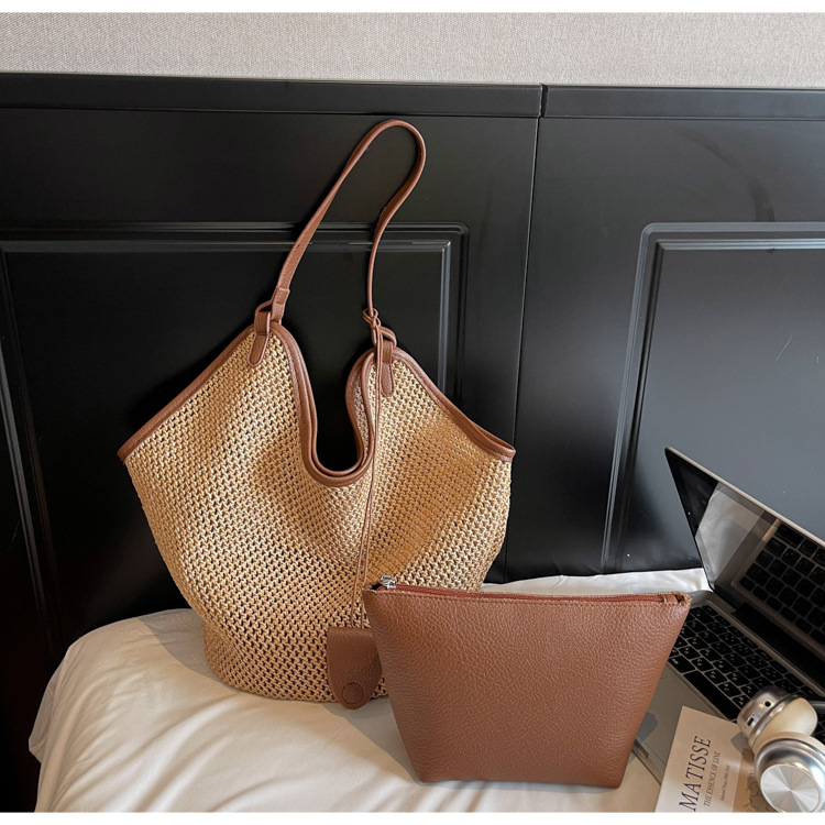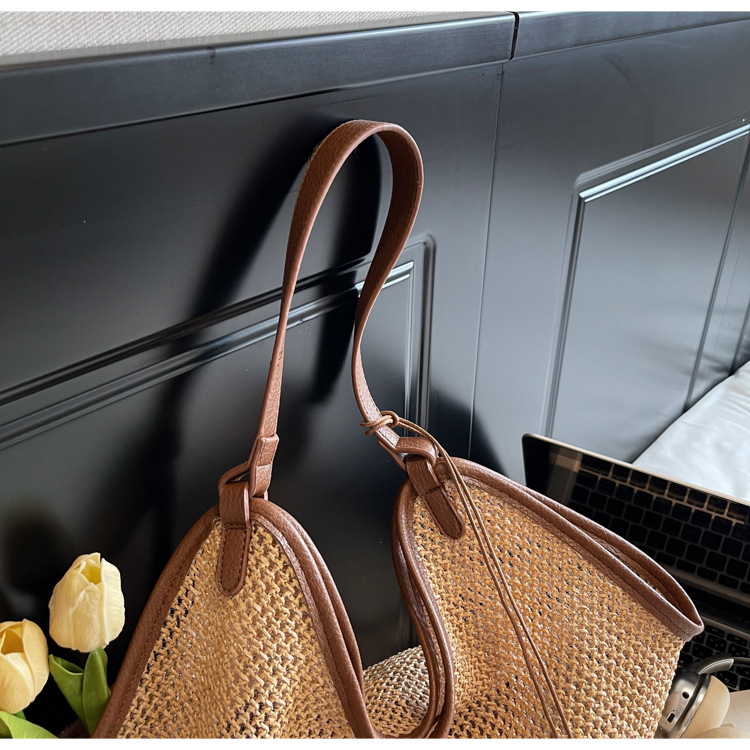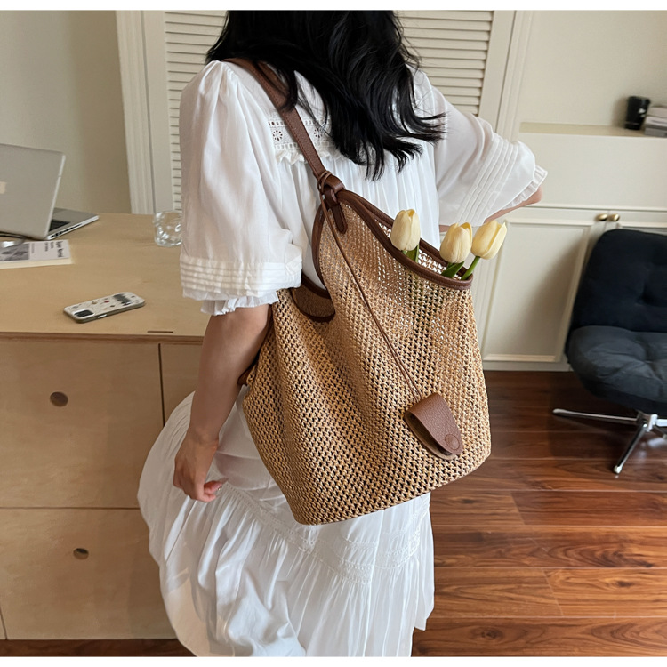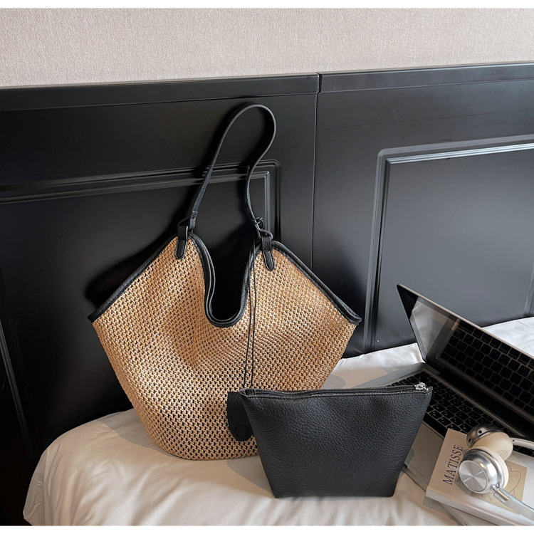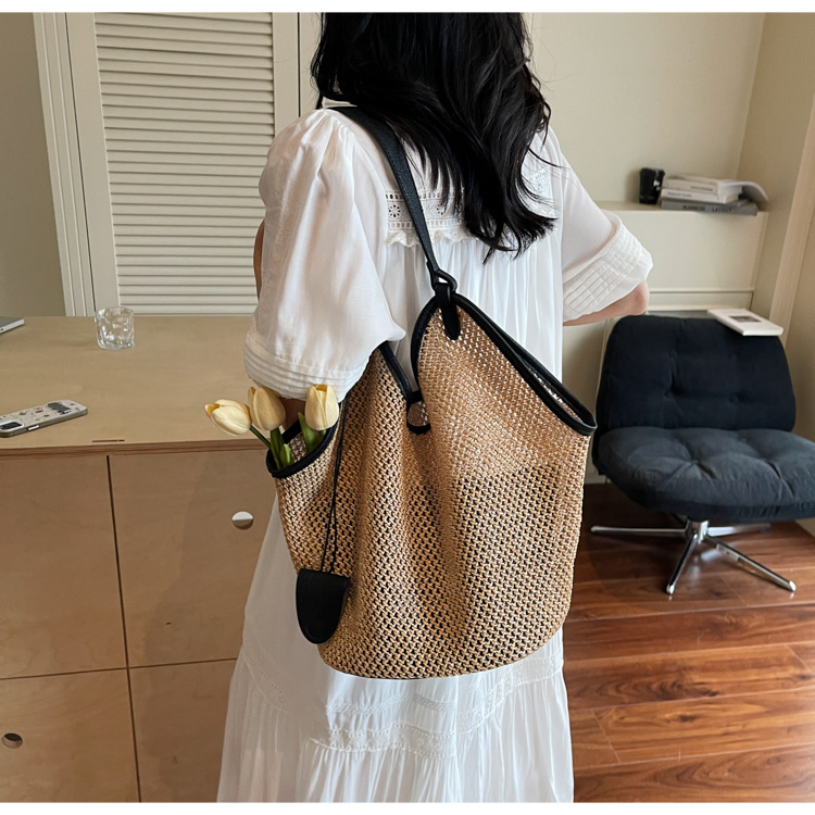 프렌치 밀짚 가방 여름 휴가 짠 가방 대용량 새 짠 핸드백 캐주얼 숄더 토트 백