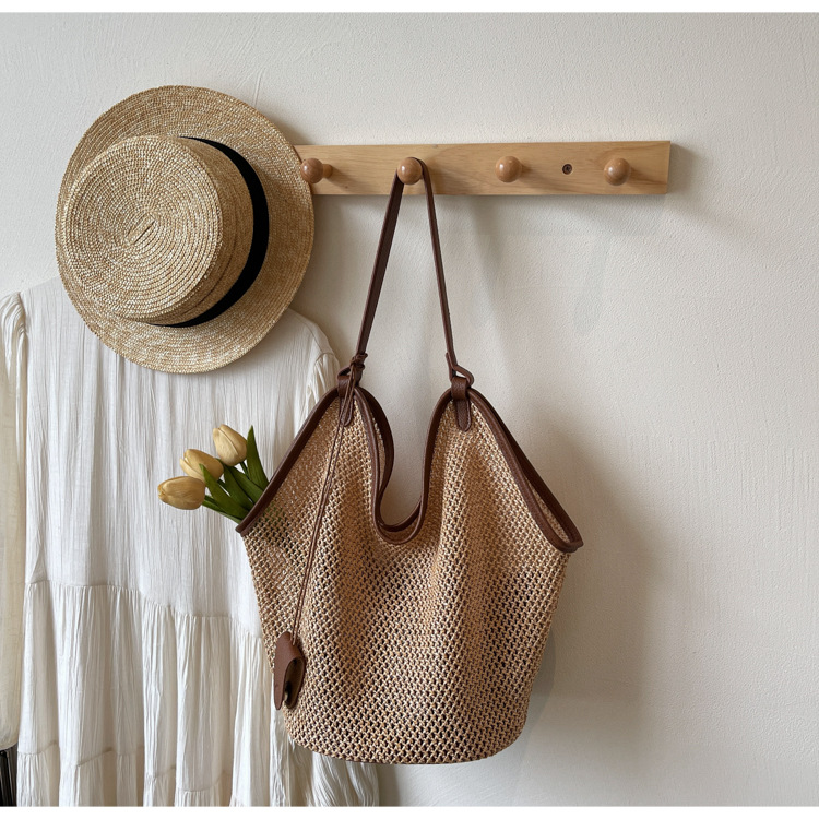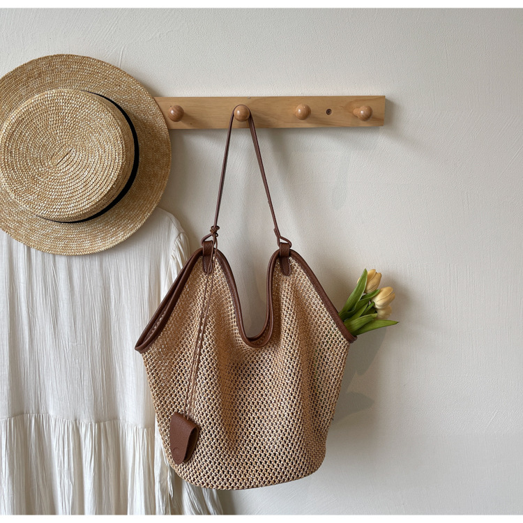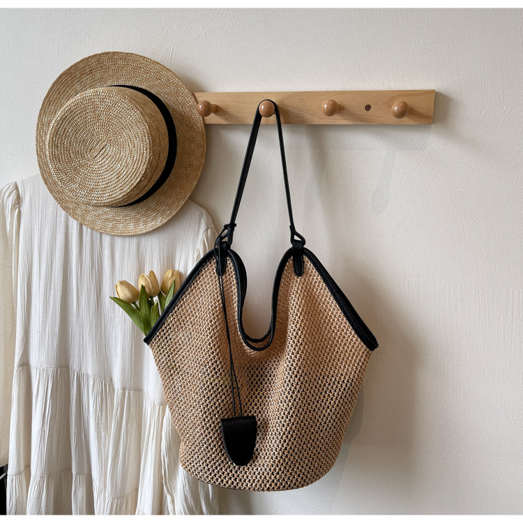 프렌치 밀짚 가방 여름 휴가 짠 가방 대용량 새 짠 핸드백 캐주얼 숄더 토트 백스토어 가기