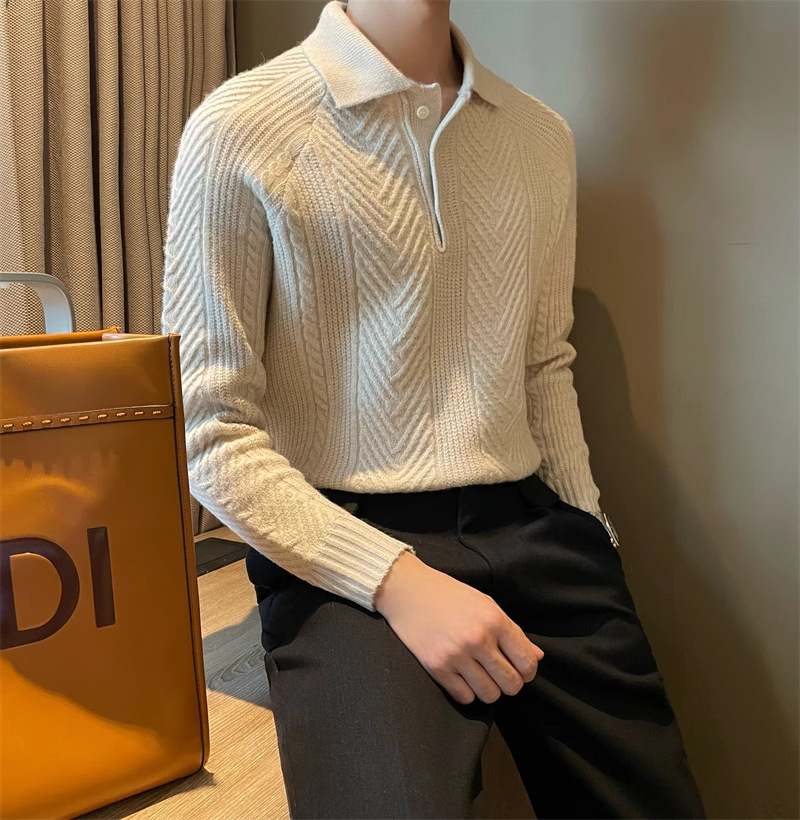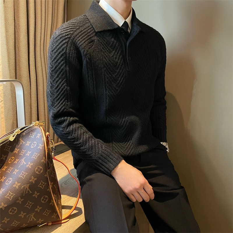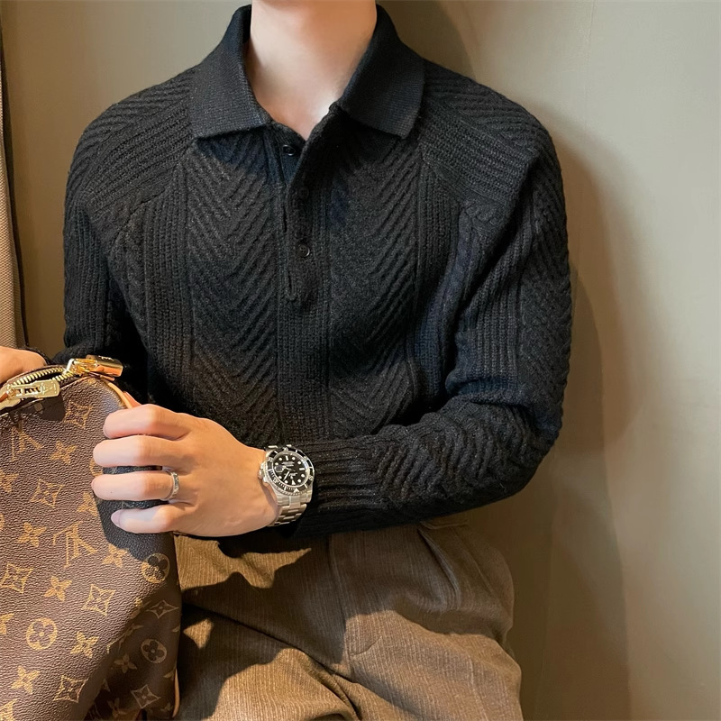 국경 간 인기 유럽 사이즈 대형 긴팔 스웨터 남성 가벼운 성숙한 스타일 폴로 셔츠 비즈니스 대외 무역 공장 도매