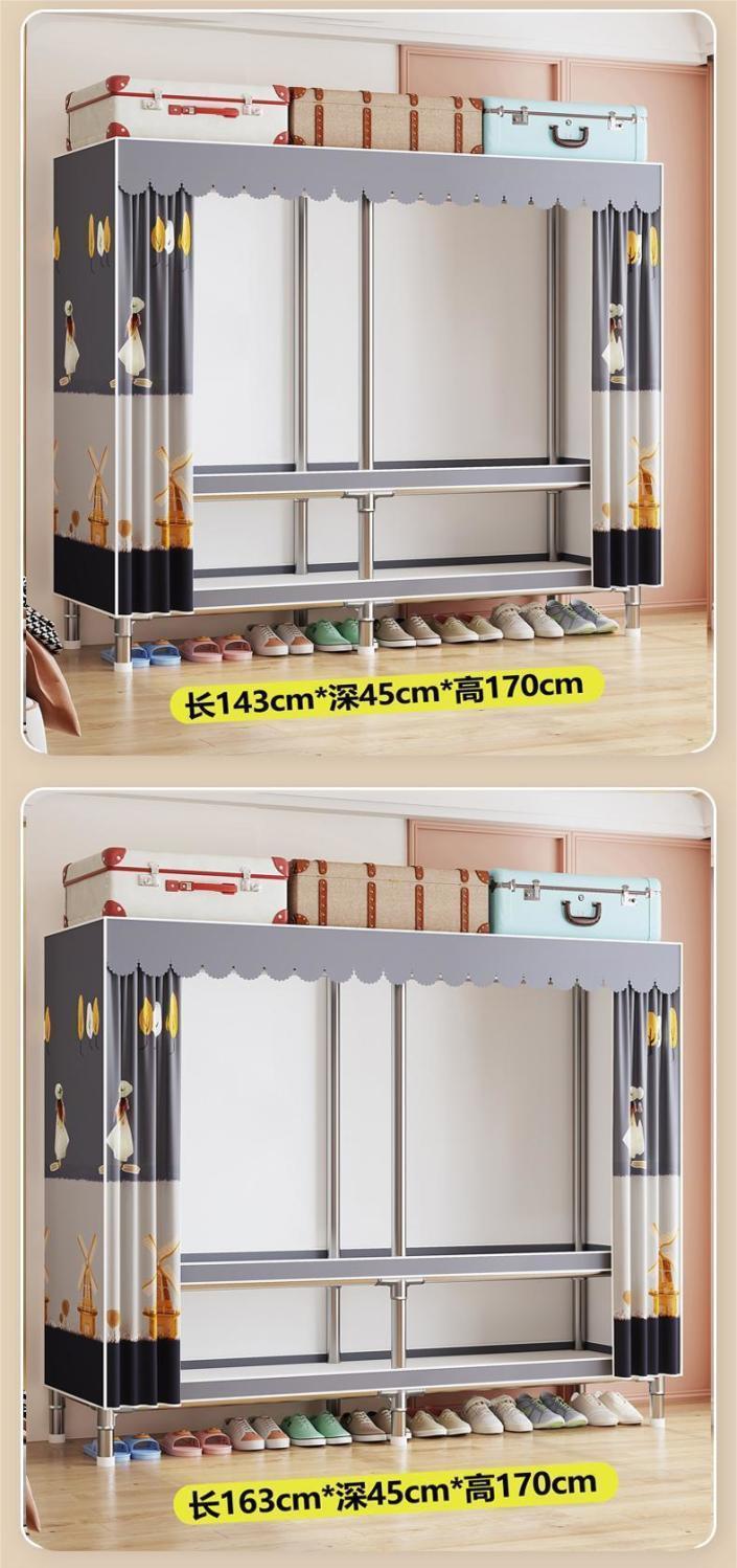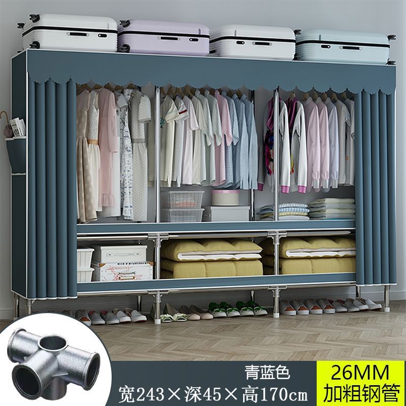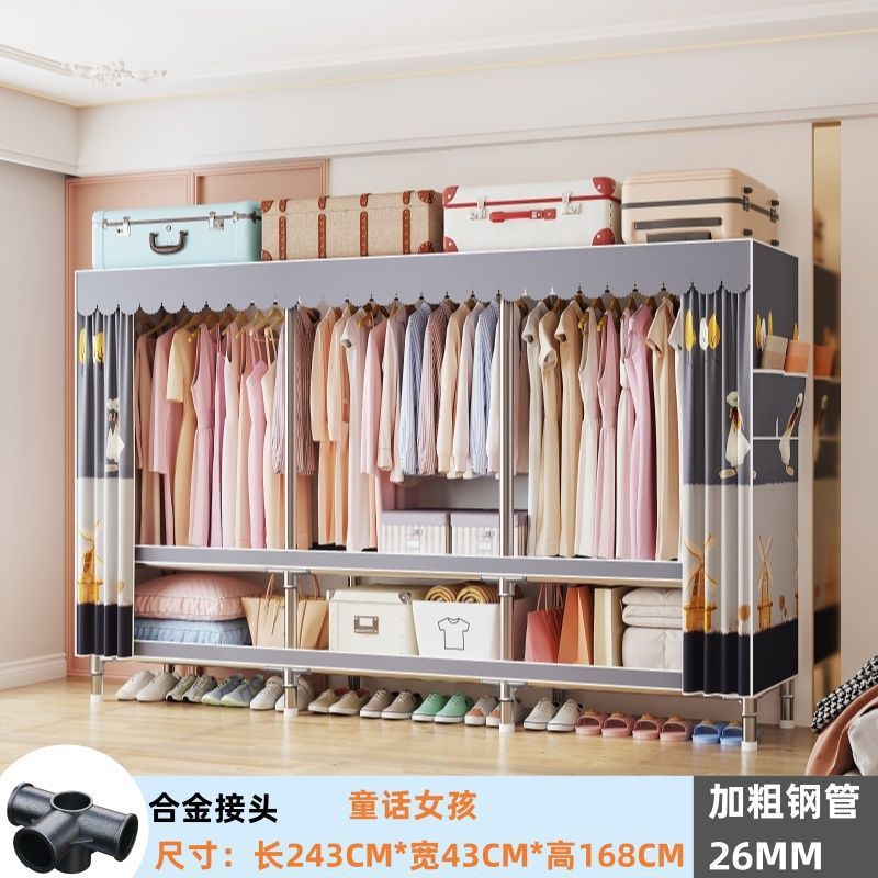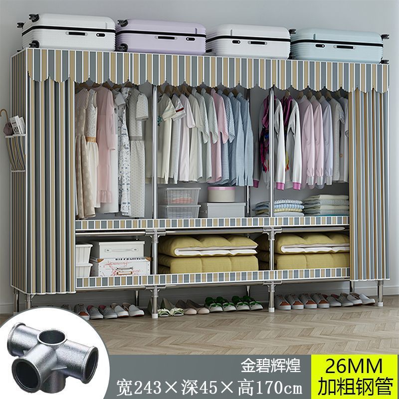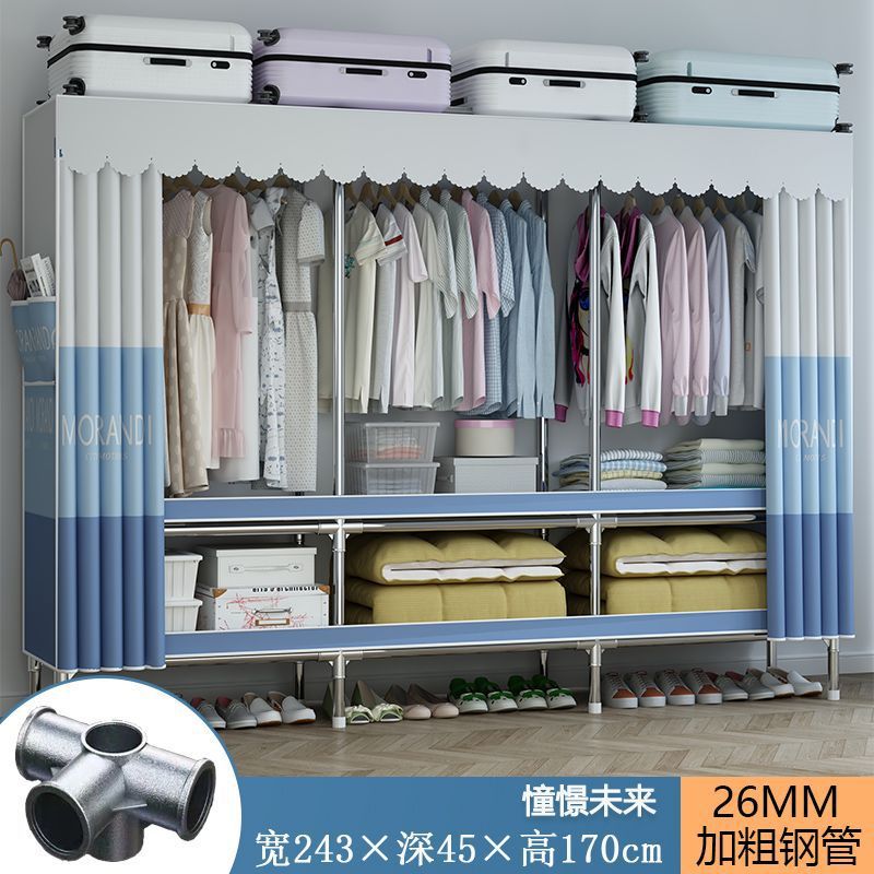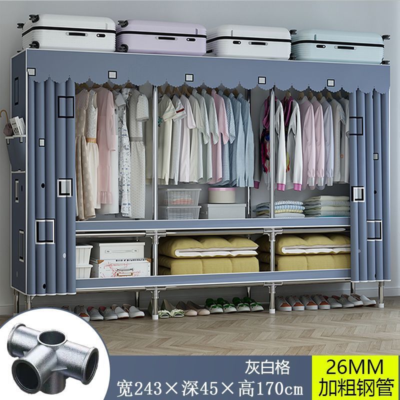 강철 프레임 내하중 간단한 옷장 가정용 강화 침실 강철 파이프 조립 옷장 보관 두꺼운 임대 주택 두꺼운스토어 가기