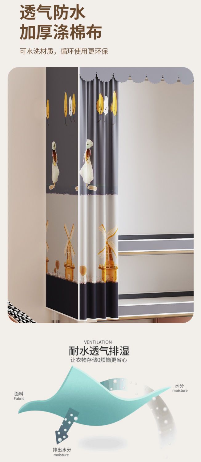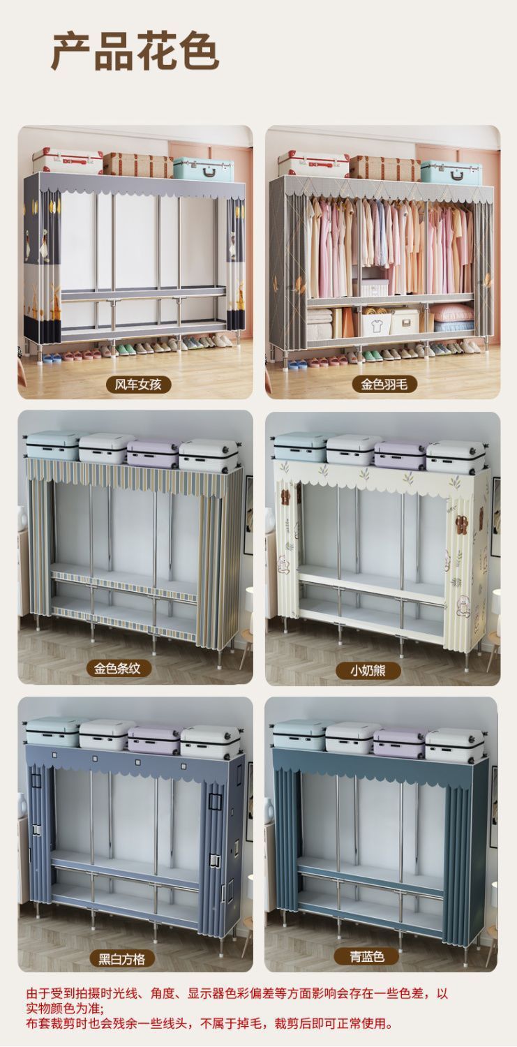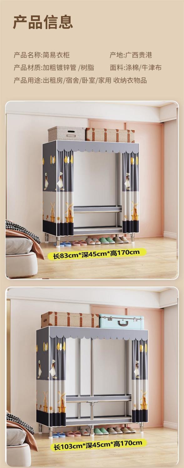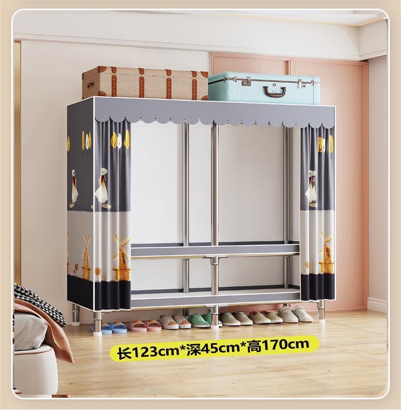 강철 프레임 내하중 간단한 옷장 가정용 강화 침실 강철 파이프 조립 옷장 보관 두꺼운 임대 주택 두꺼운스토어 가기