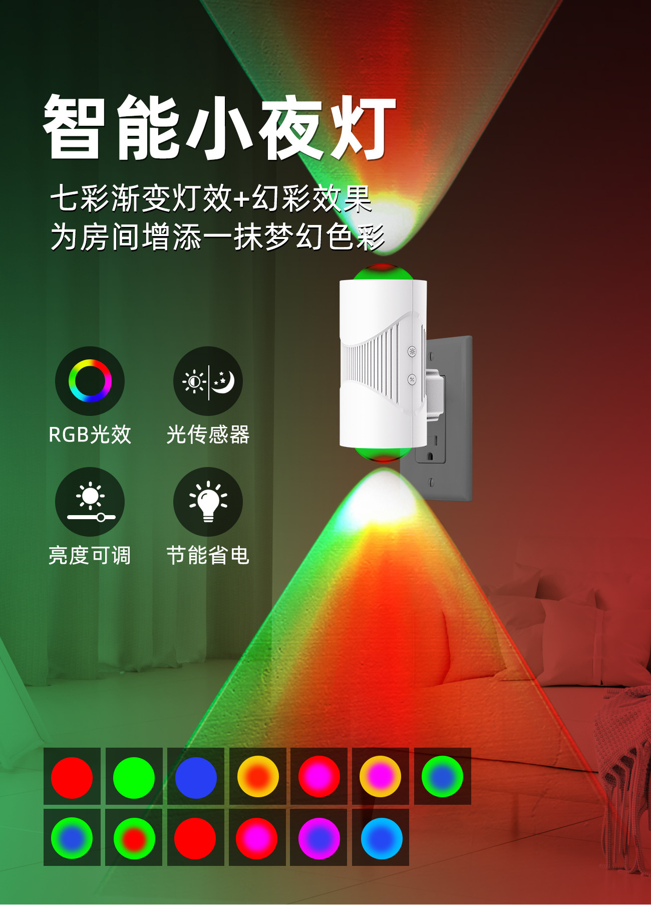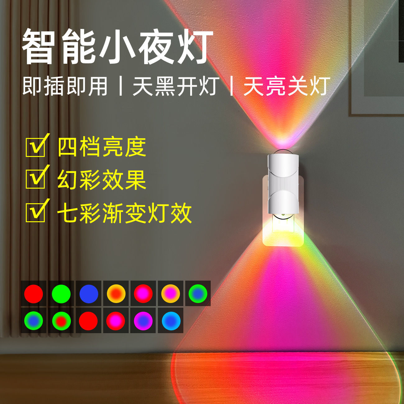 국경 간 신제품 RGB 다채로운 그라데이션 분위기 조명 조정 가능한 야간 조명 지능형 인체 유도 다채로운 벽 조명