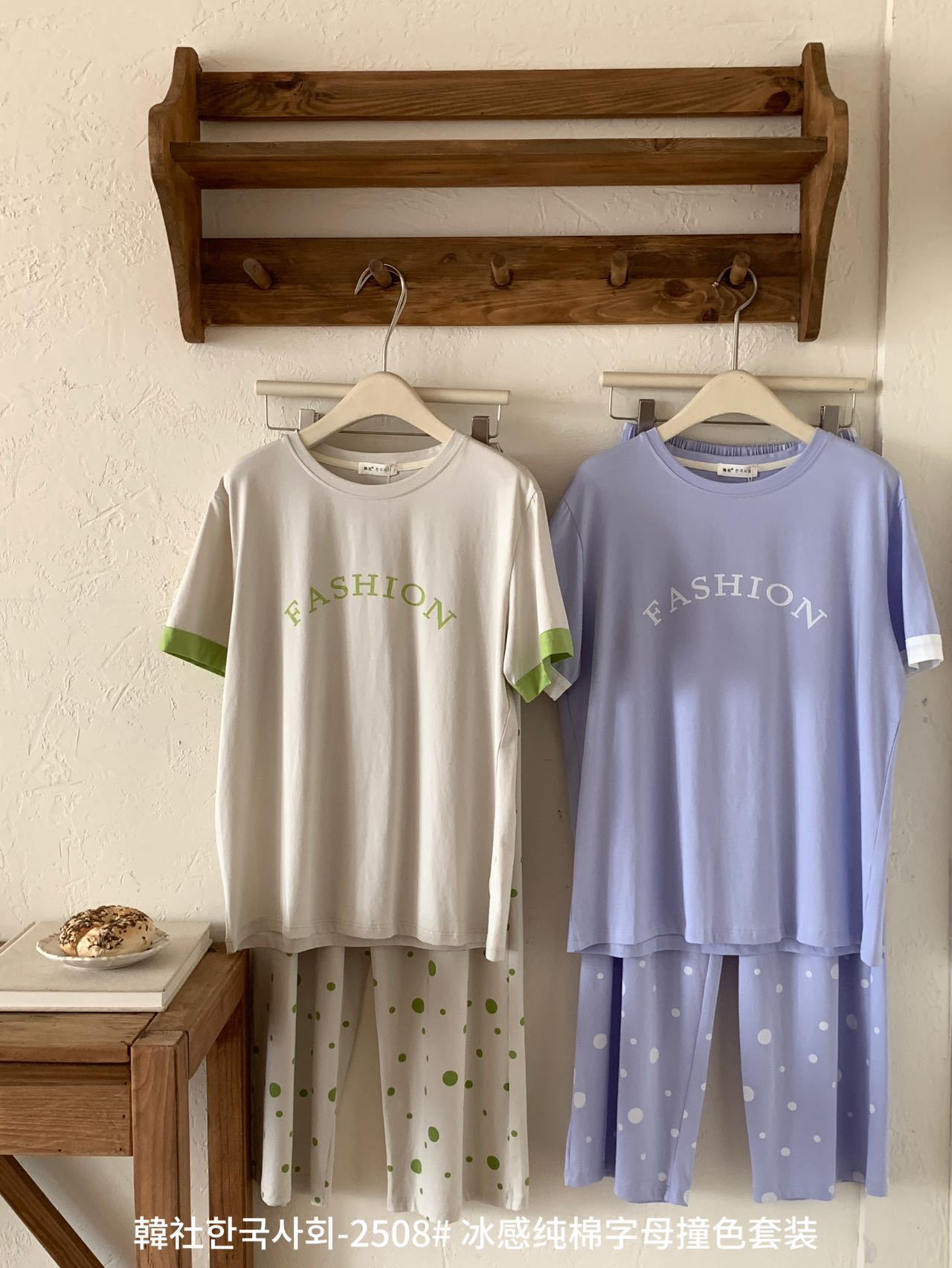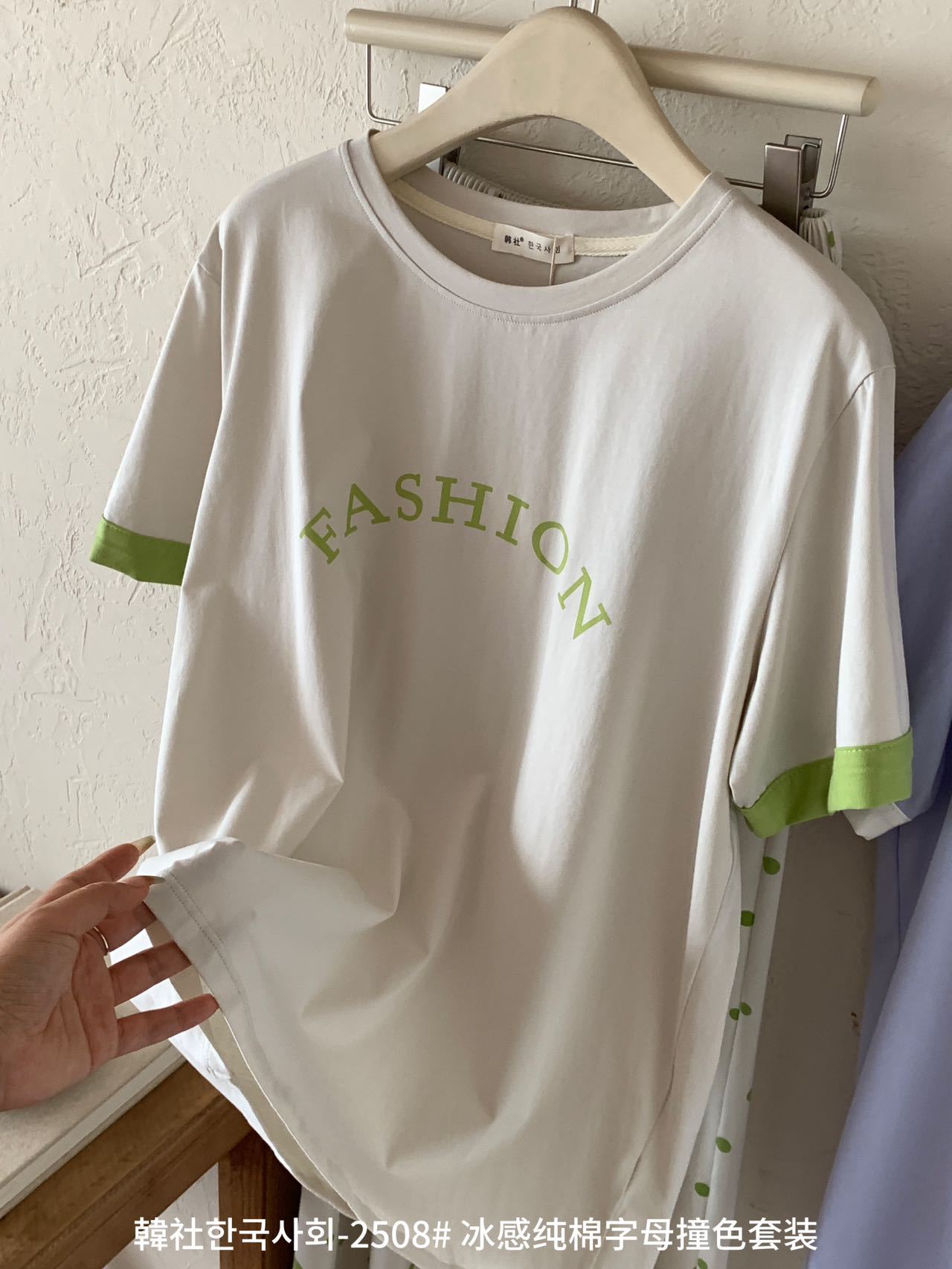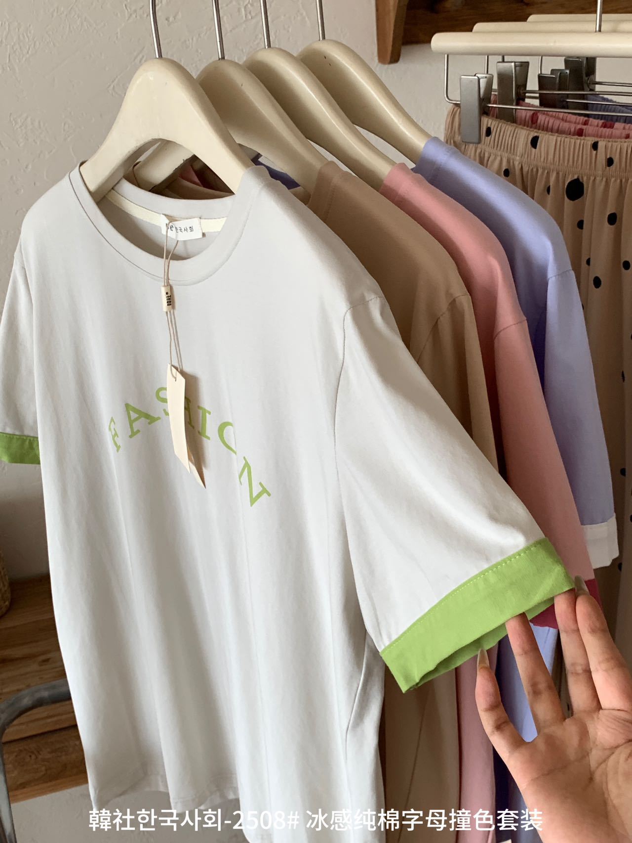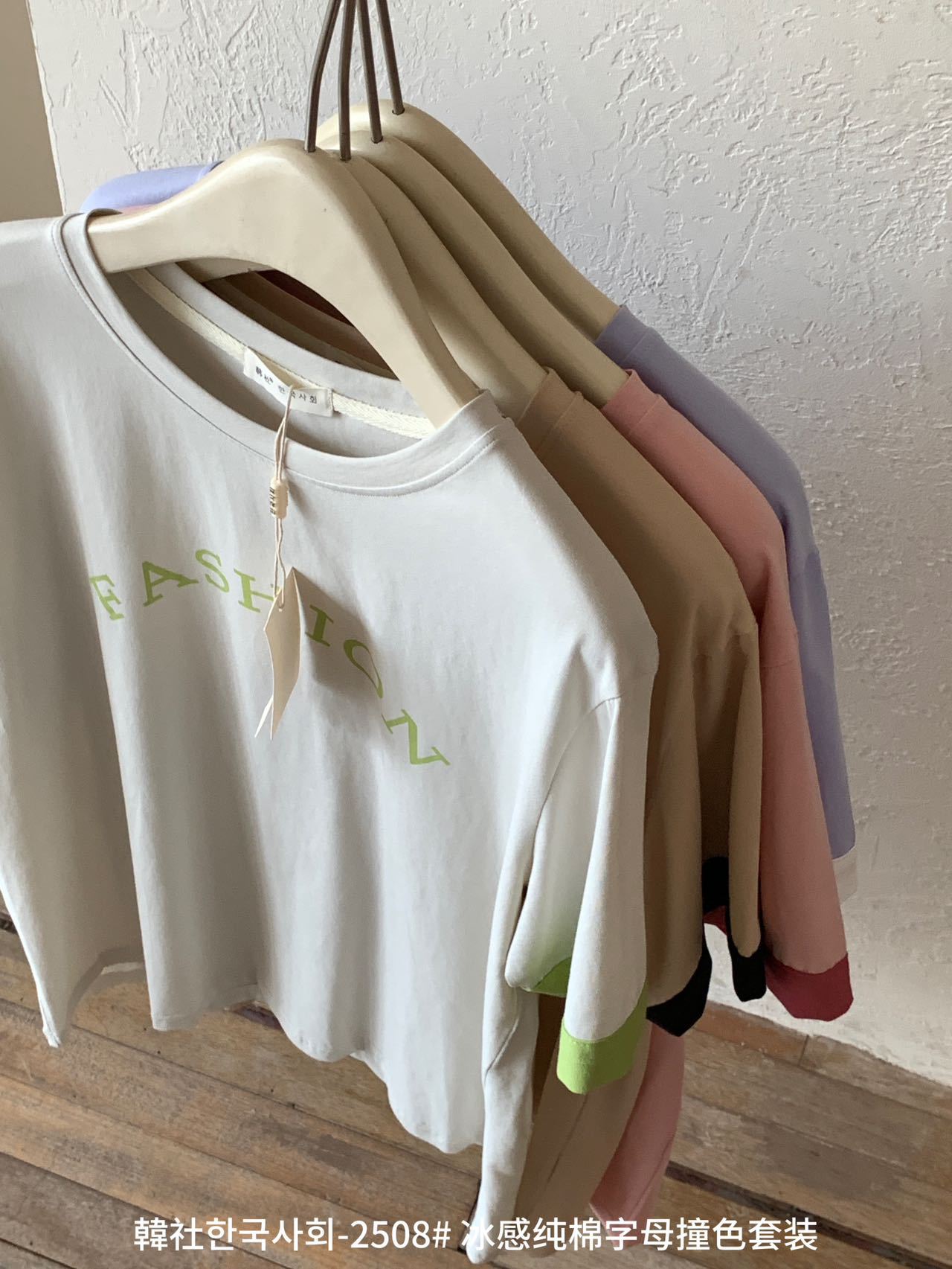 韓社한국사회-2508# 冰感纯棉字母撞色套装
