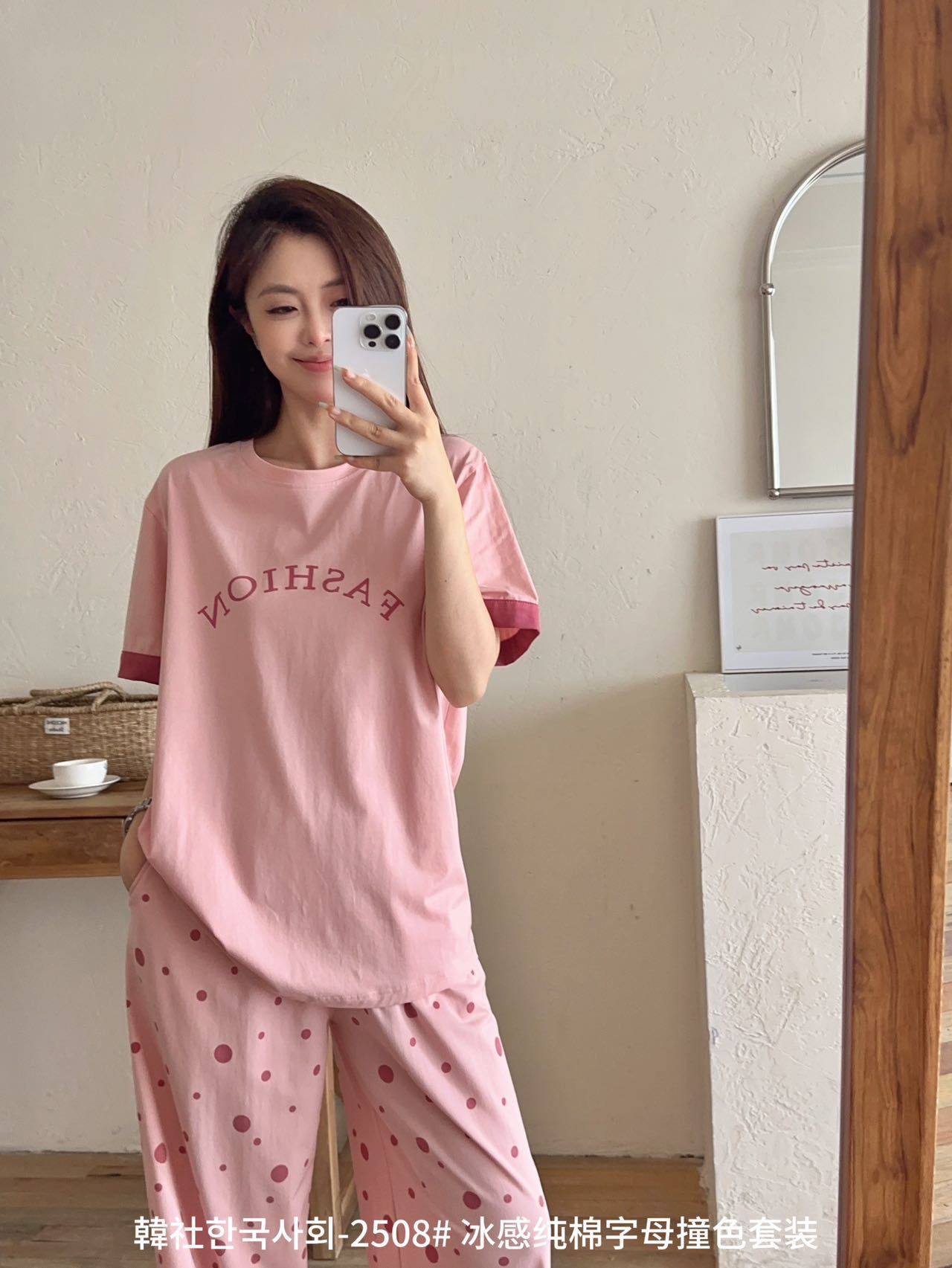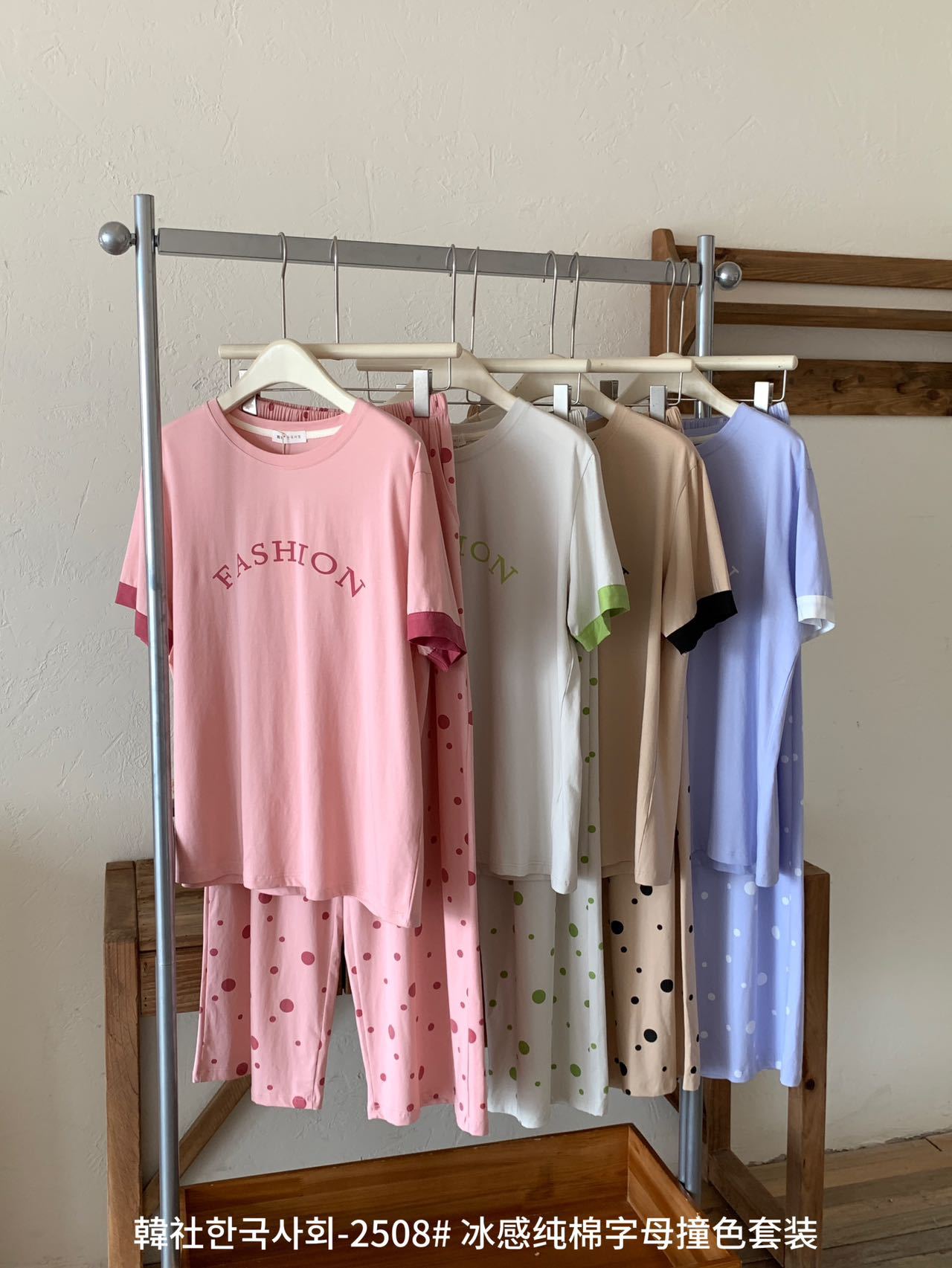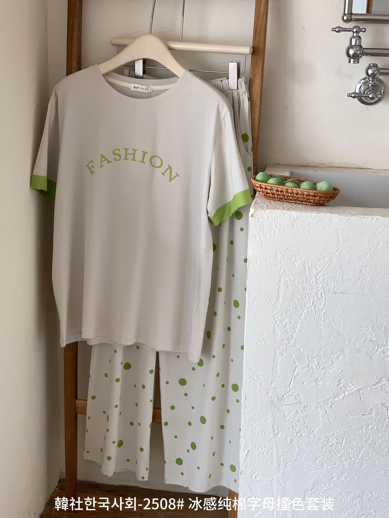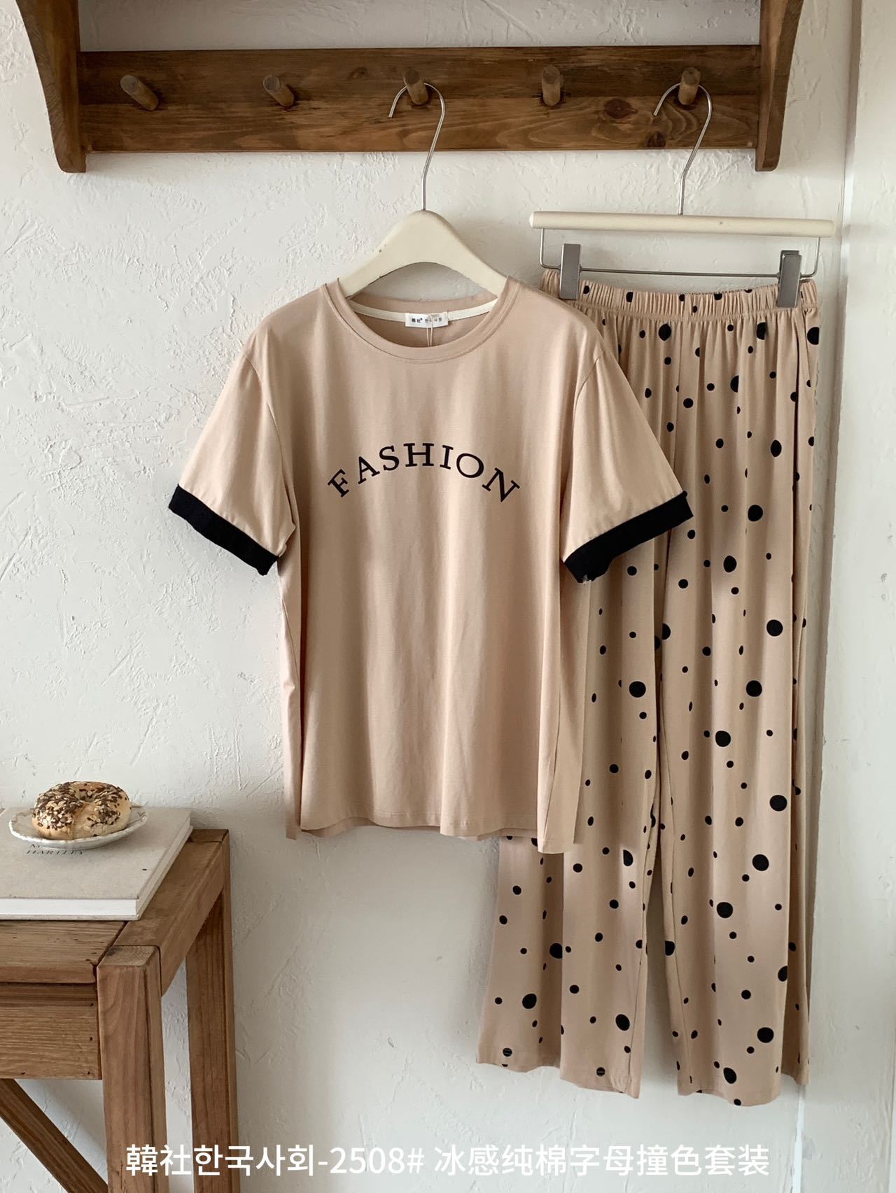 韓社한국사회-2508# 冰感纯棉字母撞色套装