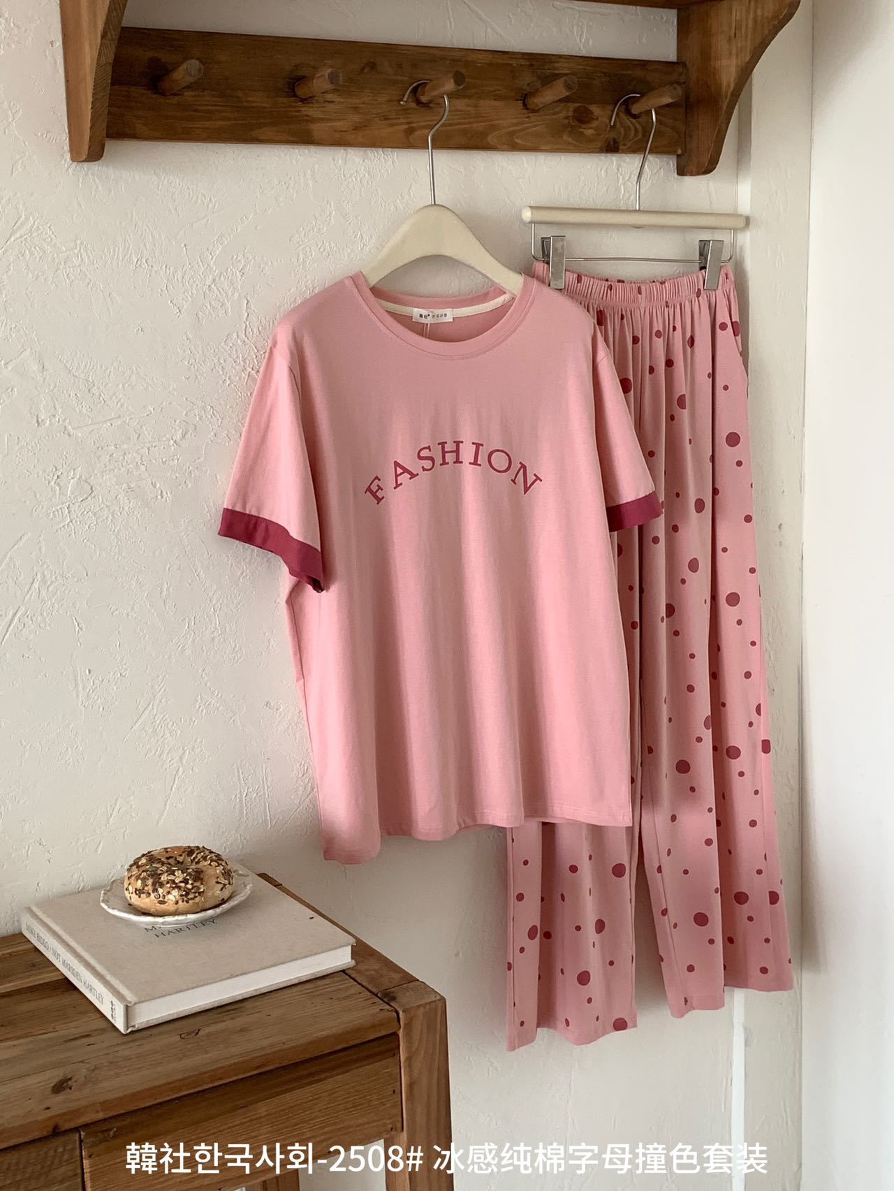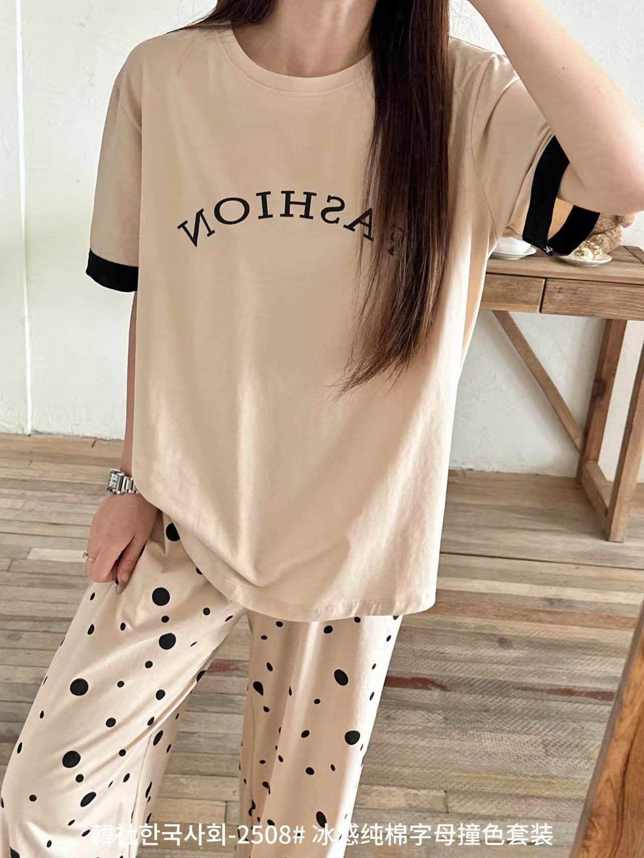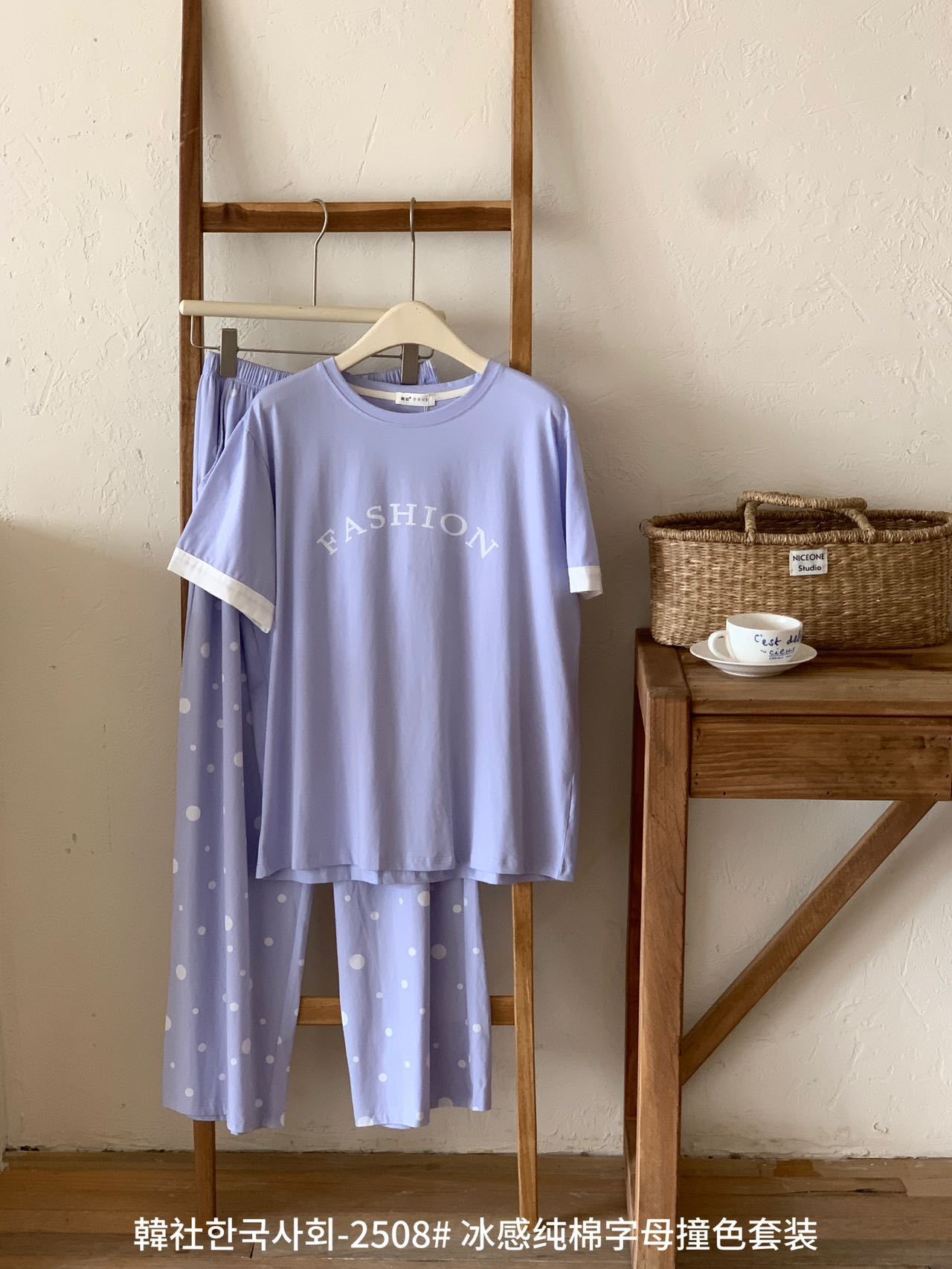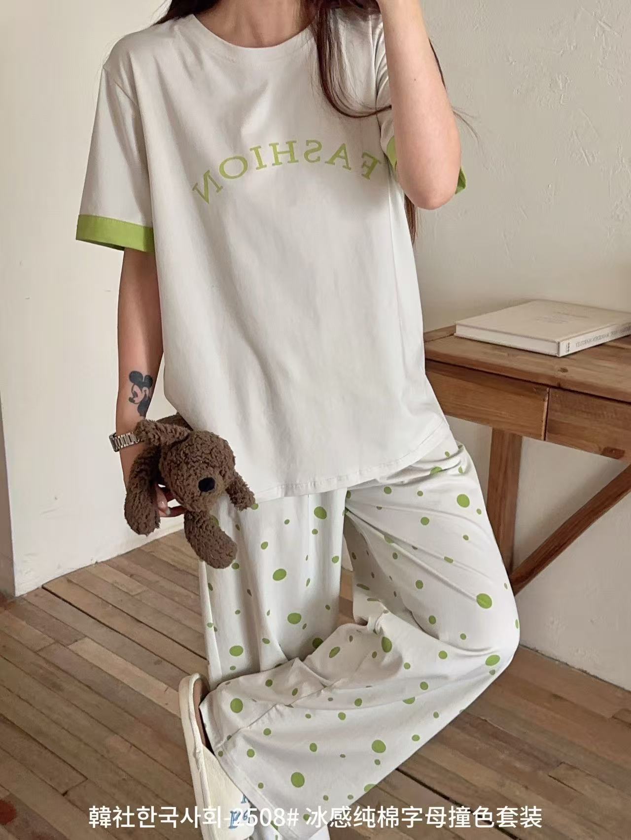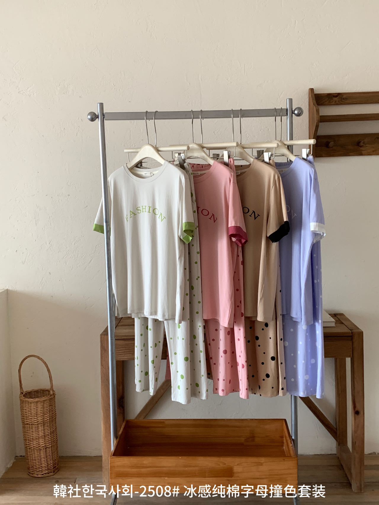 韓社한국사회-2508# 冰感纯棉字母撞色套装