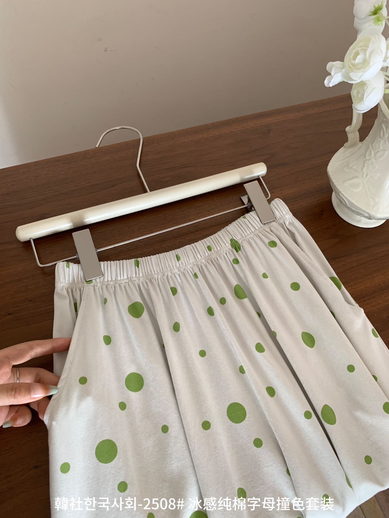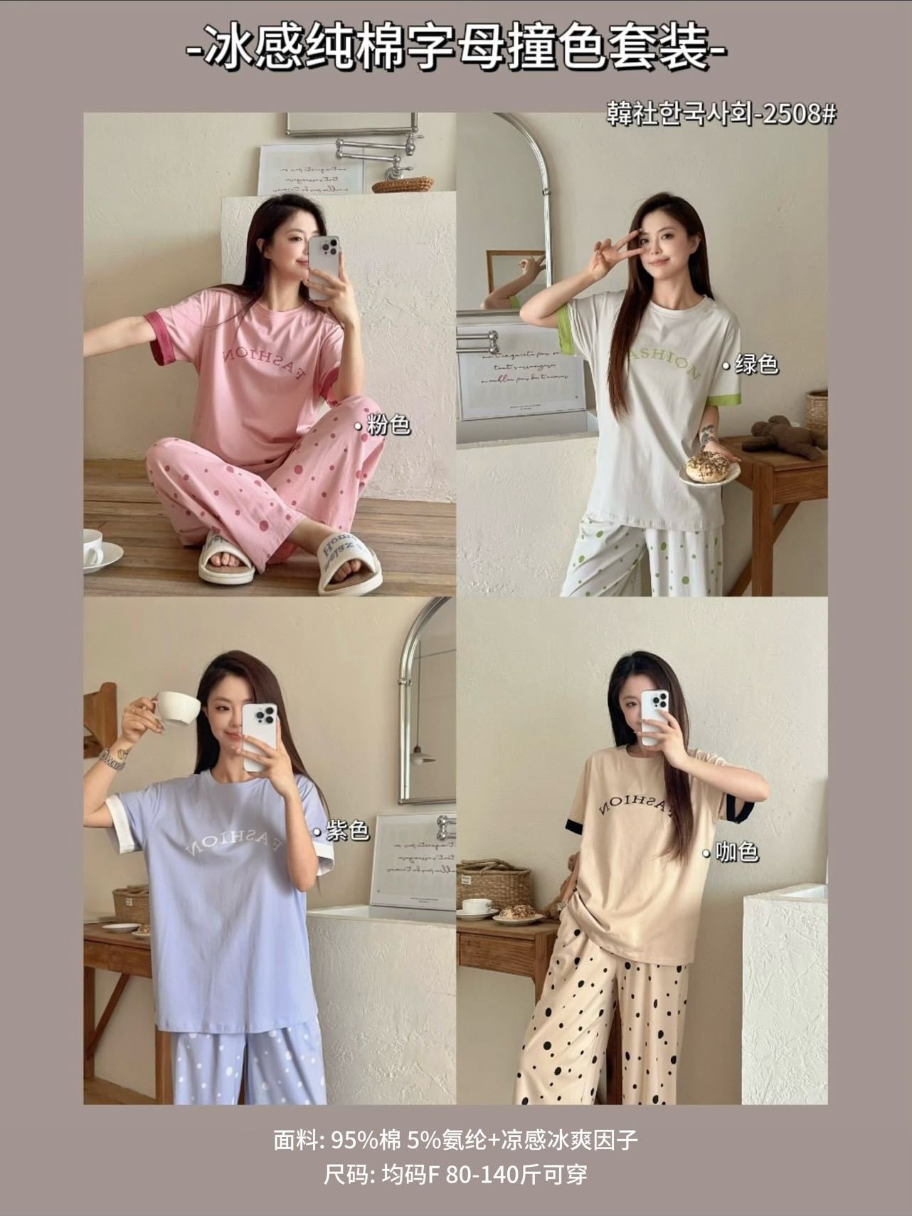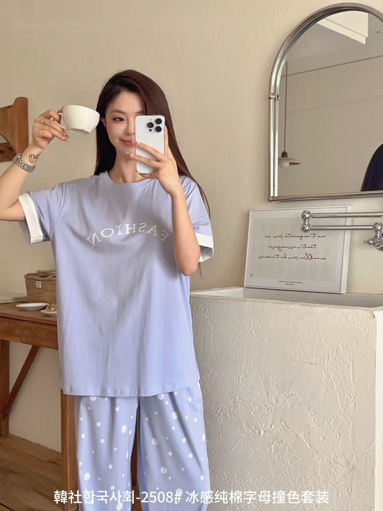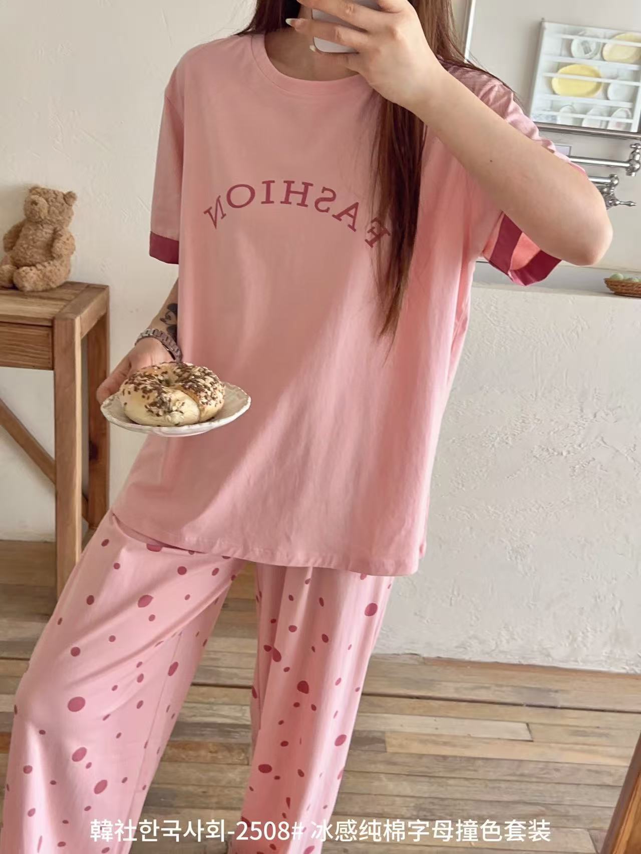 韓社한국사회-2508# 冰感纯棉字母撞色套装