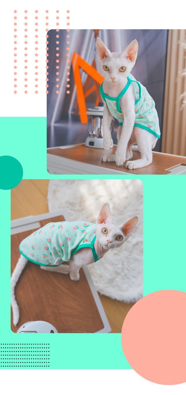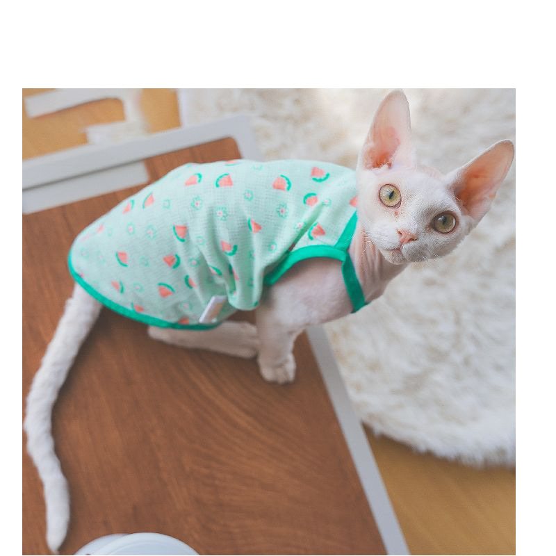 여름 새로운 털이없는 고양이 옷 데본 애완 동물 고양이 새끼 고양이 면화 시원한 통기성 캐미솔 반팔