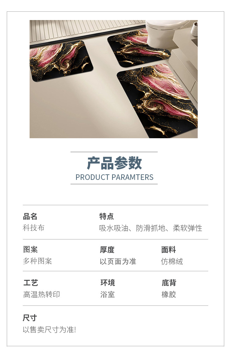 대리석 변기 3피스 바닥 매트 가정용 욕실 샤워실 흡수성 발 매트 미끄럼 방지 부드러운 규조토 진흙 바닥 매트스토어 가기