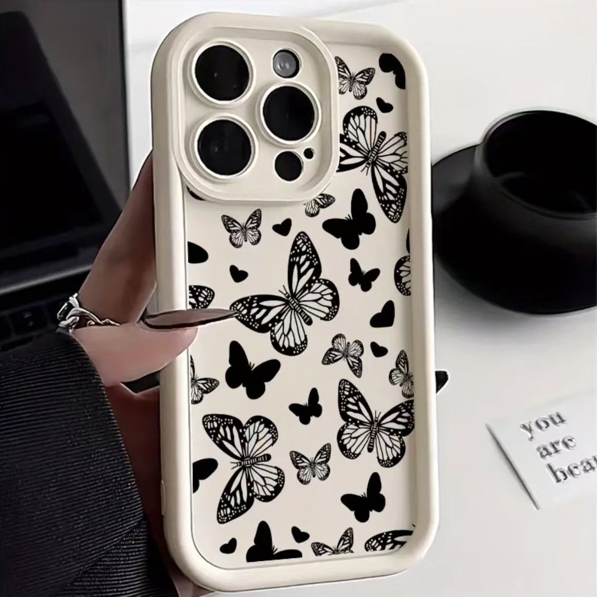 iPhone 낙하 방지 보호 커버에 적합한 전체 화면 검은 나비 Apple 11/12/13/14/15/16Pro 휴대폰 케이스스토어 가기
