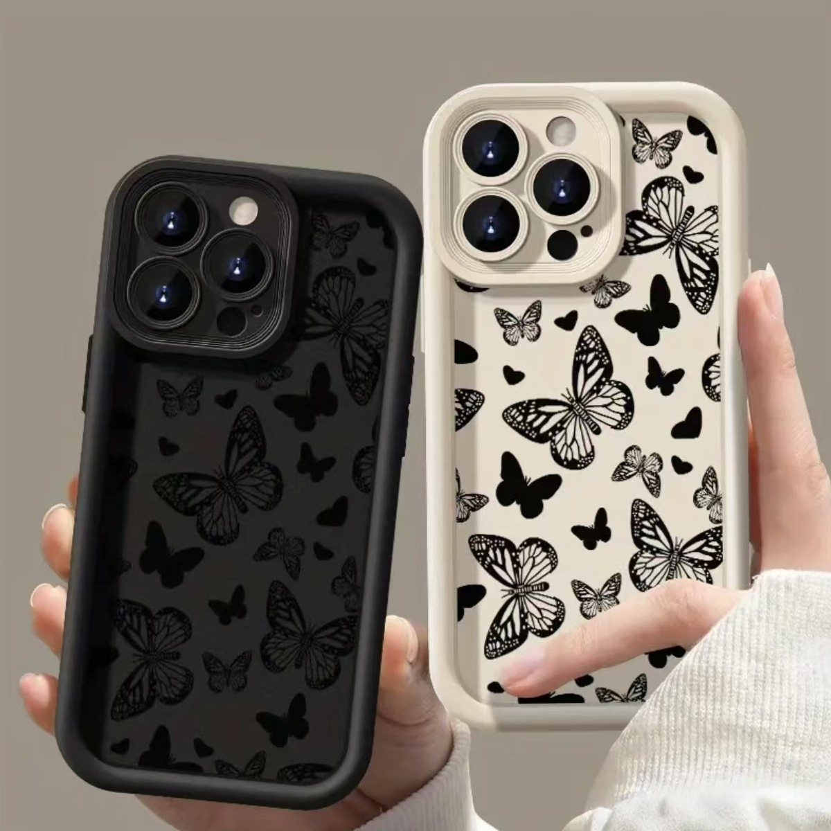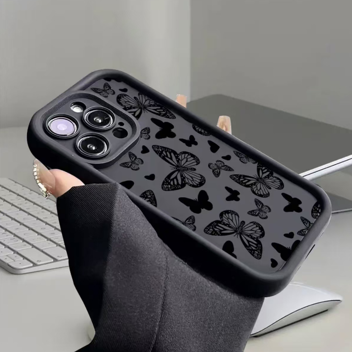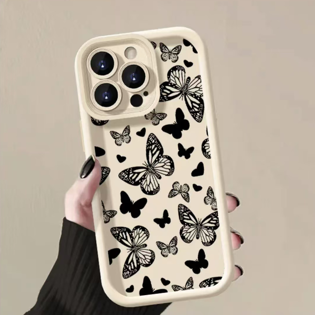 iPhone 낙하 방지 보호 커버에 적합한 전체 화면 검은 나비 Apple 11/12/13/14/15/16Pro 휴대폰 케이스