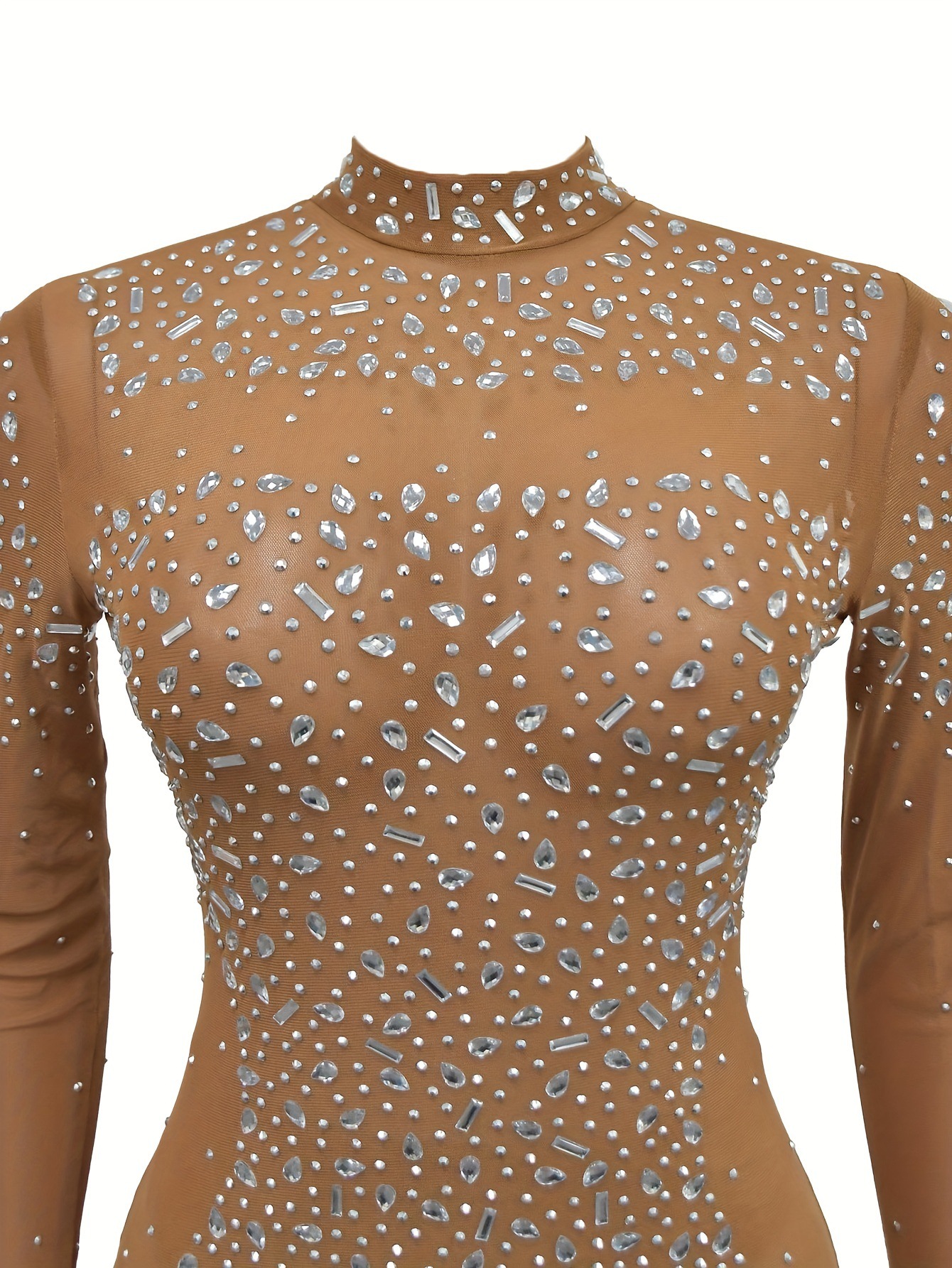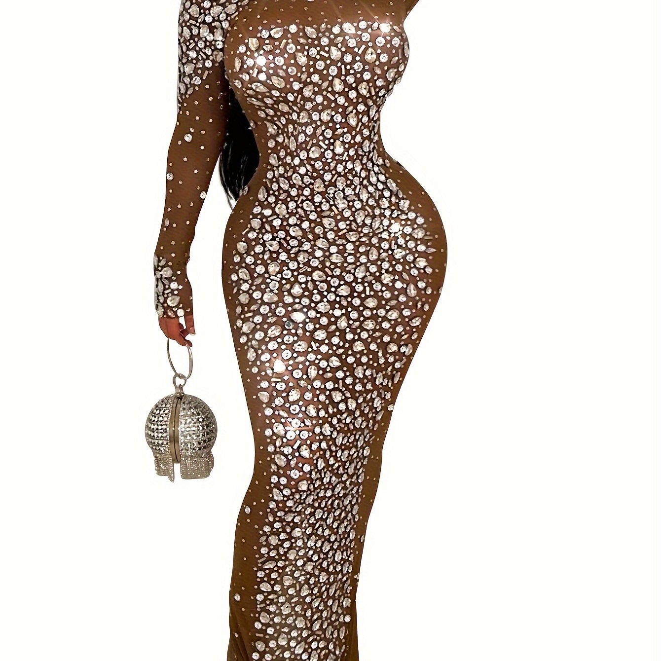 2025년 새로운 유럽과 미국의 고급스러운 긴팔 우아한 라인스톤 드레스는 절묘하고 놀랍습니다.
