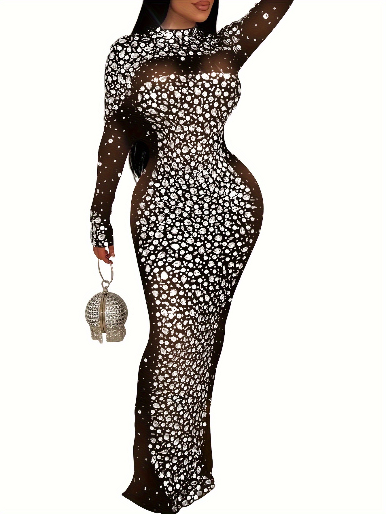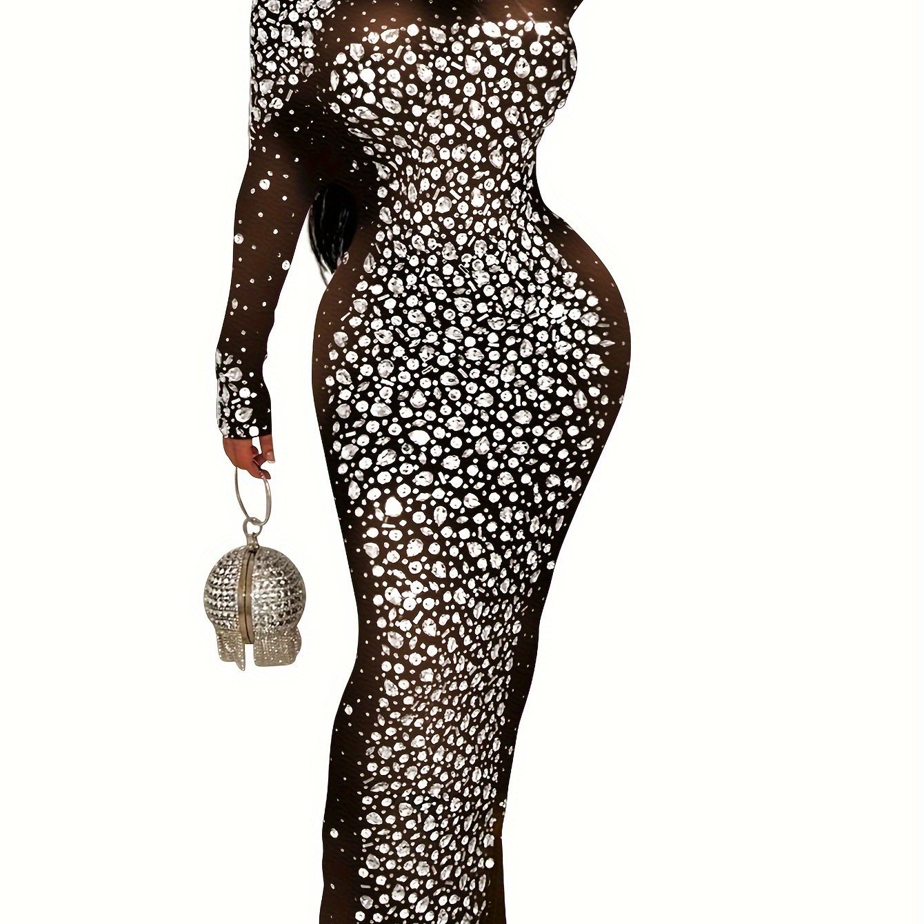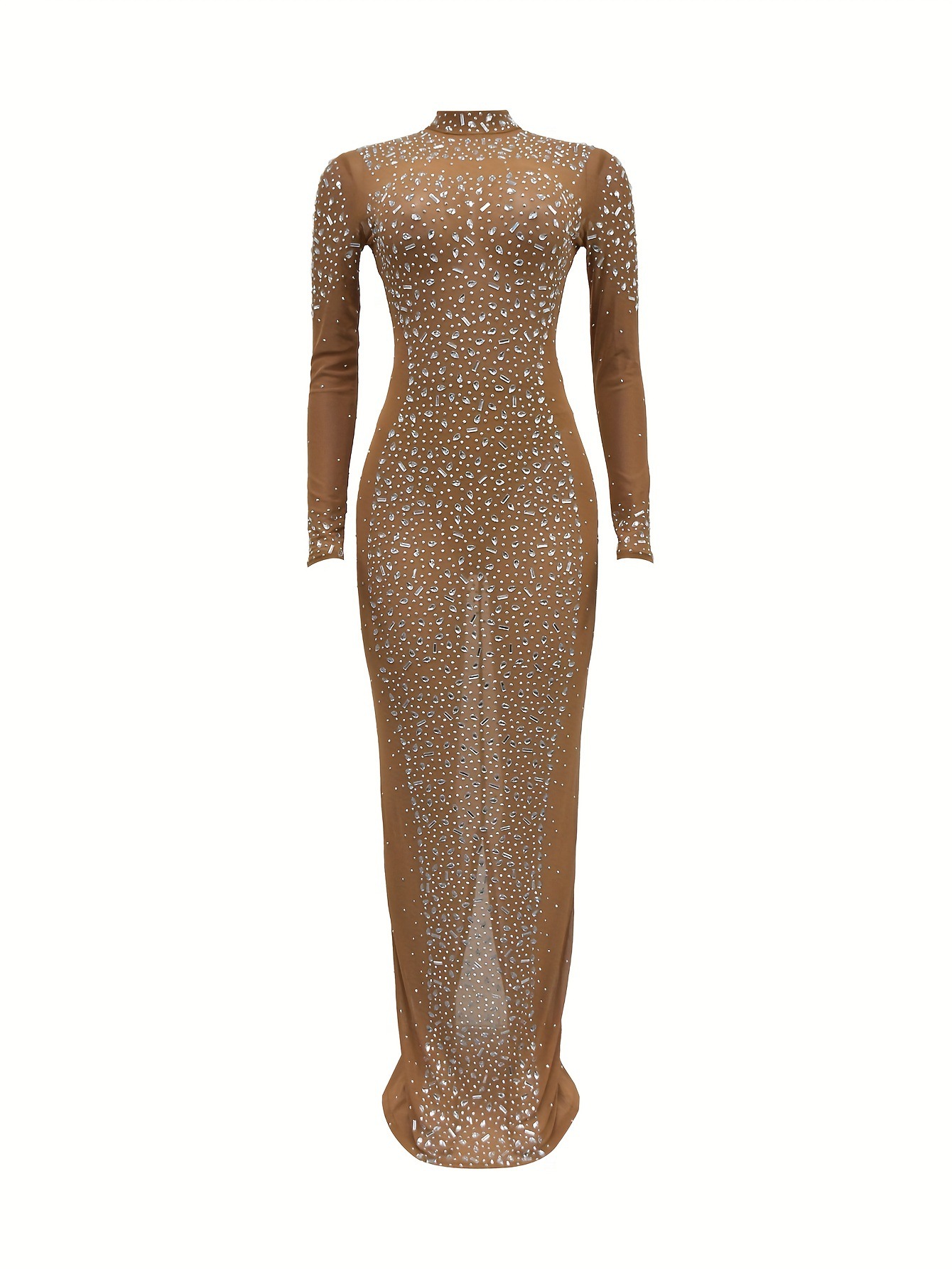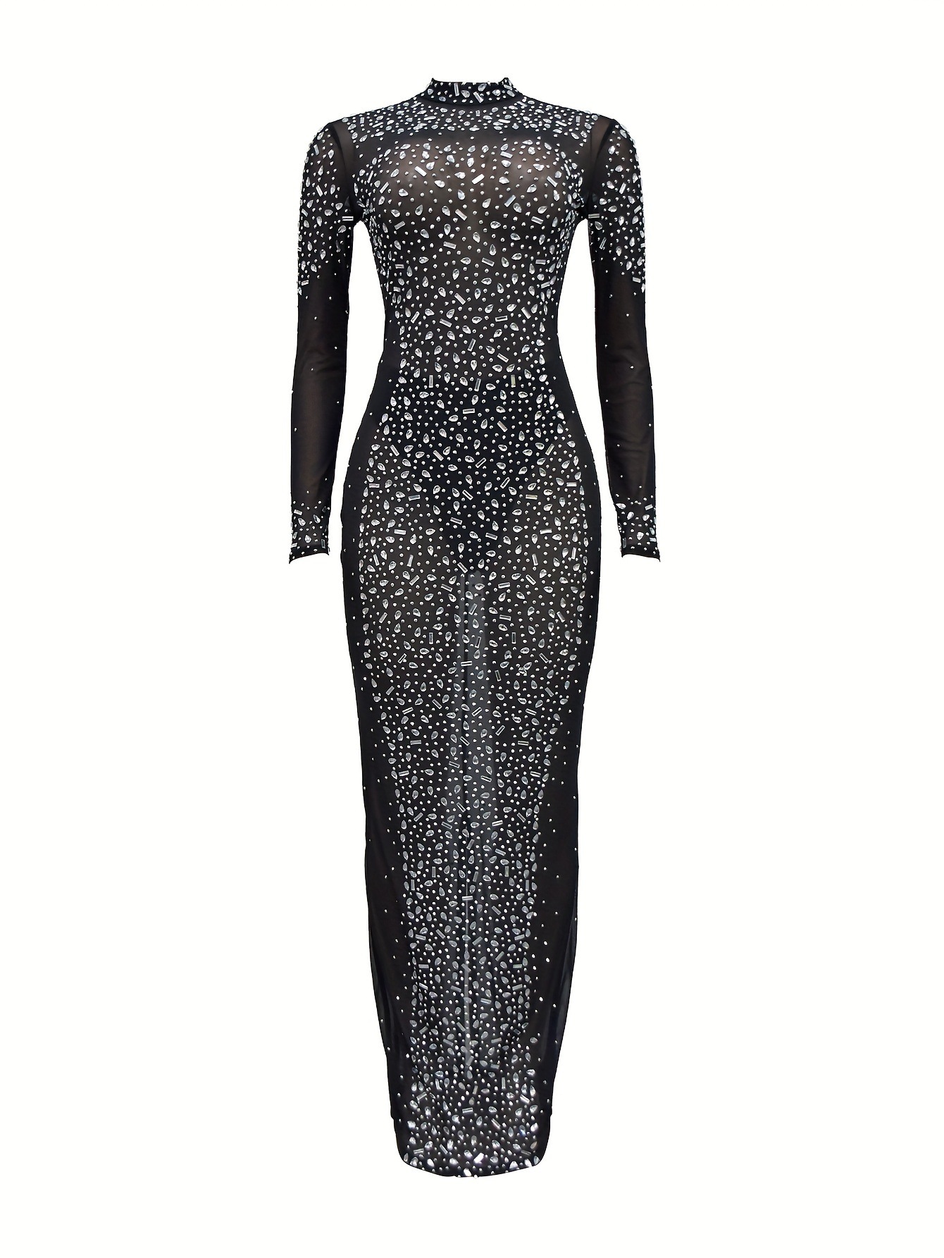 2025년 새로운 유럽과 미국의 고급스러운 긴팔 우아한 라인스톤 드레스는 절묘하고 놀랍습니다.스토어 가기