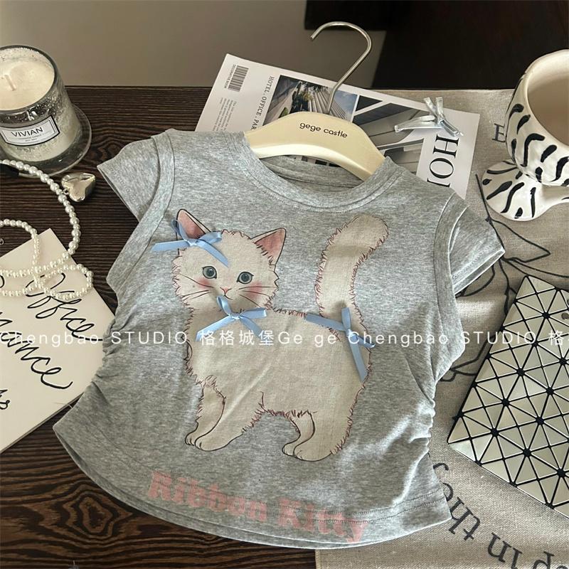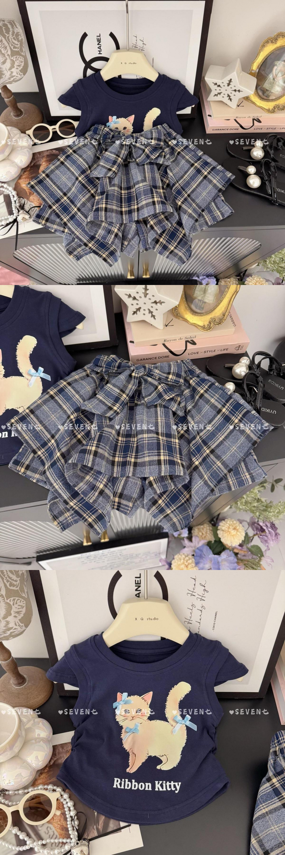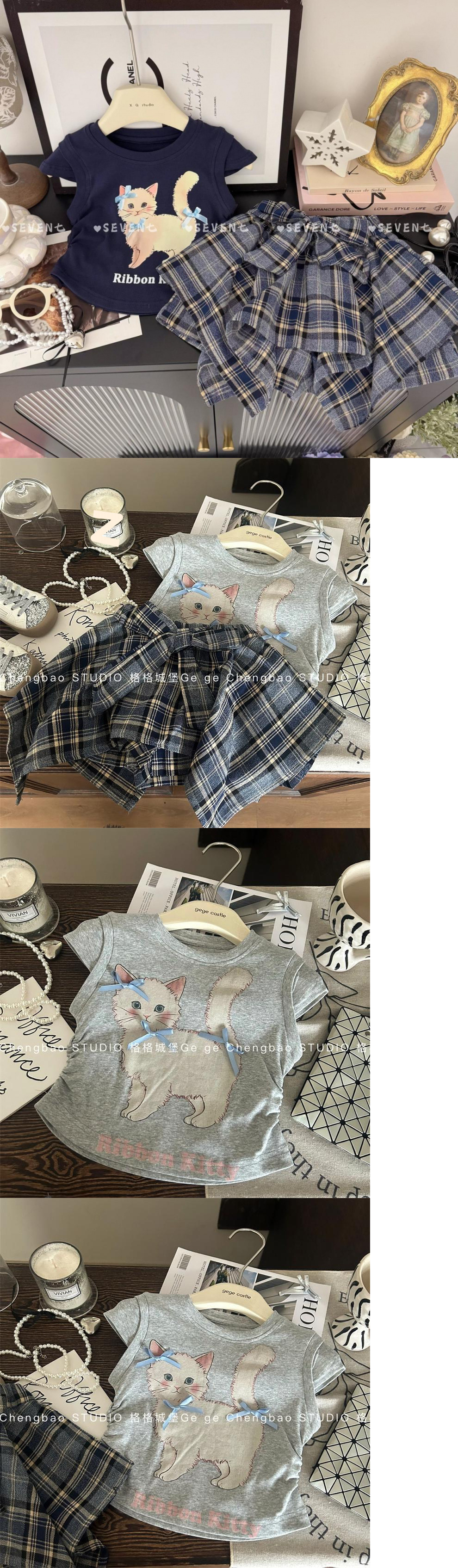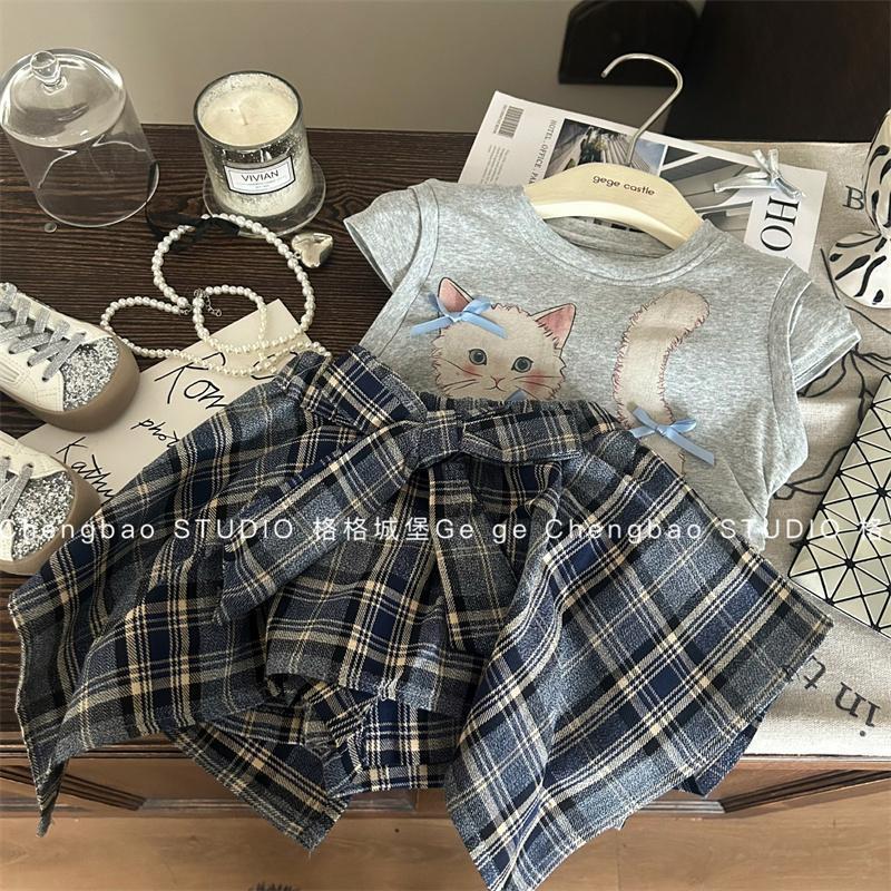 여자 정장 2025 새로운 여름 아기 만화 티셔츠 유행 격자 무늬 치마 바지 한국 스타일 유행 다목적 여름 옷스토어 가기