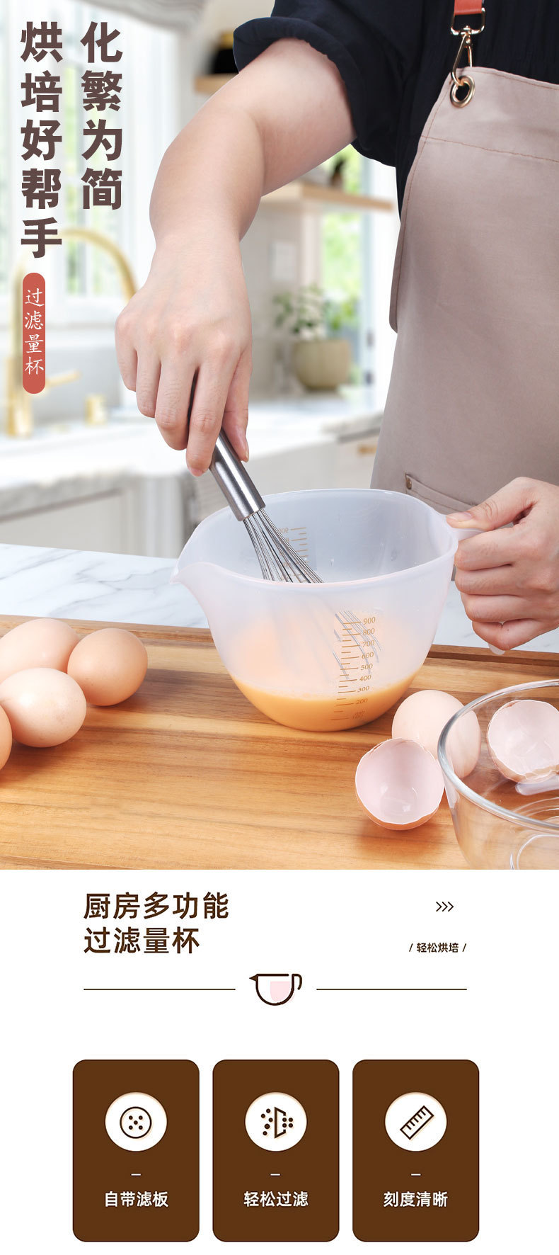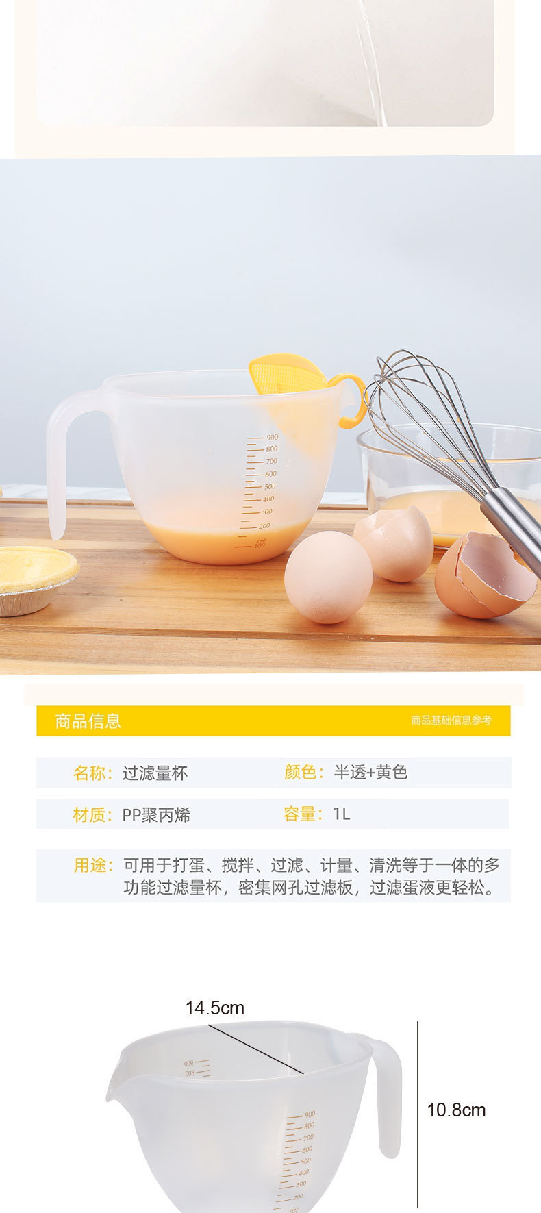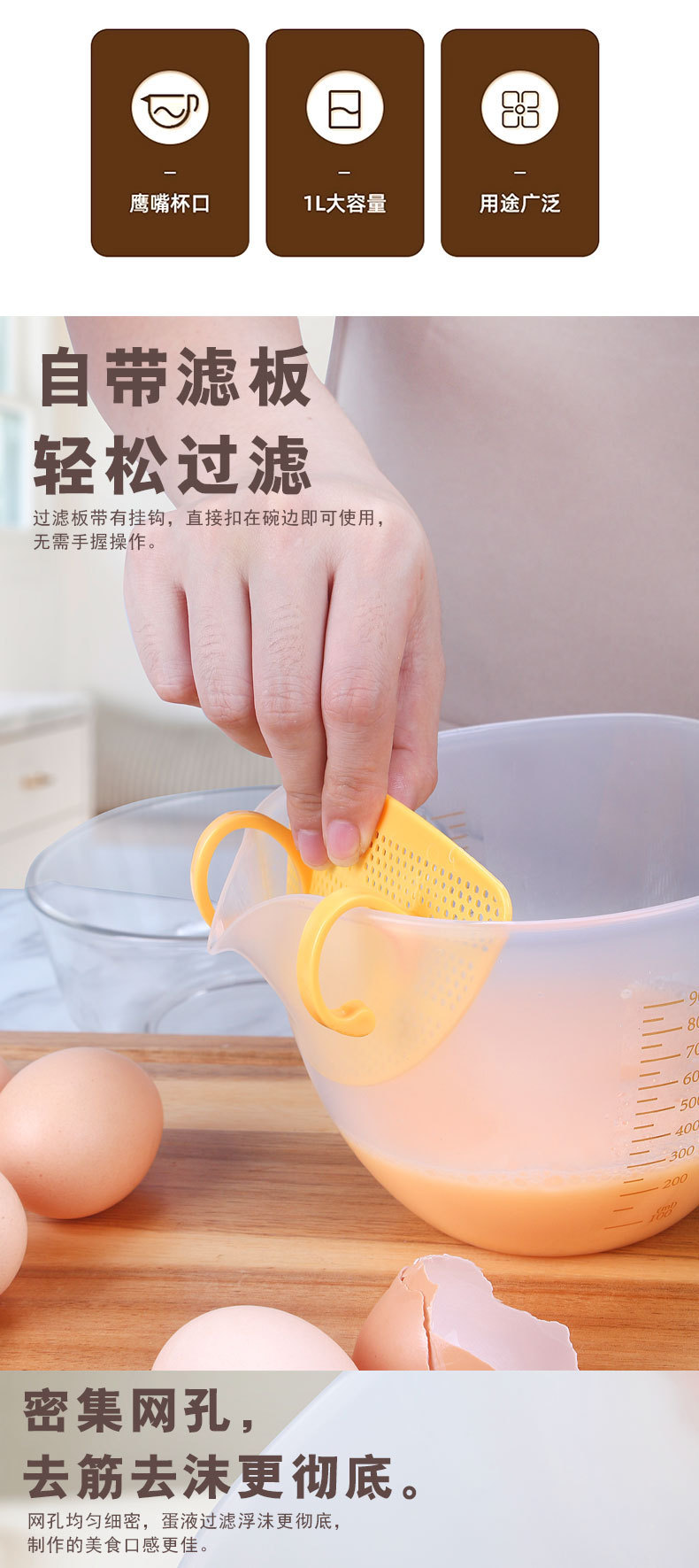 쌀 씻는 도구, 필터 계란 액체 계량 컵, 플라스틱 식품 등급 필터, 베이킹 및 계란 깨는 대용량 배수 그릇