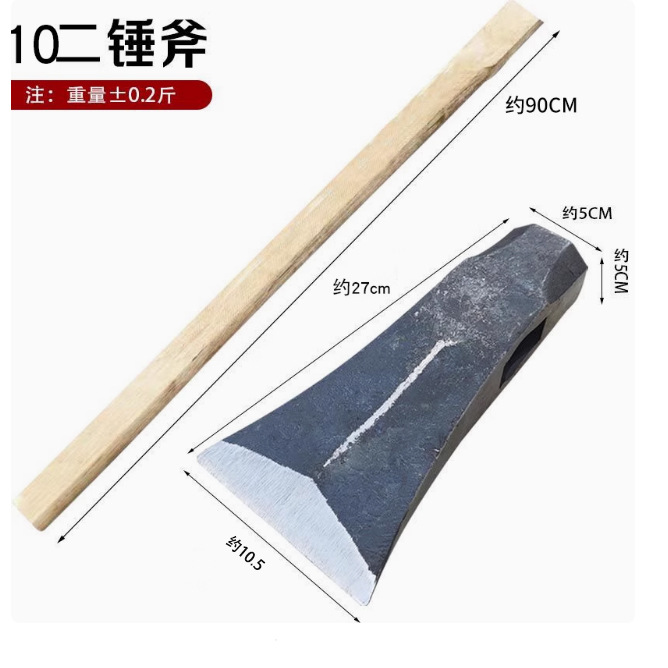 • 5kg 양면 리브가 있는 단조 담금질 해머 도끼 + 80CM 나무 손잡이