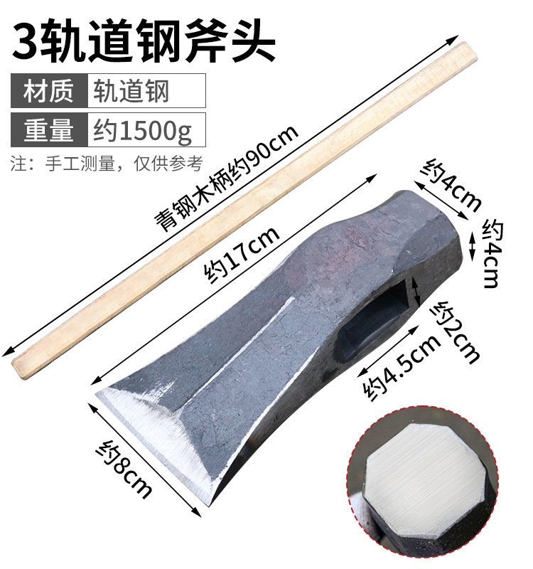 • 3kg 양면 리브가 있는 단조 담금질 해머 도끼 + 80CM 나무 손잡이