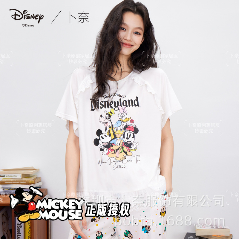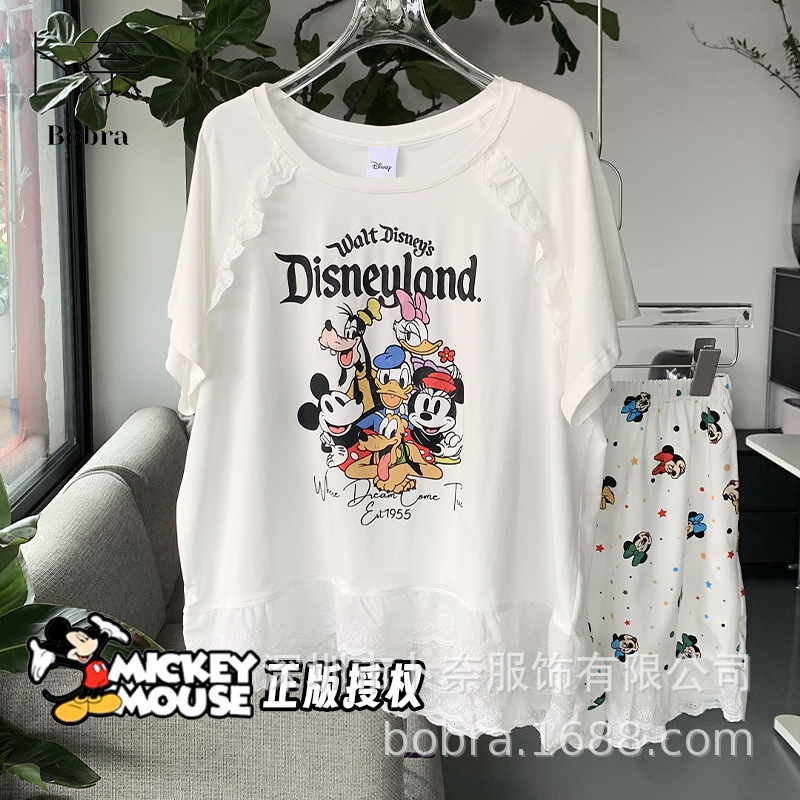 여름 여성용 얼음 도자기 면 잠옷, 여성용 만화 프린트, 얇고 달콤하며 레이스가 있는 루즈한 홈웨어 세트스토어 가기