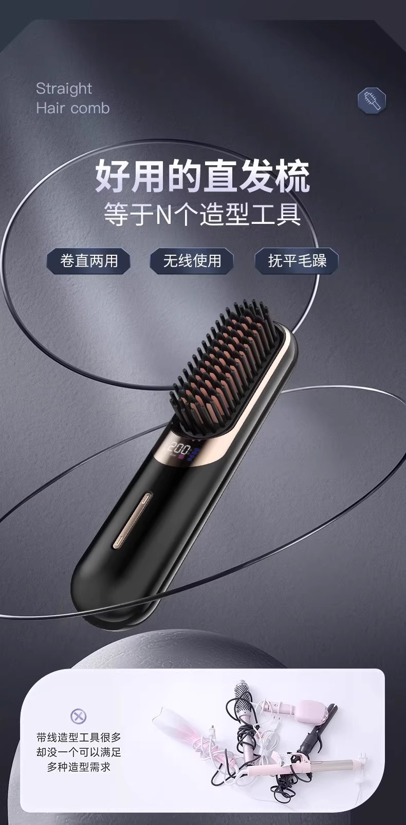 새로운 무선 헤어 스트레이트닝 빗, 음이온이 머리카락을 손상시키지 않음, 휴대용 스트레이트 및 컬링 아이언, 이중 목적 스트레이트 클립, 전기 빗, 높은 두개골