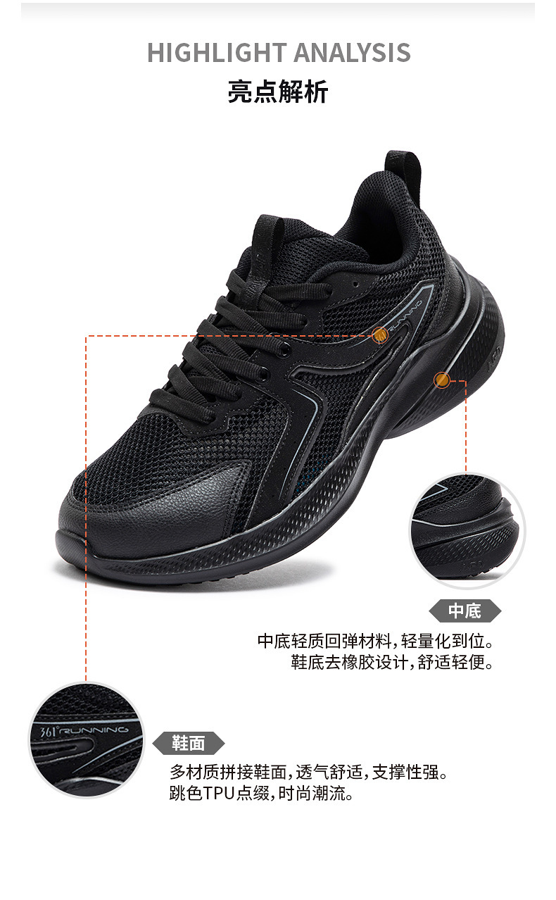 361 남성 신발 스포츠 신발 2025 여름 새로운 메쉬 통기성 운동화 부드러운 단독 충격 흡수 운동화 경량 신발