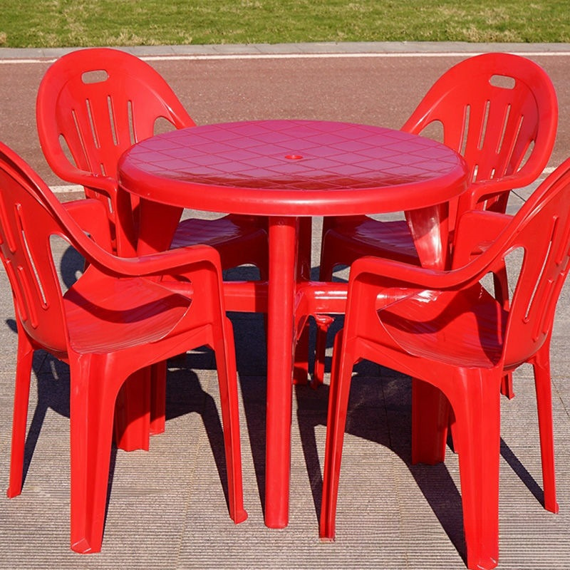 야외 스트리트 푸드 플라스틱 바베큐 맥주 테이블과 의자 두꺼운 성인 등받이 야시장 사각형 둥근 해변 테이블 조합