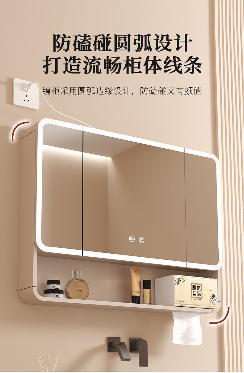 공간 알루미늄 아크 두꺼운 탄소강 램프 안개 제거 스마트 터치 스크린 미러 캐비닛 욕실 미러 캐비닛 보관 뷰티 랙스토어 가기