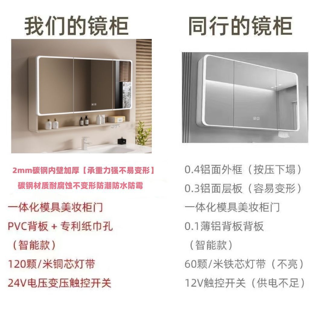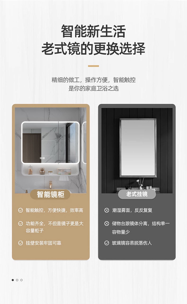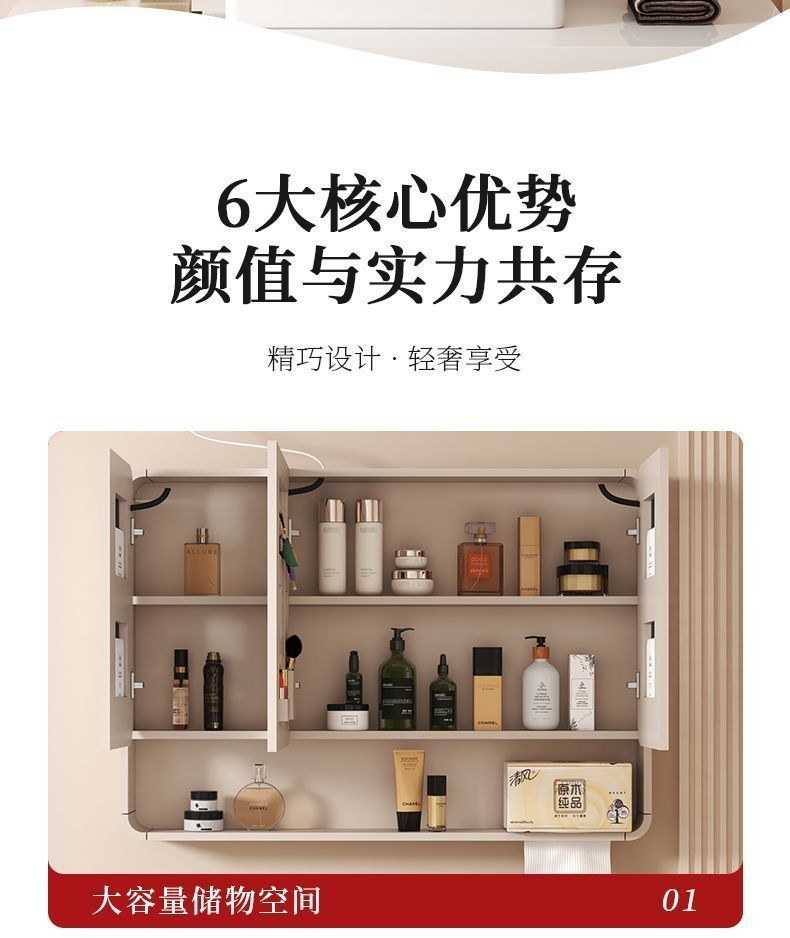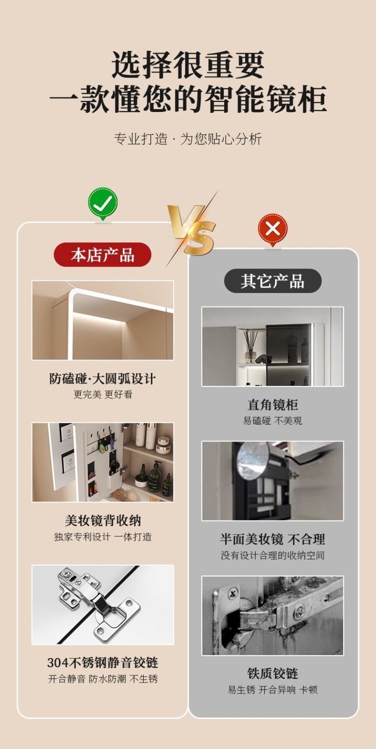 공간 알루미늄 아크 두꺼운 탄소강 램프 안개 제거 스마트 터치 스크린 미러 캐비닛 욕실 미러 캐비닛 보관 뷰티 랙