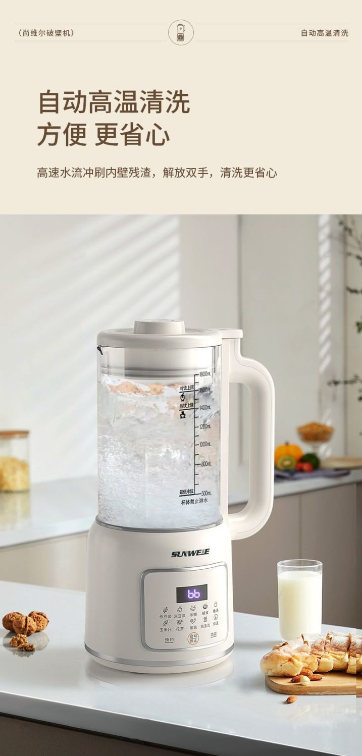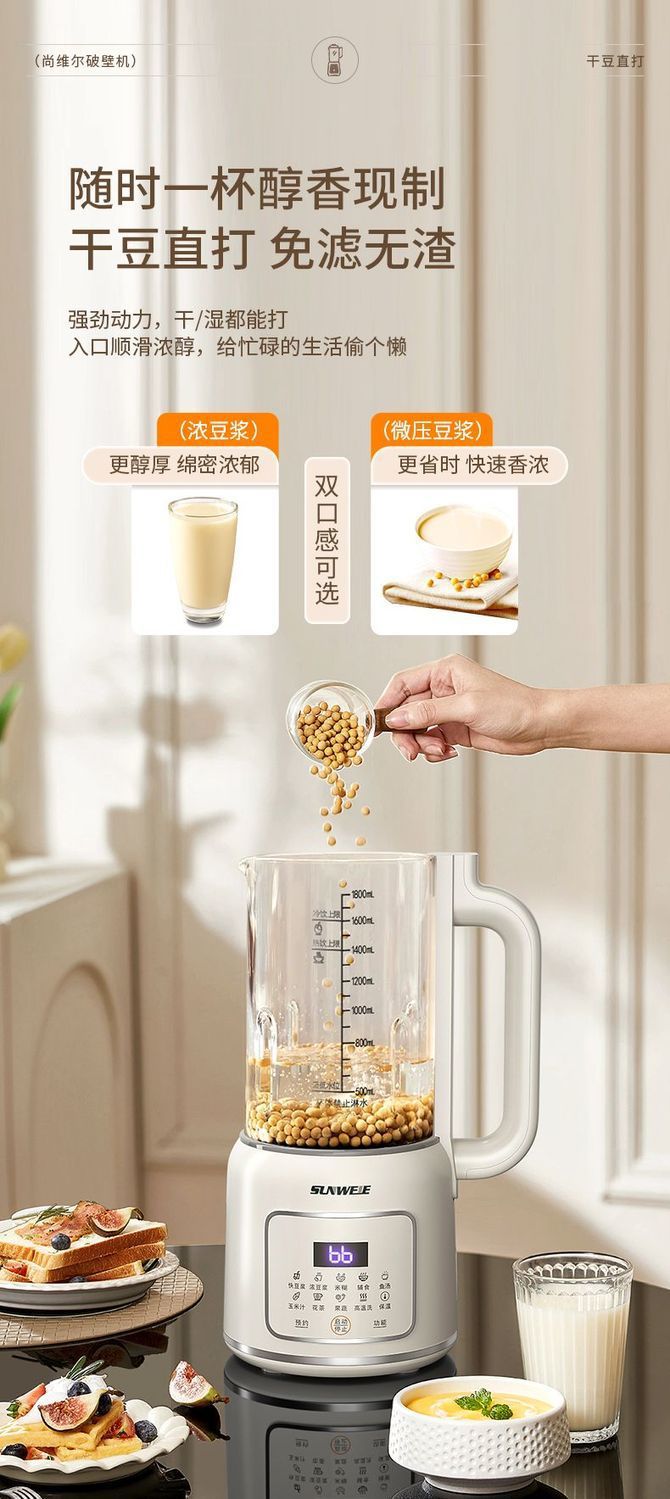 독일 다기능 벽 파괴 기계 가정용 완전 자동 가열 두유 기계 필터 프리 주스 기계 요리 기계 식품 보충 기계스토어 가기