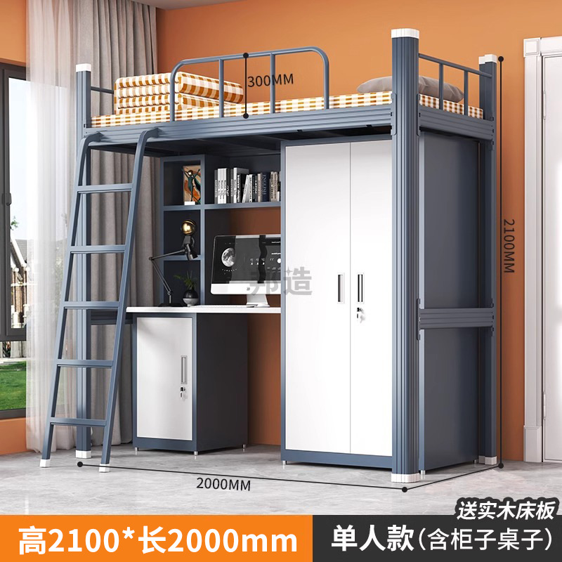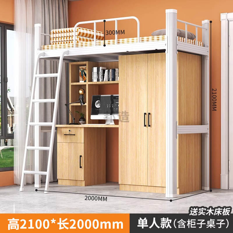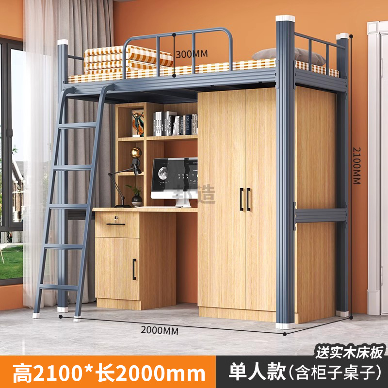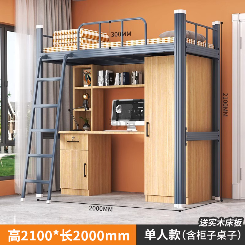 침대와 테이블 조합 아파트 침대 대학생 기숙사 직원 철제 프레임 침대 철제 바닥 사다리 이층 침대