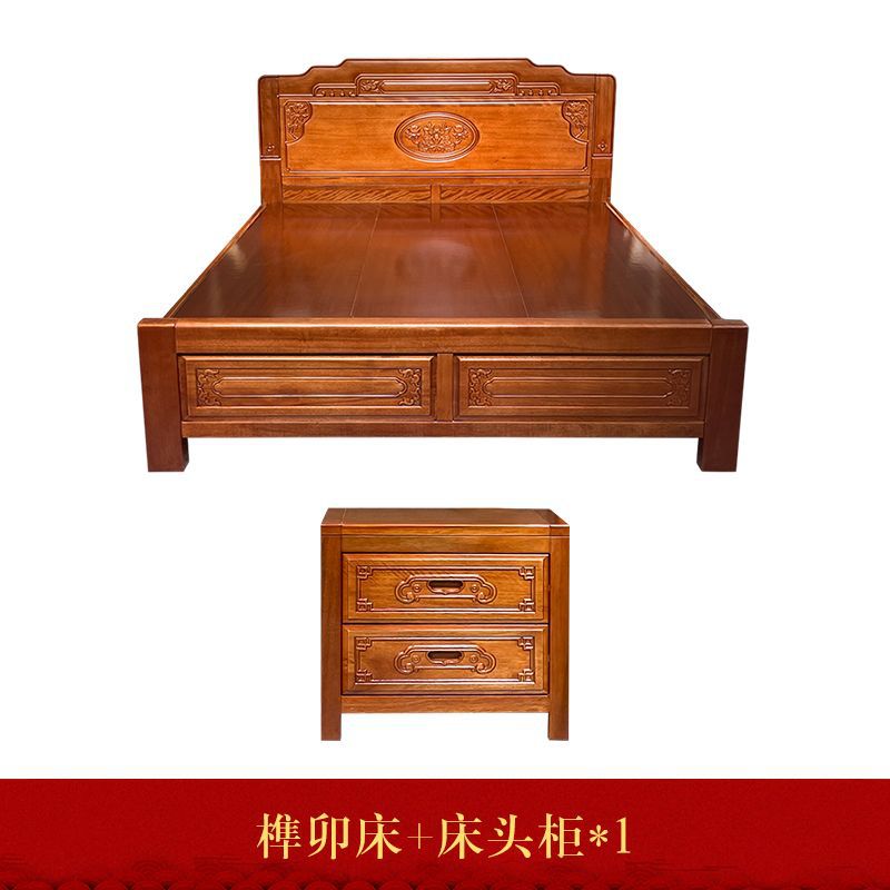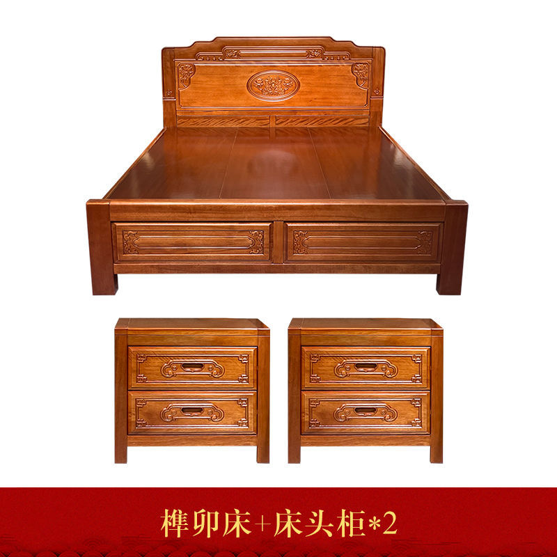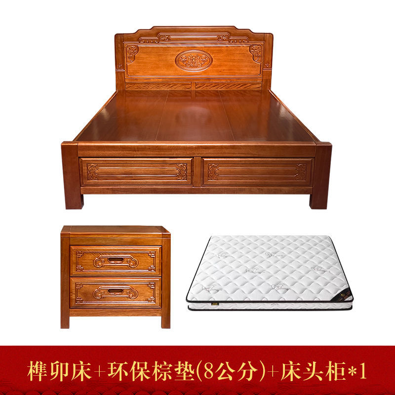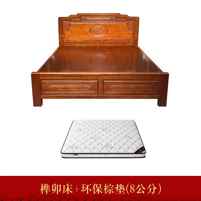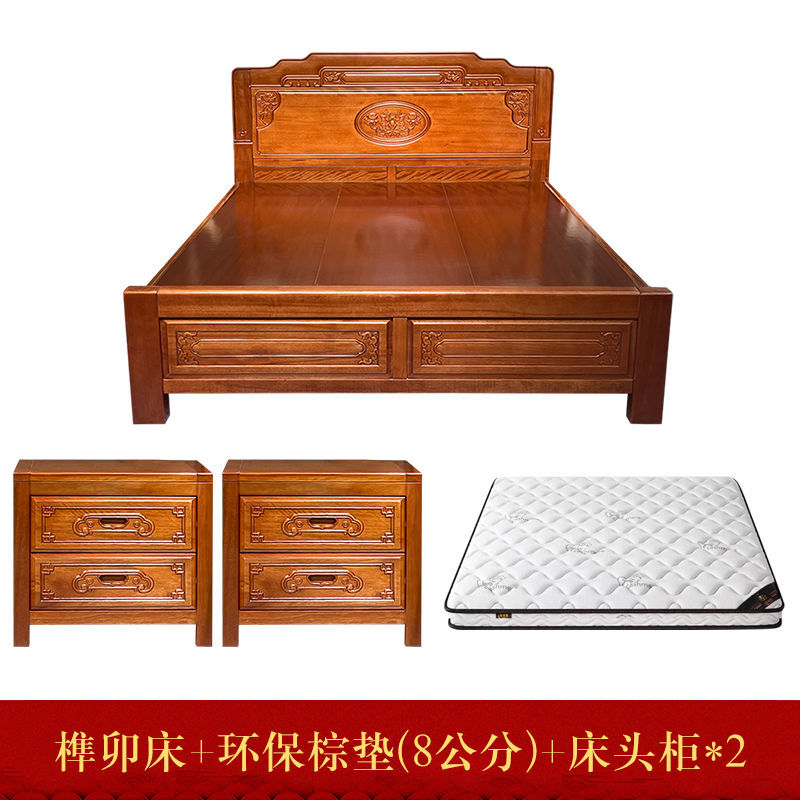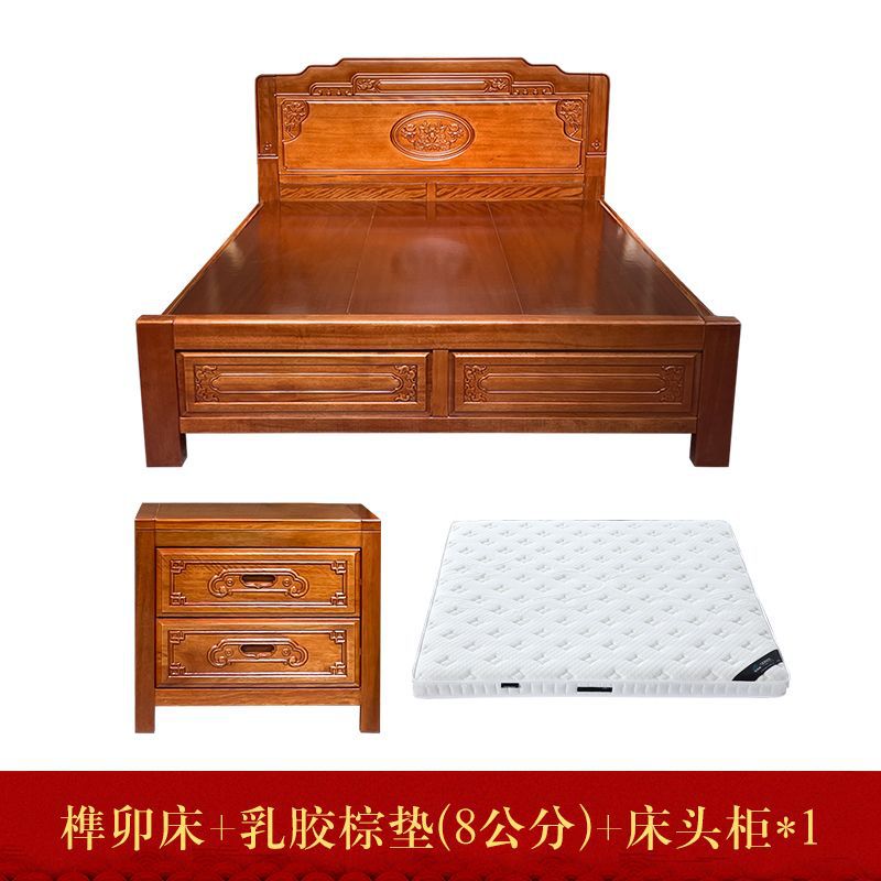 • 장붓구멍과 장부 자단 침대 + 스프링 라텍스 매트리스 + 캐비닛 1개