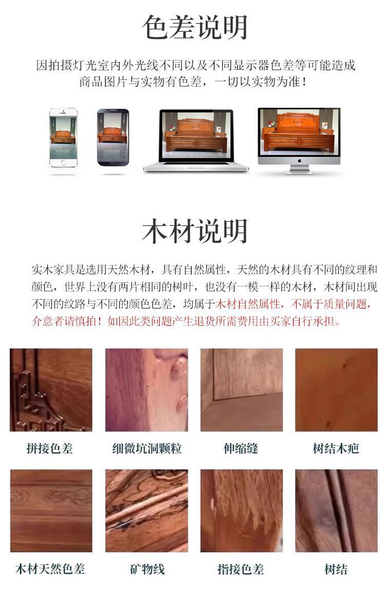 • 장붓구멍과 장부 로즈우드 침대 + 코코넛 야자 라텍스 매트 + 캐비닛 2개
