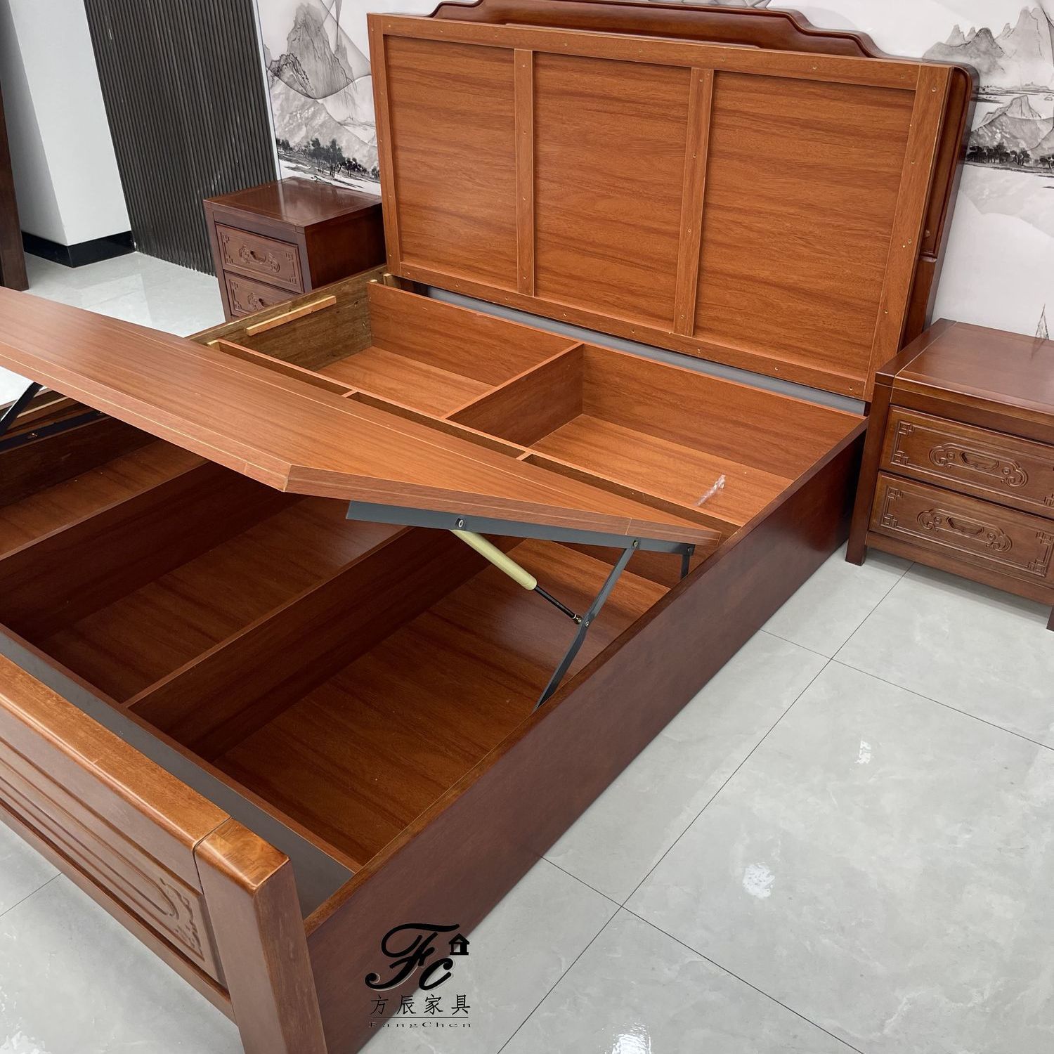 • 장붓구멍과 장부 로즈우드 침대 + 스프링 라텍스 매트리스 + 캐비닛 2개