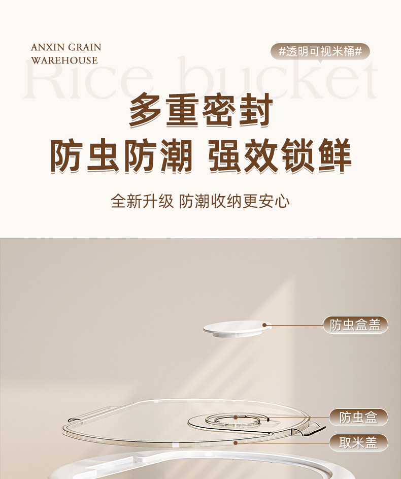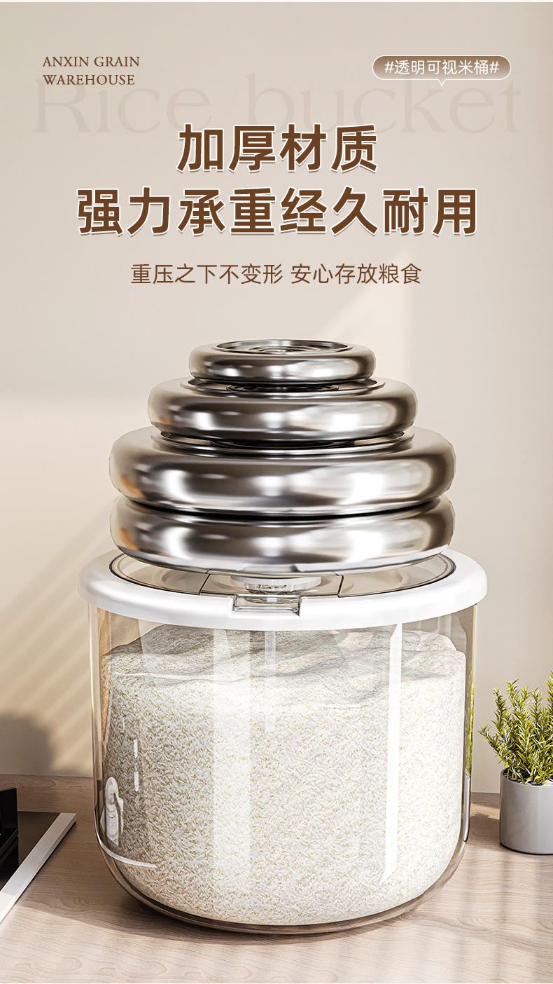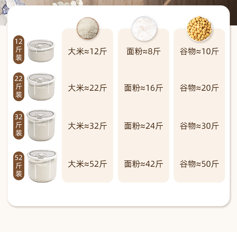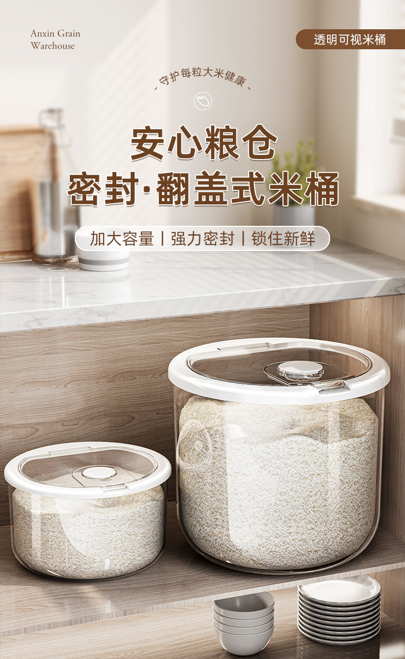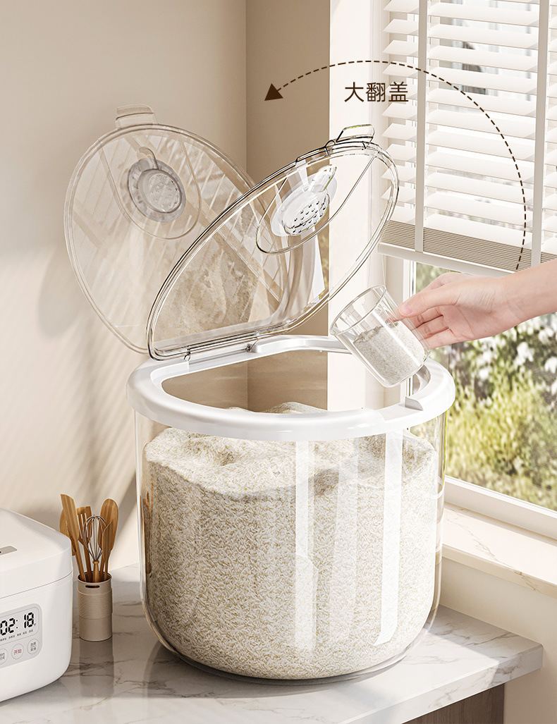 쌀통 가정용 방충 및 방습 밀봉 스윙 뚜껑 곡물 저장통 대용량 쌀 저장통