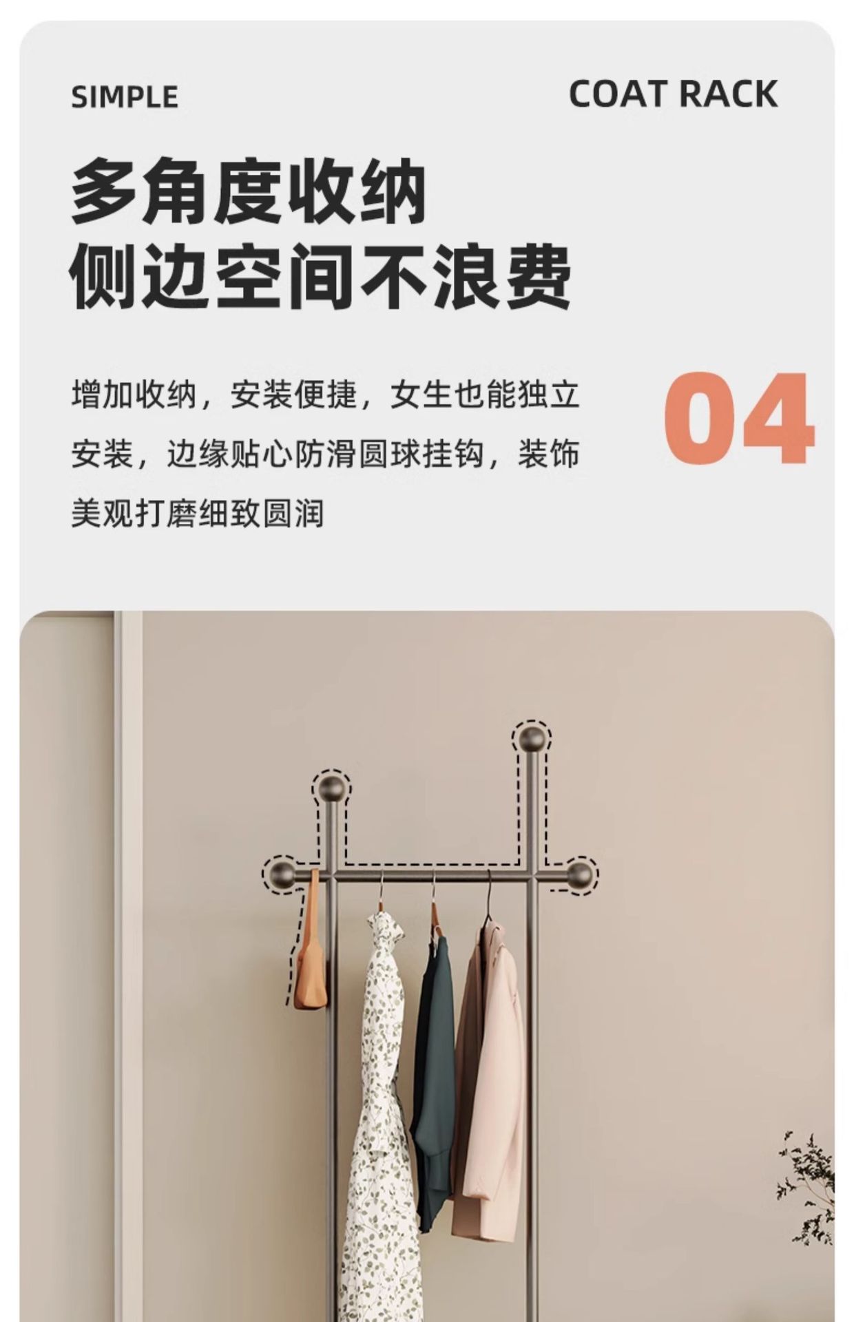 중고 옷걸이, 침실 바닥 옷걸이, 새로운 공간을 차지하지 않는 옷걸이, 옷걸이, 가정용 옷걸이