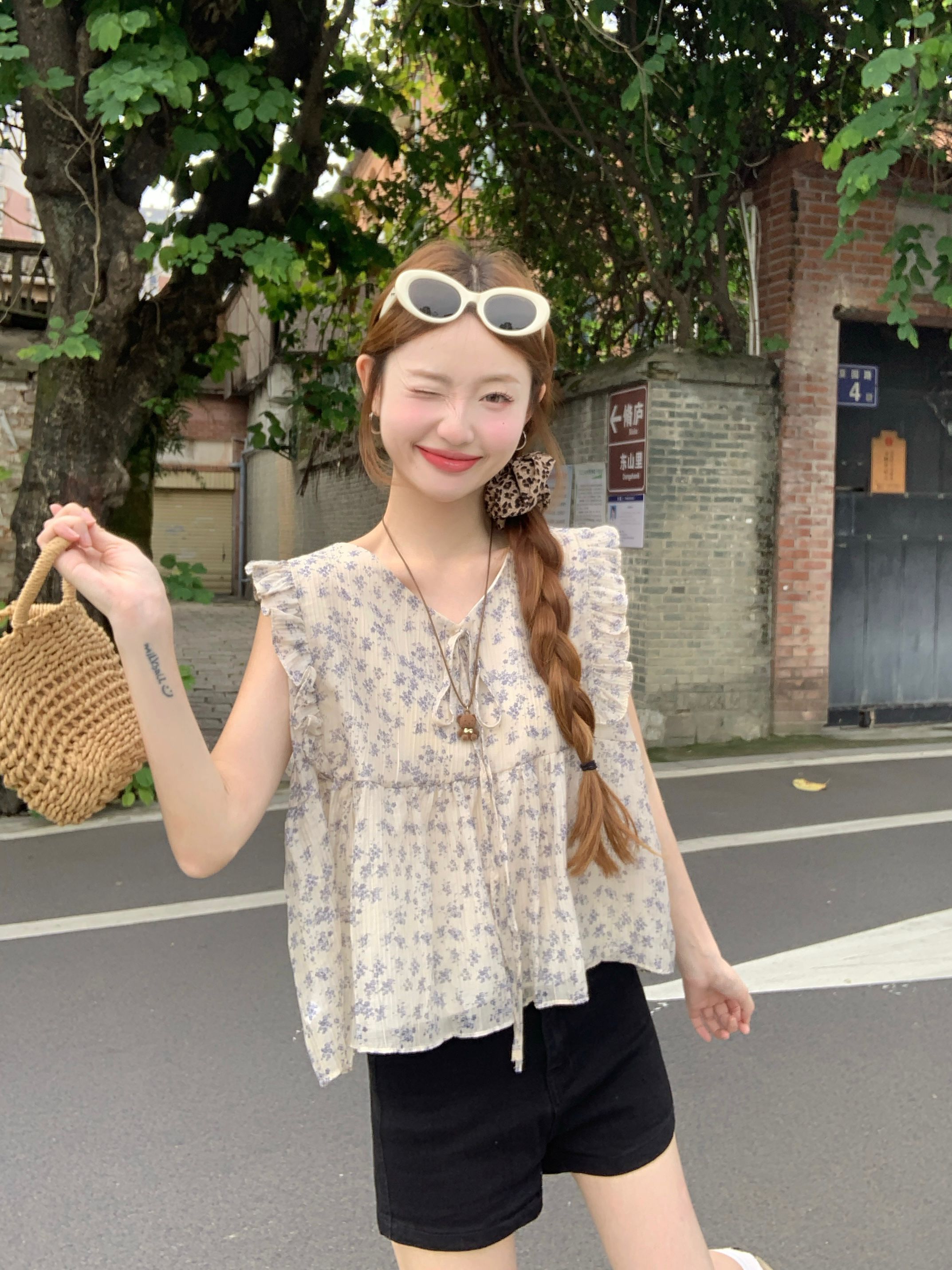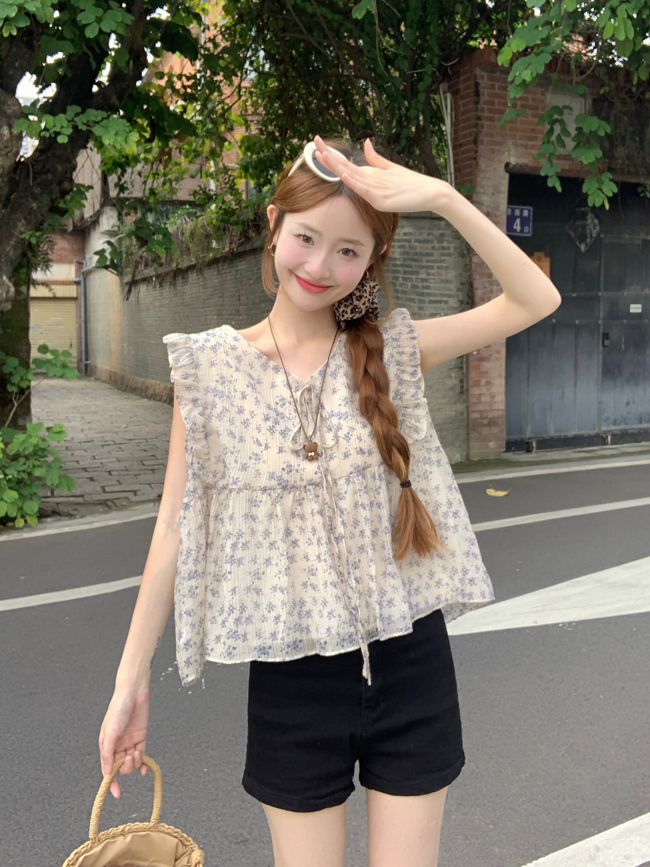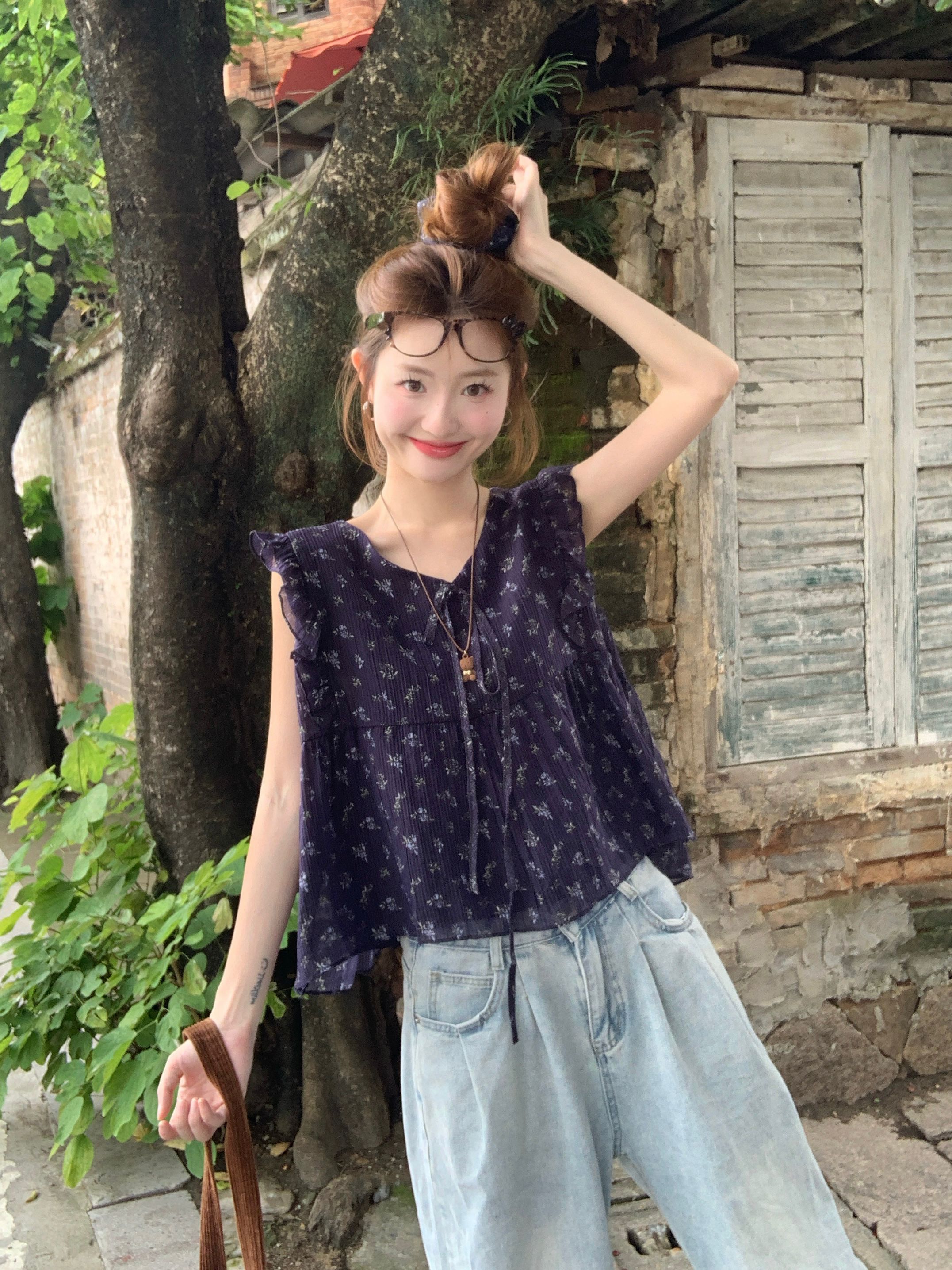 여름 여성을 위한 프렌치 플라잉 슬리브 꽃무늬 레이스 셔츠 새로운 슬림 기질 쉬폰 셔츠 셔츠 탑스토어 가기