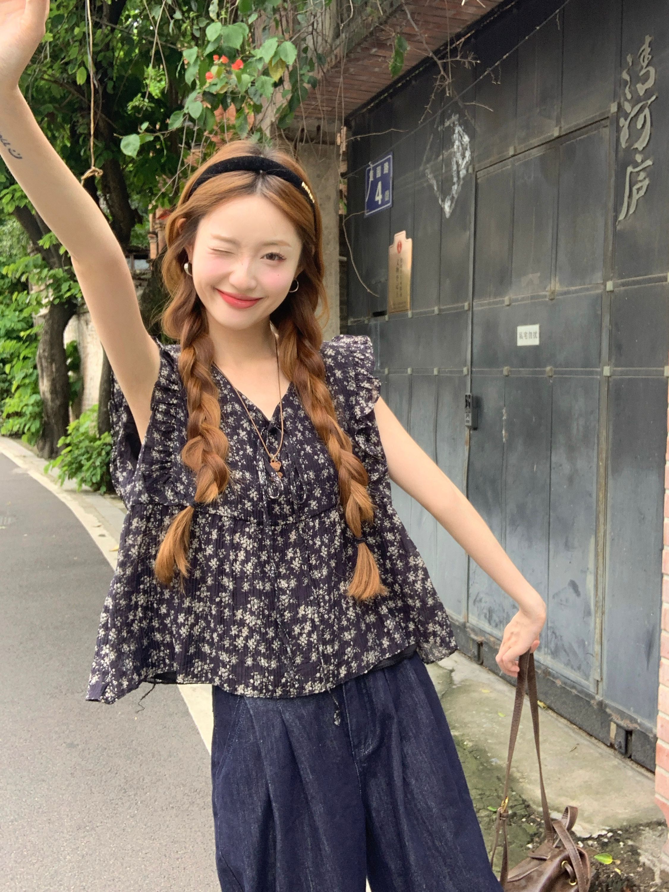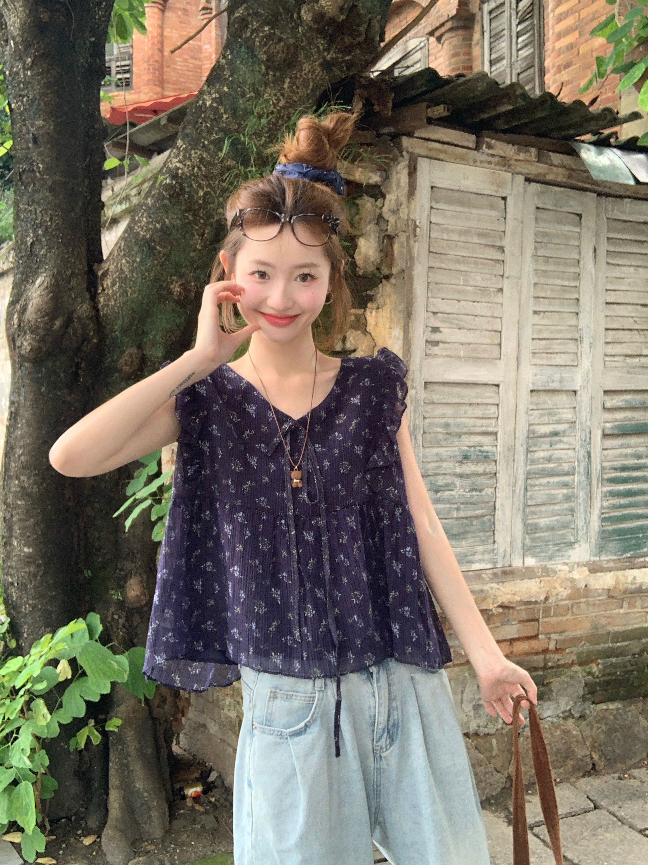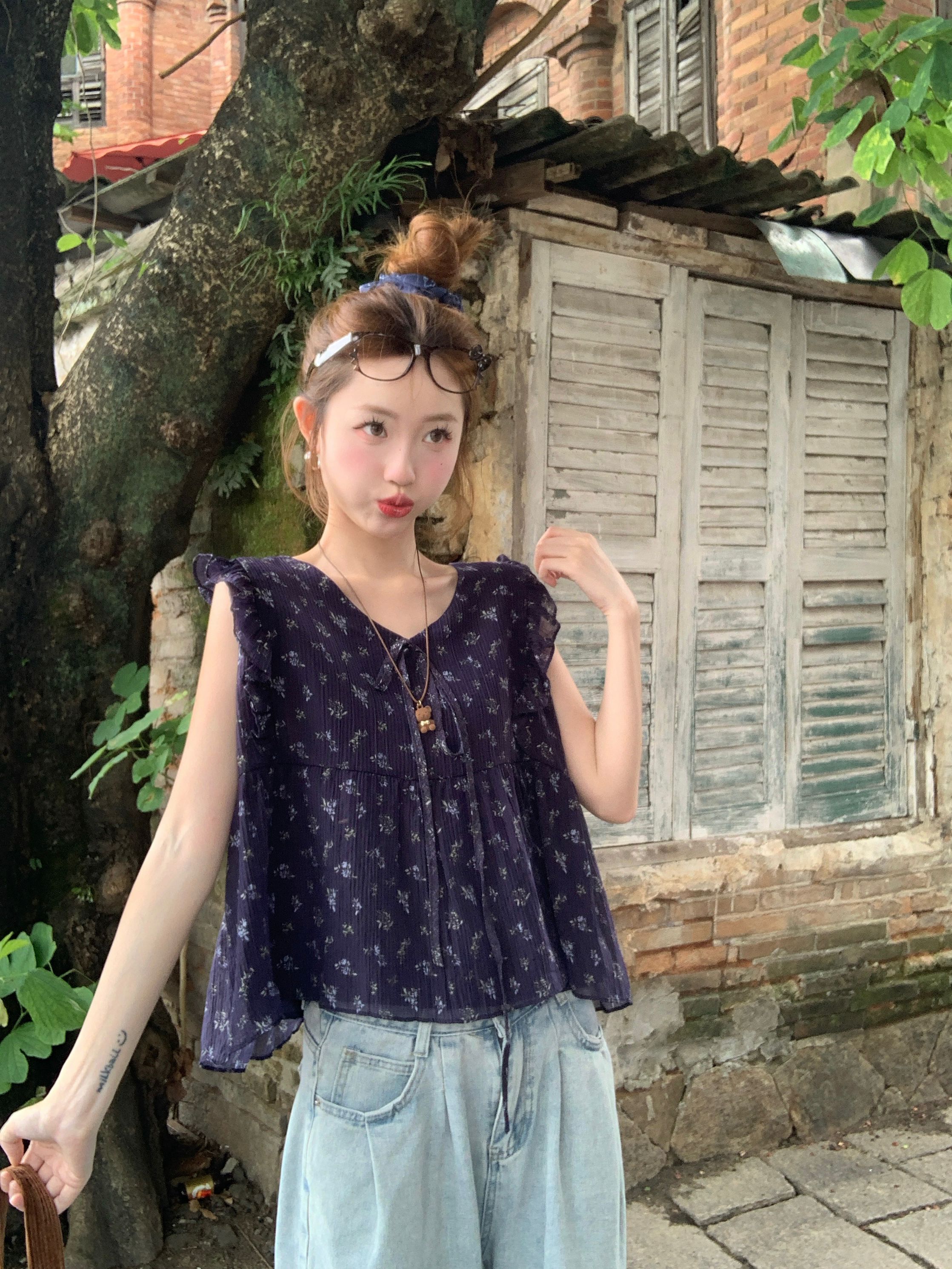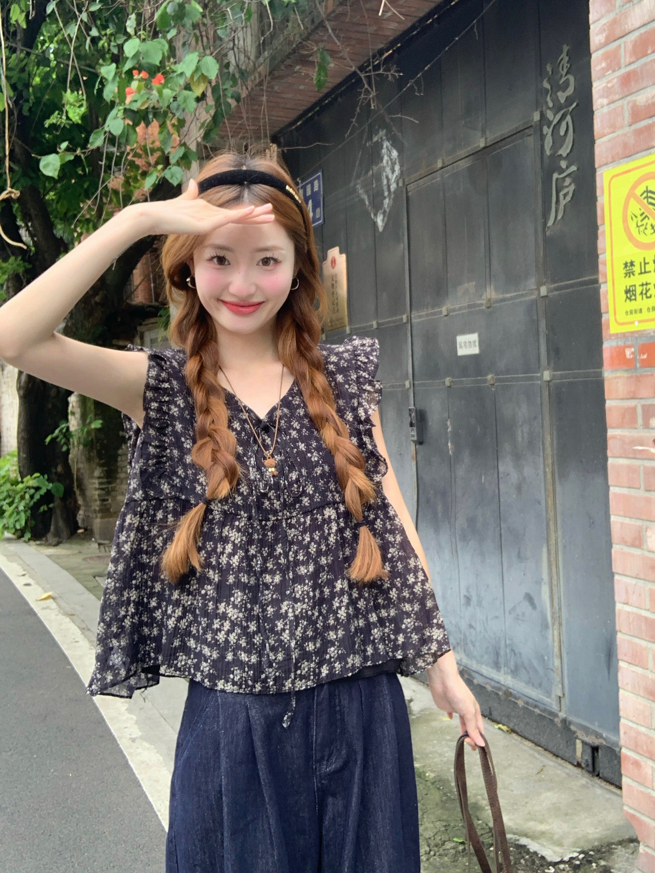 여름 여성을 위한 프렌치 플라잉 슬리브 꽃무늬 레이스 셔츠 새로운 슬림 기질 쉬폰 셔츠 셔츠 탑스토어 가기
